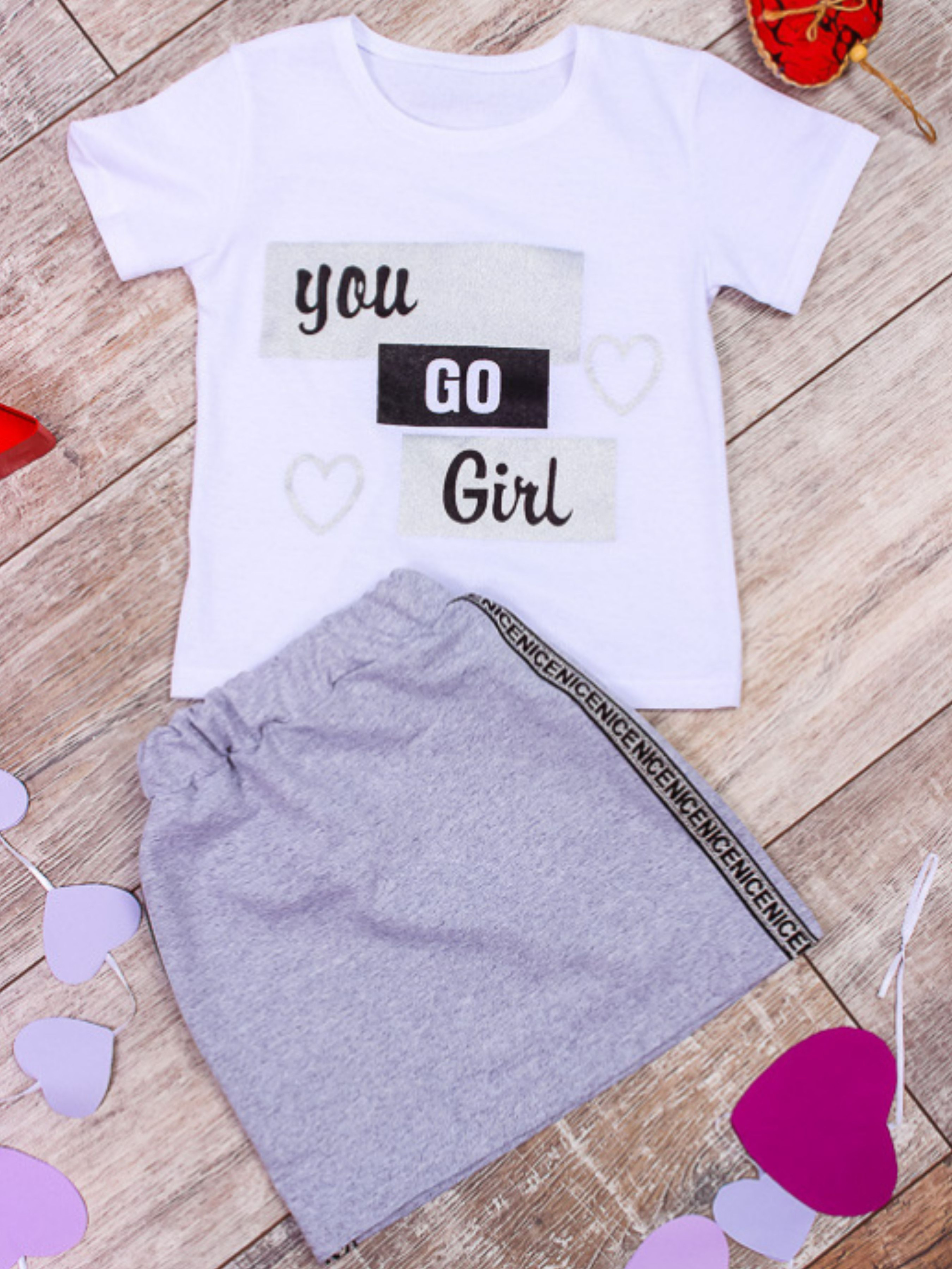 Полотно: кулір однотонний двонитка однотонна Склад полотна: кулір - 100% бавовни двонитка - 80% бавовни 20% поліестру Зріст: 98-116 Модний український бренд Носи Своє представляє стильний костюм для дівчинки який буде до лиця кожній сучасній дівчинці яка ретельно стежить за модою і за своїм зовнішнім виглядом! Він складається зі спідниці і футболки з коротким рукавом. Ці речі безумовно чудово виглядають разом але їх також можна з легкістю комбінувати з іншим одягом і створювати різноманітні стильні образи! Костюм виконаний в пастельних-тонах і доповнений блискучим лампасом з боків спідниці і стильним принтом по переду спідниці це надає йому якусь елегантність тому такий комплект можна сміливо вдягати для святкових виходів. Спідниця має еластичний пояс що забезпечує ще більш комфортну посадку. Футболка виконана з полотна кулир (100% бавовна) спідниця з полотна двунитка (склад: 98% поліестер 2% еластан). Догляд: прання в теплій воді до 40 ° з нейтральними миючими засобами; прасування з вивороту злегка нагрітою праскою (не вище 100 °). При пранні не використовуйте засоби що містять відбілювач. Футболку прати окремо від спідниці. Величезний асортимент нашого магазину дозволить підібрати стильні речі для Вашого гардеробу а досвідчені менеджери дадуть відповідь на всі виниклі питання. Приємних покупок!