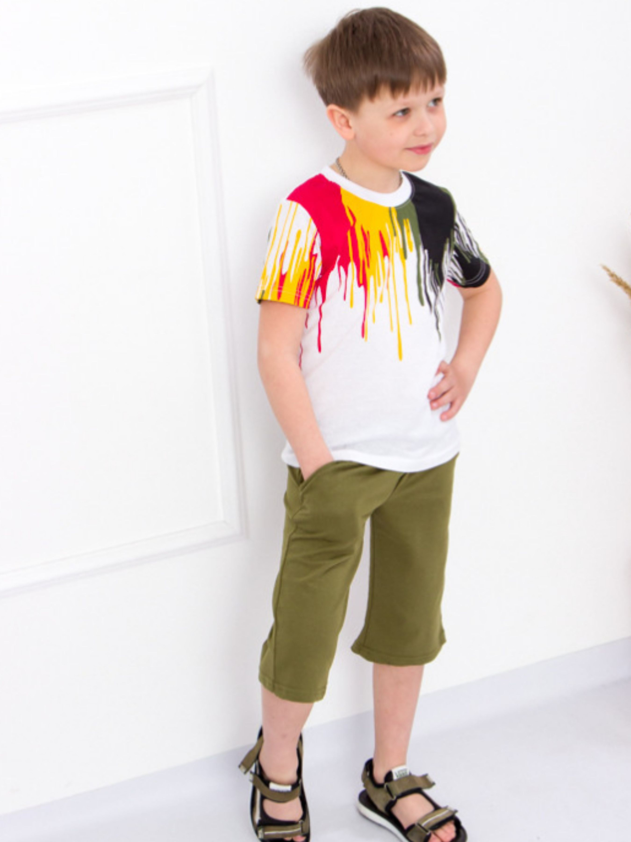 Полотно: кулір однотонний двонитка однотонна Склад полотна: кулір - 100% бавовна двонитка - 80% бавовни 20% поліестру Зріст: 110-128 Одяг від бренду Носи Своє створюється кращими для кращих. Над його розробкою та пошиттям трудяться досвідчені майстри на рахунку яких не одна колекція оригінальних виробів. Якщо вас цікавлять яскраві креативні речі для хлопчика то цей комплект - пряме попадання в «десяточку». Він сподобається шанувальнику спортивного стилю і здивує дитину що обожнює незвичайні принти. Футболка яскравого забарвлення доповнена ефектно виконаними написами англійською мовою. Бриджі з кишенями і притачним поясом мають більш прагматичний але не менш симпатичний дизайн. Обидві моделі чудово комбінуються зі стильними кедами або кросівками. В такому одязі приємно прогулюватися улюбленими вуличками в теплу погоду або проводити час з друзями у дворі. Той момент коли естетичні та практичні властивості не виключають один одного. Догляд: прати при температурі 30 ° вручну або в делікатному режимі в пральній машині. Слабке віджимання. Сушка на свіжому повітрі без потрапляння прямих сонячних променів. Прасують річ слабонагрітою праскою з виворітного боку. Футболку прати окремо від бридж. Весь одяг вироблений фабрикою строго відповідає розмірній сітці. На бірочці вказано орієнтовний ріс дитини а в таблиці - реальні виміри які зробили наші менеджери. Приємних Вам покупок!