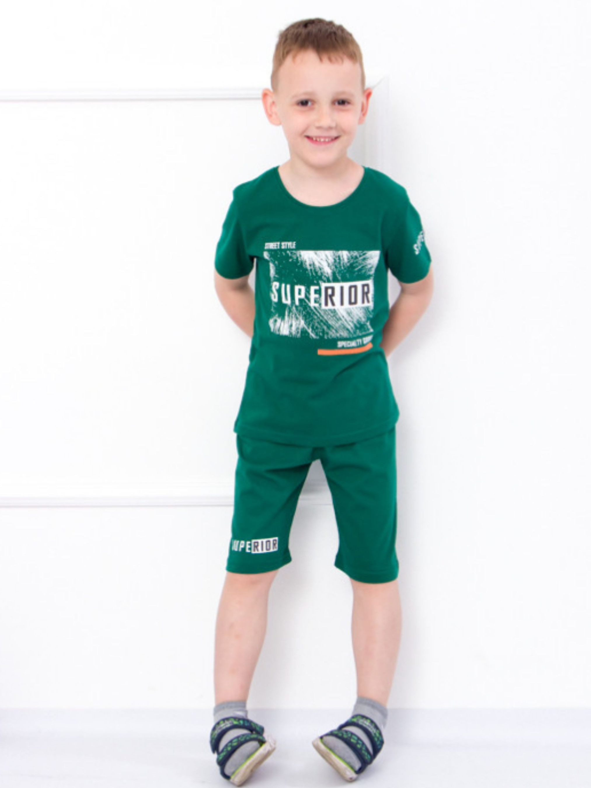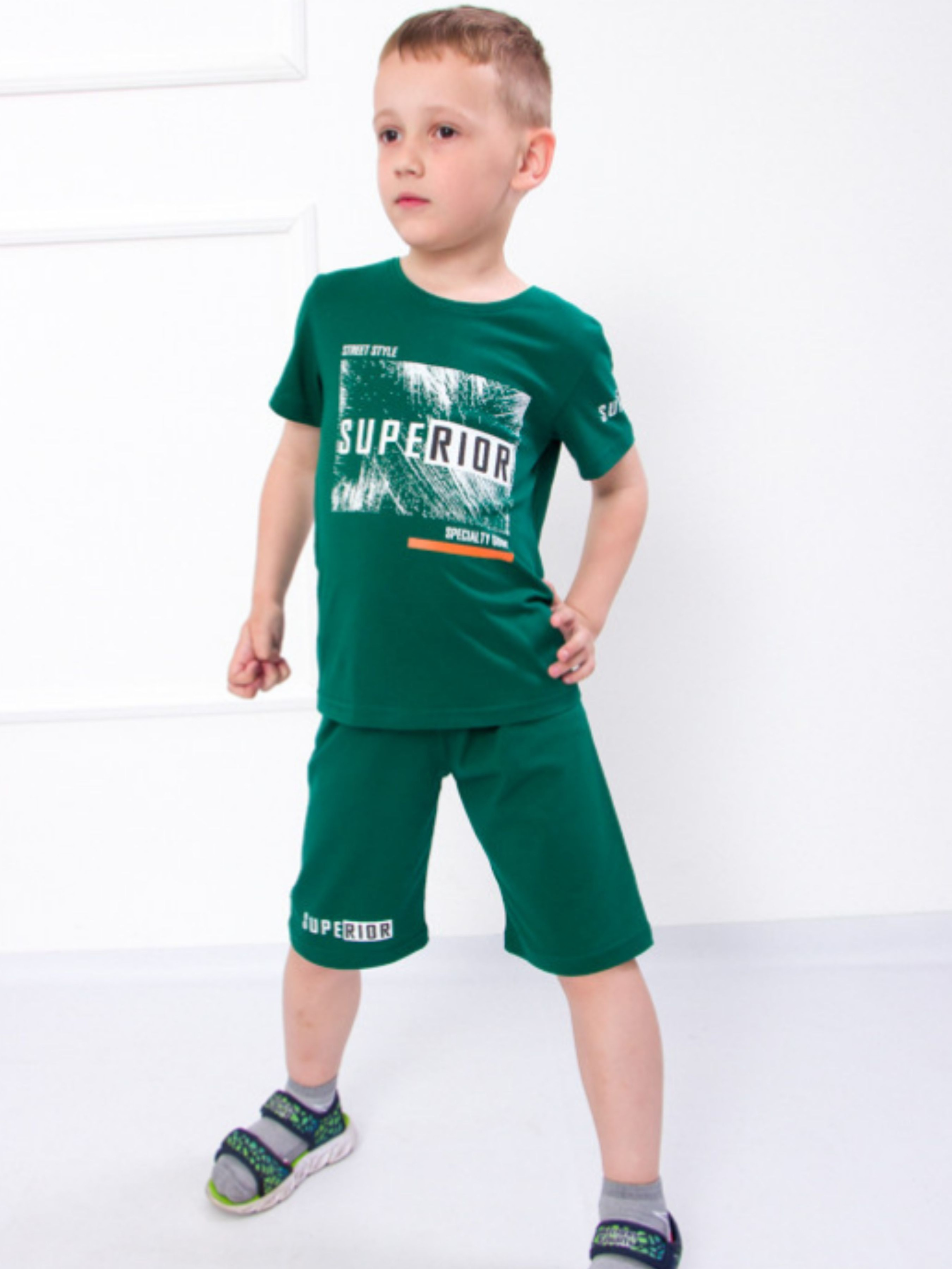 Полотно: кулір однотонний Склад полотна: 100% бавовна Зріст: 92-134 Тривалі літні прогулянки гра в футбол чи відпочинок на дачі вимагають максимально зручного аутфіта який не буде сковувати свободу рухів і дозволить шкірі дихати навіть у найспекотніший день. Всім цим вимогам відповідає комплект створений українською ТМ Носи Своє для активних хлопчиків. У комплект входить футболка і просторі шорти. Футболка вільного крою з круглою горловиною та короткими рукавами подарує дитині комфорт. Шорти надійно фіксуються на талії за допомогою широкої еластичної резинки. Важливо що вона не передавлює і не залишає слідів на ніжній шкірі. Для пошиття виробу використано м'яке і легке полотно - кулір (бавовна 100%). Натуральні нитки «відповідають» за проникнення повітря та гігроскопічність. Догляд: прання в теплій воді до 40 ° з нейтральними миючими засобами; прасування з вивороту злегка нагрітою праскою (не вище 100 °). При пранні не використовуйте засоби що містять відбілювач.