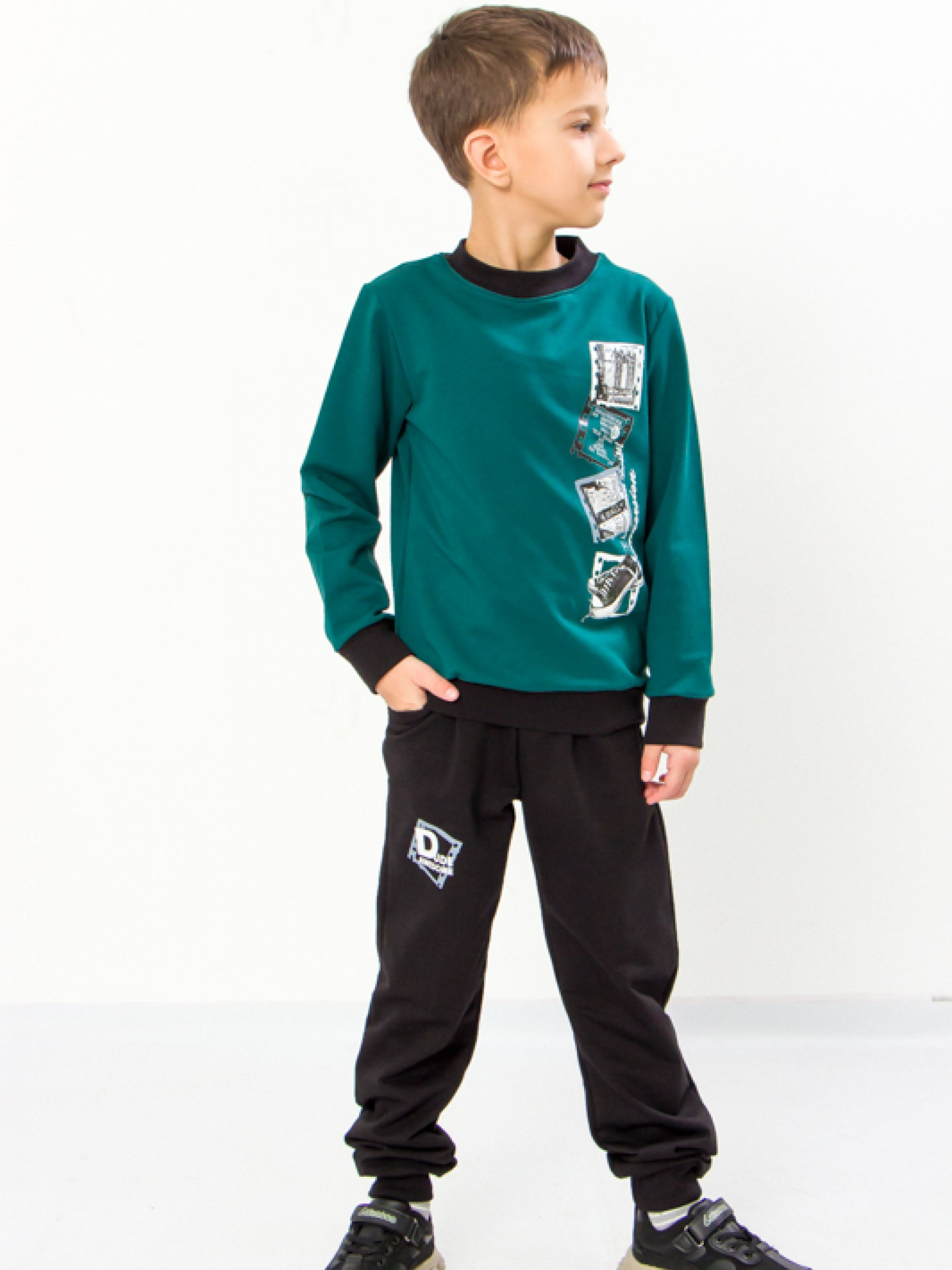 Полотно: двонитка однотонна Склад полотна: 80% бавовни 20% поліестру Зріст: 92-134 З огляду на високу рухливість дитини під час ігор варто підбирати для неї максимально зручний одяг переважно з натуральних тканин. Саме тут на допомогу приходять спортивні костюми від торгової марки Носи Своє. Вільний і зручний комплект із світшоту і брюк з оригінальним принтом - те що потрібно. Джемпер з круглим вирізом горловини і штани вільного крою доповнені широкими еластичними манжетами. Для пошиття моделі використовувалося високоякісне бавовняне полотно - двохнитка що є безпечним для організму і чутливої шкіри дитини. Взимку і в період міжсезоння в такому чудовому костюмі дитині буде тепло і комфортно він прекрасно підходить в якості домашнього одягу наряду для ігор і прогулянок забезпечує модний і стильний вигляд не обмежує рухів активної дитини. Догляд: допускається як ручне так і машинне прання ( "делікатне") при температурі 30 градусів з використанням неагресивних засобів для прання. При полосканні краще використовувати кондиціонер. Сушка в розправленому вигляді. Прасувати виріб з виворітного боку. Відмінна якість і цікавий дизайн супроводжуються доступною ціною! Не витрачайте час на походи по магазинах купуйте якісний одяг від українського виробника - компанії Носи Своє!