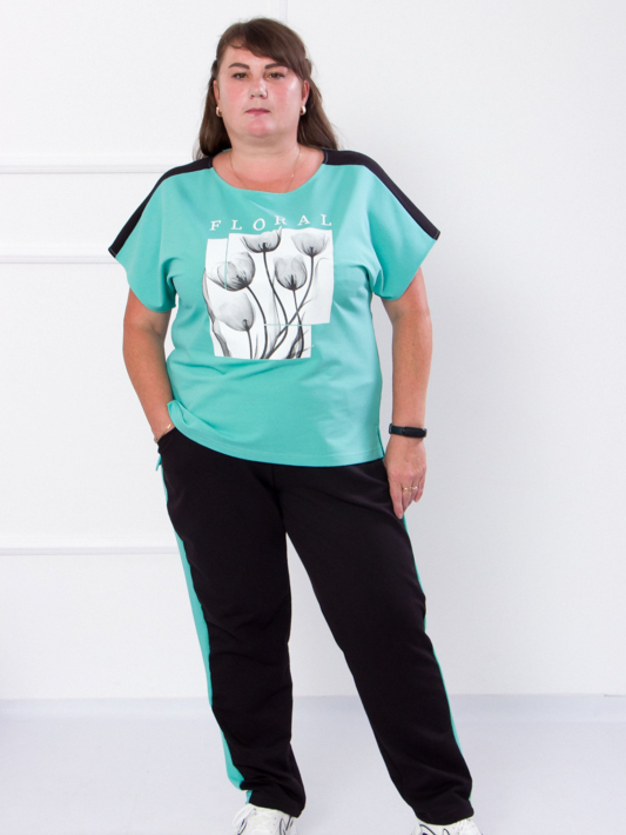Полотно: двонитка Склад полотна: 80% бавовна 20% поліестр Розмір: 52-60 Головна причина навіщо будь-яка жінка купує костюм – це відчуття зручності та комфорту. Стильний жіночий костюм від українського виробника Носи Своє серія батал. Розмірна сітка дозволить Вам підібрати потрібний комплект адже у нас передбачені розміри від 52 до 60! Костюм складається з двох предметів - футболки і брюк. Футболка з коротким рукавом і барвистим принтом по переду брюки прямого крою оснащені бічними кишенями поясом-резинкою. У виробництві цієї серії комплектів використовується тканина двонитка високої якості (80% бавовна 20% поліестер). Завдяки високому вмісту бавовни виріб чудово сприймається тілом. Догляд: прати при температурі 30°С делікатним миючим засобом. Сушити костюм краще в природних умовах без прямого попадання прямих сонячних променів В інтернет-магазині Носи Своє ви можете обрати одяг для всієї родини - ціна і якість яких Вас приємно здивують!