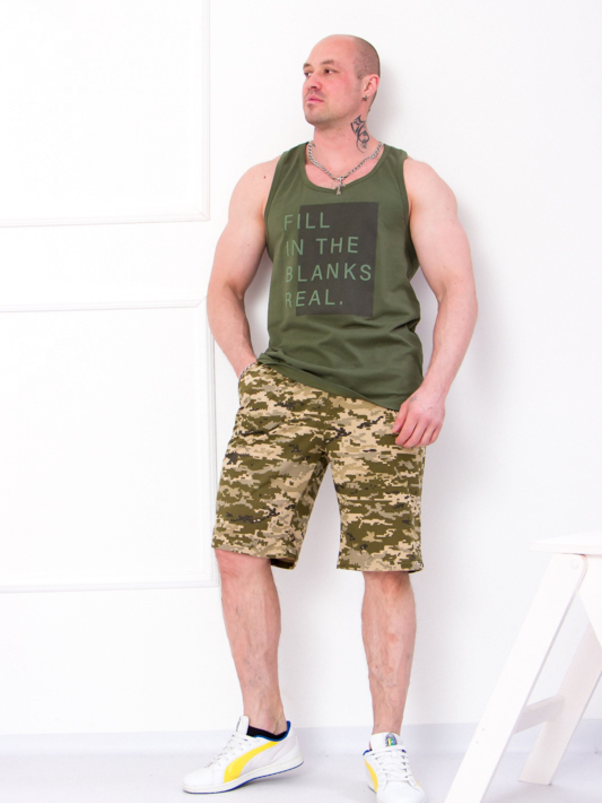 Полотно: кулір принтований кулір однотонний Склад полотна: 100% бавовна Розмір: 48-56 Чоловічий домашній комплект виконаний з гладкого трикотажу "кулір" (бавовна 100%) - м'якого приємного на дотик полотна. Він не розтягується не скачується і завжди зберігає свіжість кольору легко прати і прасувати. Гарнітур складається з майки і шортів. Майка (борцовка) вільного крою дуже зручна виконана в сірому кольорі велика кількість бавовни надає майці легкості і комфорту завдяки чому вона відмінно сідає по фігурі. Перед виробу декорований принтом. Зображення наноситься методом шовкотрафаретного друку. Для нанесення малюнка ми використовуємо високоякісні матеріали які сприяють тому що зображення не відривається не тріскається не вигорає і не змінює колір навіть через 50-60 пранів! Шорти прямого крою довжиною вище коліна мають дві бічні кишені пояс на резинці забезпечує комфорт і зручність. Ця модель костюма підійде для прогулянок занять спортом або для повсякденного носіння. Догляд: прання в теплій воді до 40 ° з нейтральними миючими засобами; прасування з вивороту злегка нагрітою праскою (не вище 100 °). При пранні не використовуйте засоби що містять відбілювач. Ми приймаємо замовлення з усієї України і доставляємо в будь-який зручний для вас час і місце! Бажаємо Вам приємних і вигідних покупок разом з TM Носи Своє !!!