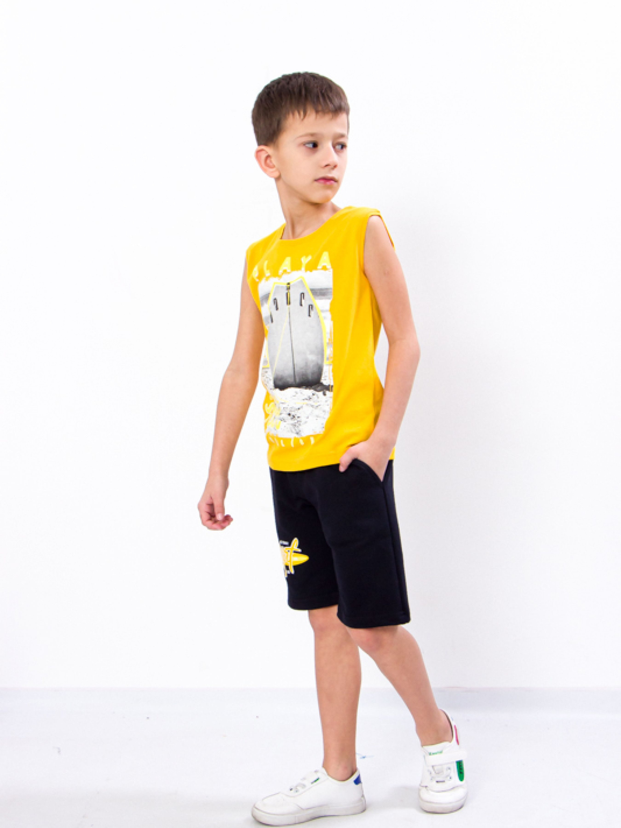 Полотно: двонитка однотонна кулір однотонний Склад полотна: двонитка 80% бавовни 20% поліестру кулір - 100% бавовна Зріст: 128-146 Тривалі літні прогулянки гра в футбол чи відпочинок на дачі вимагають максимально зручного аутфіта який не буде сковувати свободу рухів і дозволить шкірі дихати навіть у найспекотніший день. Всім цим вимогам відповідає комплект створений українською ТМ Носи Своє для активних хлопчиків. Майка виконана з 100% бавовняного полотна кулір шорти на 95% складаються з гіпоалергенної бавовни яка не викликає свербіж і не парить тіло додавання еластану (5%) робить їх стійкими до розтягування і багаторазовим праннями. М'яка резинка перешкоджає спаданню одягу і не натирає шкіру а яскравий дизайн піднімає настрій. Комплект від Носи Своє подарує хлопчикові неймовірне відчуття легкості і комфорту. Догляд: прати при температурі 30 ° вручну або в делікатному режимі в пральній машині. Слабке віджимання. Сушка на свіжому повітрі без потрапляння прямих сонячних променів. Прасують річ слабонагрітою праскою з виворітного боку. Майку прати окремо від шортів. Весь одяг вироблена фабрикою строго відповідає розмірній сітці. На бірочці вказано орієнтовний ріс дитини а в таблиці - реальні виміри які зробили наші менеджери. Приємних Вам покупок!