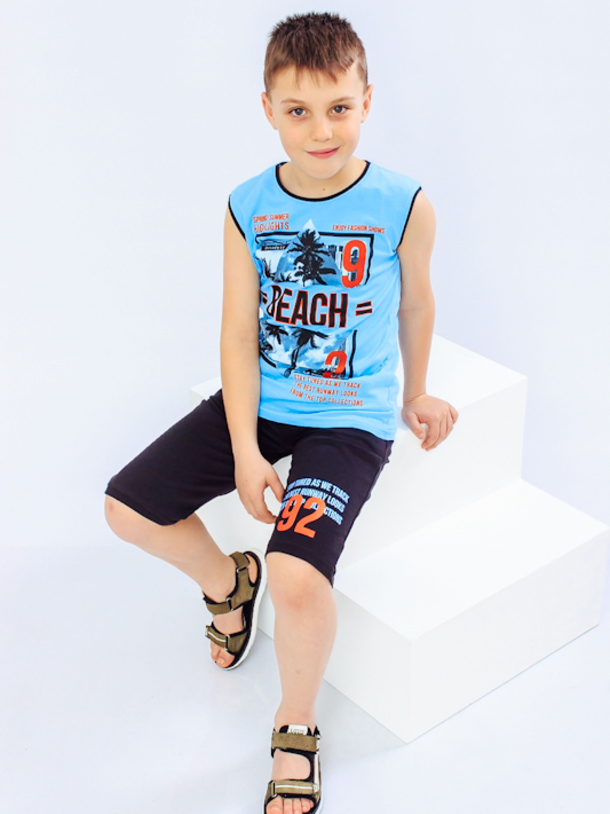 Полотно: двонитка однотонна кулір однотонний Склад полотна: двонитка 80% бавовни 20% поліестру кулір - 100% бавовна Зріст: 128-146 Тривалі літні прогулянки гра в футбол чи відпочинок на дачі вимагають максимально зручного аутфіта який не буде сковувати свободу рухів і дозволить шкірі дихати навіть у найспекотніший день. Всім цим вимогам відповідає комплект створений українською ТМ Носи Своє для активних хлопчиків. Майка виконана з 100% бавовняного полотна кулір шорти на 95% складаються з гіпоалергенної бавовни яка не викликає свербіж і не парить тіло додавання еластану (5%) робить їх стійкими до розтягування і багаторазовим праннями. М'яка резинка перешкоджає спаданню одягу і не натирає шкіру а яскравий дизайн піднімає настрій. Комплект від Носи Своє подарує хлопчикові неймовірне відчуття легкості і комфорту. Догляд: прати при температурі 30 ° вручну або в делікатному режимі в пральній машині. Слабке віджимання. Сушка на свіжому повітрі без потрапляння прямих сонячних променів. Прасують річ слабонагрітою праскою з виворітного боку. Майку прати окремо від шортів. Весь одяг вироблена фабрикою строго відповідає розмірній сітці. На бірочці вказано орієнтовний ріс дитини а в таблиці - реальні виміри які зробили наші менеджери. Приємних Вам покупок!