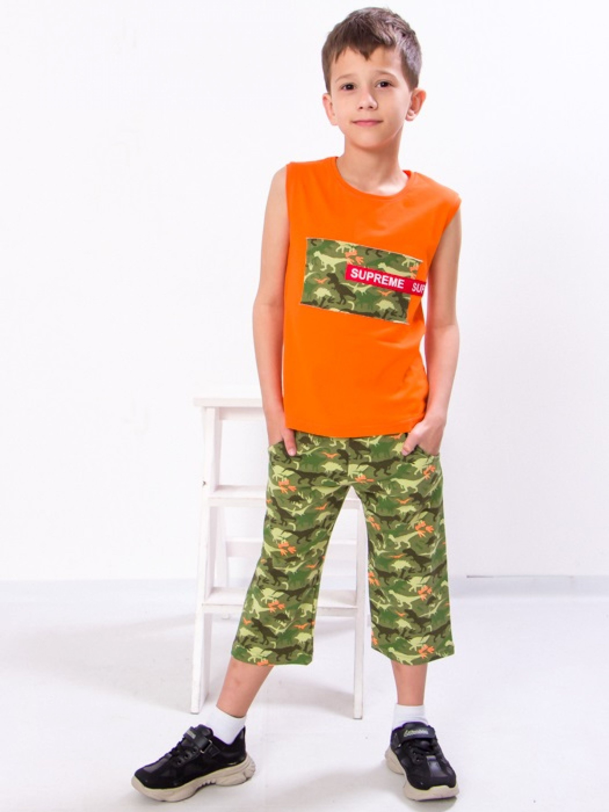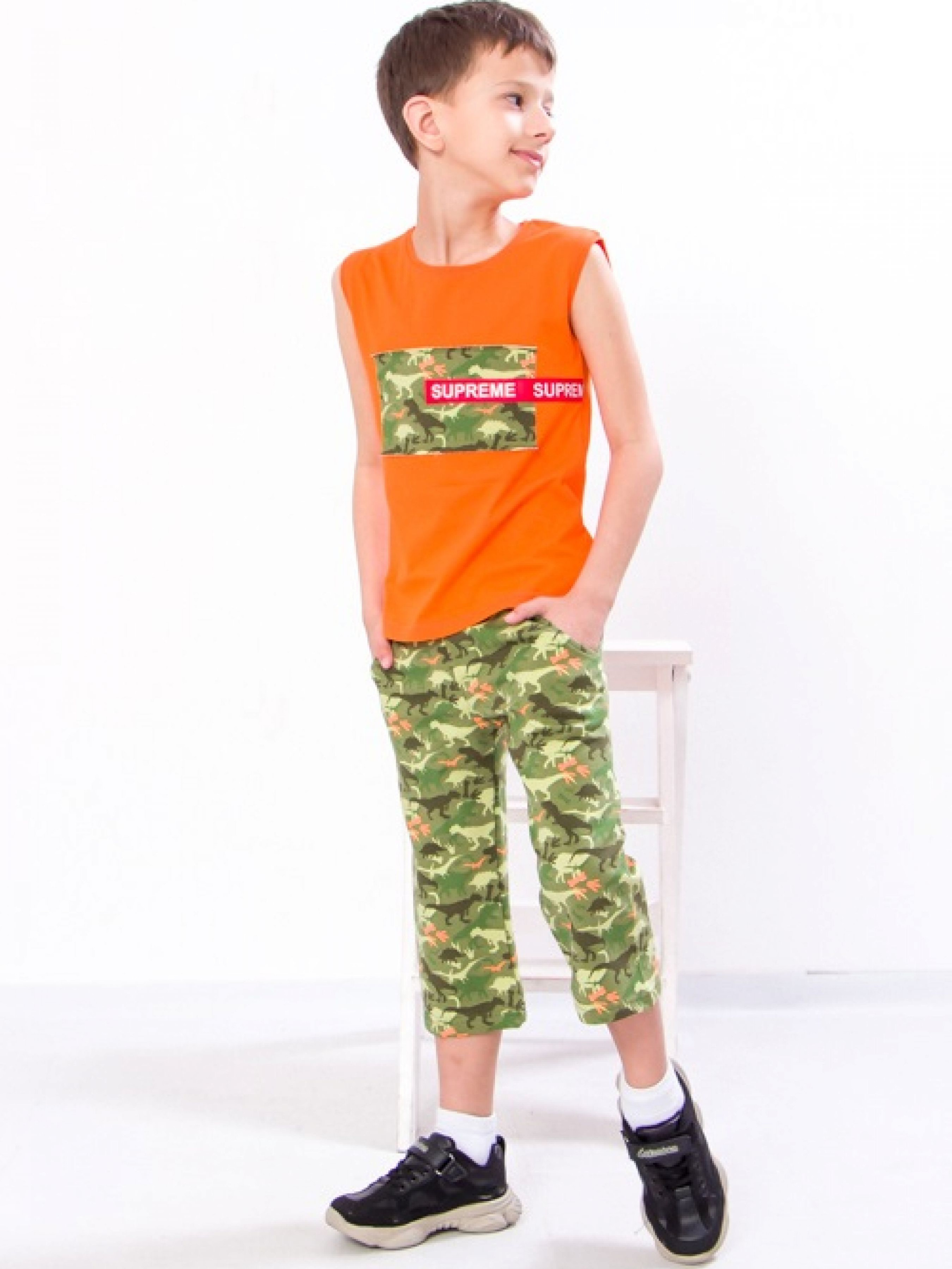 Полотно: кулір однотонний двунитка набивна Склад полотна: кулір - Хлопок двонитка - Хлопок/полиэстеру Зріст: 104-134 Тривалі літні прогулянки гра в футбол чи відпочинок на дачі вимагають максимально зручного аутфіта який не буде сковувати свободу рухів і дозволить шкірі дихати навіть у найспекотніший день. Всім цим вимогам відповідає комплект створений українською ТМ Носи Своє для активних хлопчиків. Афганка виконана з 100% бавовняного полотна кулір бріджи на 95% складаються з гіпоалергенної бавовни яка не викликає свербіж і не парить тіло додавання еластану (5%) робить їх стійкими до розтягування і багаторазовим праннями. М'яка резинка перешкоджає спаданню одягу і не натирає шкіру а яскравий дизайн піднімає настрій. Комплект від «Трикотажний рай» подарує хлопчикові неймовірне відчуття легкості і комфорту. Догляд: прати при температурі 30 ° вручну або в делікатному режимі в пральній машині. Слабке віджимання. Сушка на свіжому повітрі без потрапляння прямих сонячних променів. Прасують річ слабонагрітою праскою з виворітного боку. Майку прати окремо від шортів. Весь одяг вироблена фабрикою строго відповідає розмірній сітці. На бірочці вказано орієнтовний ріс дитини а в таблиці - реальні виміри які зробили наші менеджери. Приємних Вам покупок!
