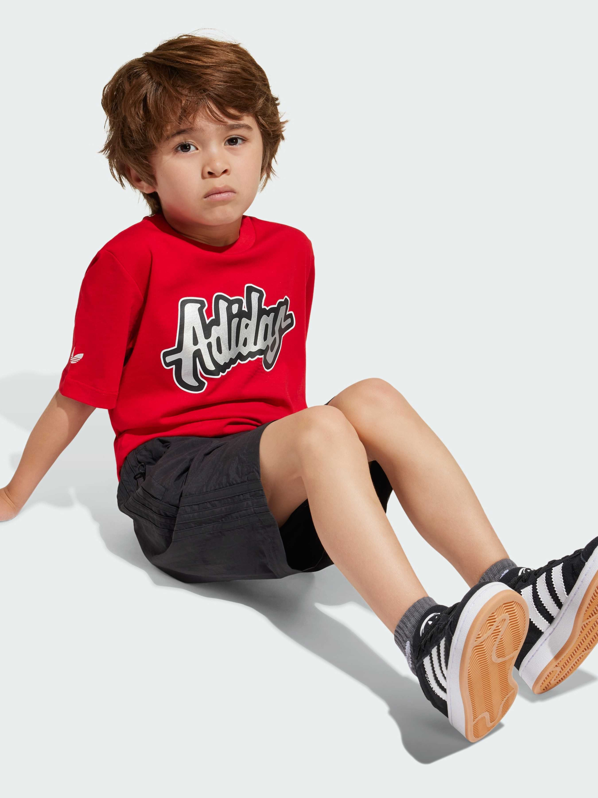 Характеристики 100% хлопок Верх: рифленая горловина Свободный крой Шорты: Боковые карманы Шорты: эластичный пояс, завязки на шнурке Описание Этот комплект из футболки и шорт от adidas создан для любых детских приключений - будь то игры на площадке или отдых дома. Мягкая ткань джерси обеспечивает комфорт в течение всего дня. Спортивная графика и знаковый Трилистник подчеркивают фирменный стиль adidas.