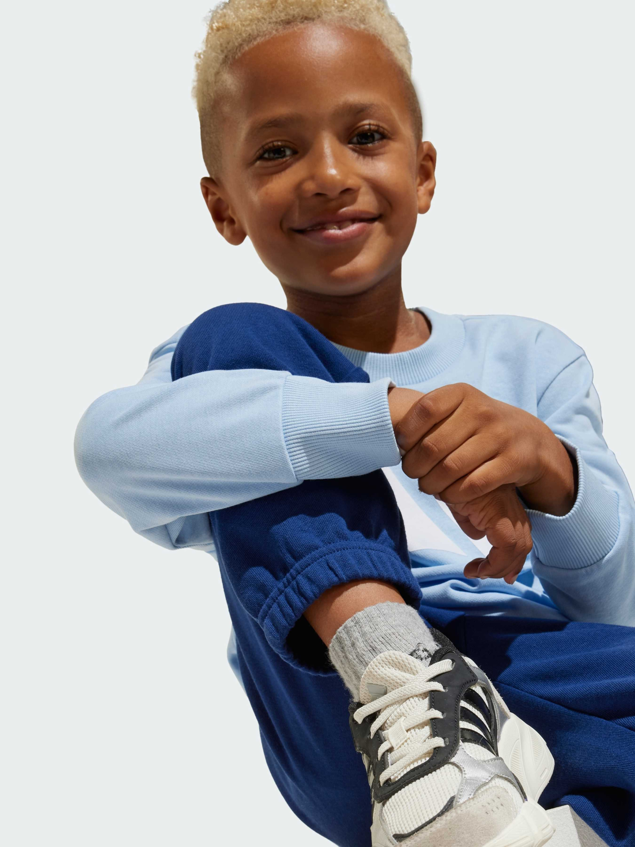 Характеристики 70% хлопок, 30% переработанный полиэстер Брюки: Эластичный пояс Стандартный крой Футболка: круглый вырез Содержит не менее 70% переработанного и возобновляемого сырья Описание Готов к любым приключениям, чтобы день ни принес. Мягкая ткань френч-терри комфортно прилегает к телу, а рифленые манжеты на штанах обеспечивают их надежную посадку во время игр и активных движений. Большой 3 Bar Logo на штанине подчеркивает их спортивный стиль. Выбирая вторичную переработку, мы можем повторно использовать материалы, которые уже были созданы, что помогает сократить количество отходов. Выбор в пользу возобновляемых материалов поможет нам избавиться от зависимости от ограниченных ресурсов. Наши изделия, изготовленные из смеси переработанных и возобновляемых материалов, содержат не менее 70% этих материалов.