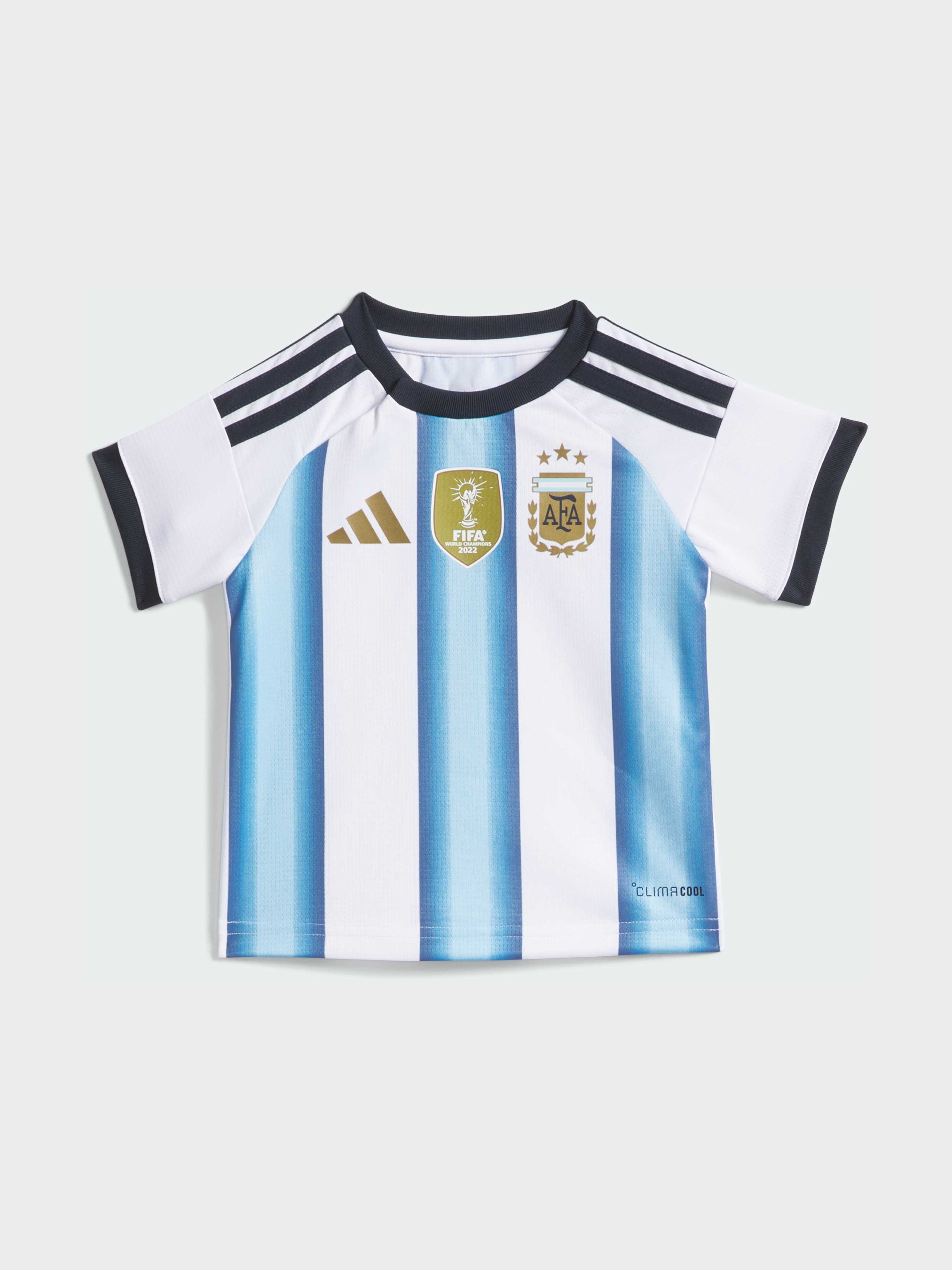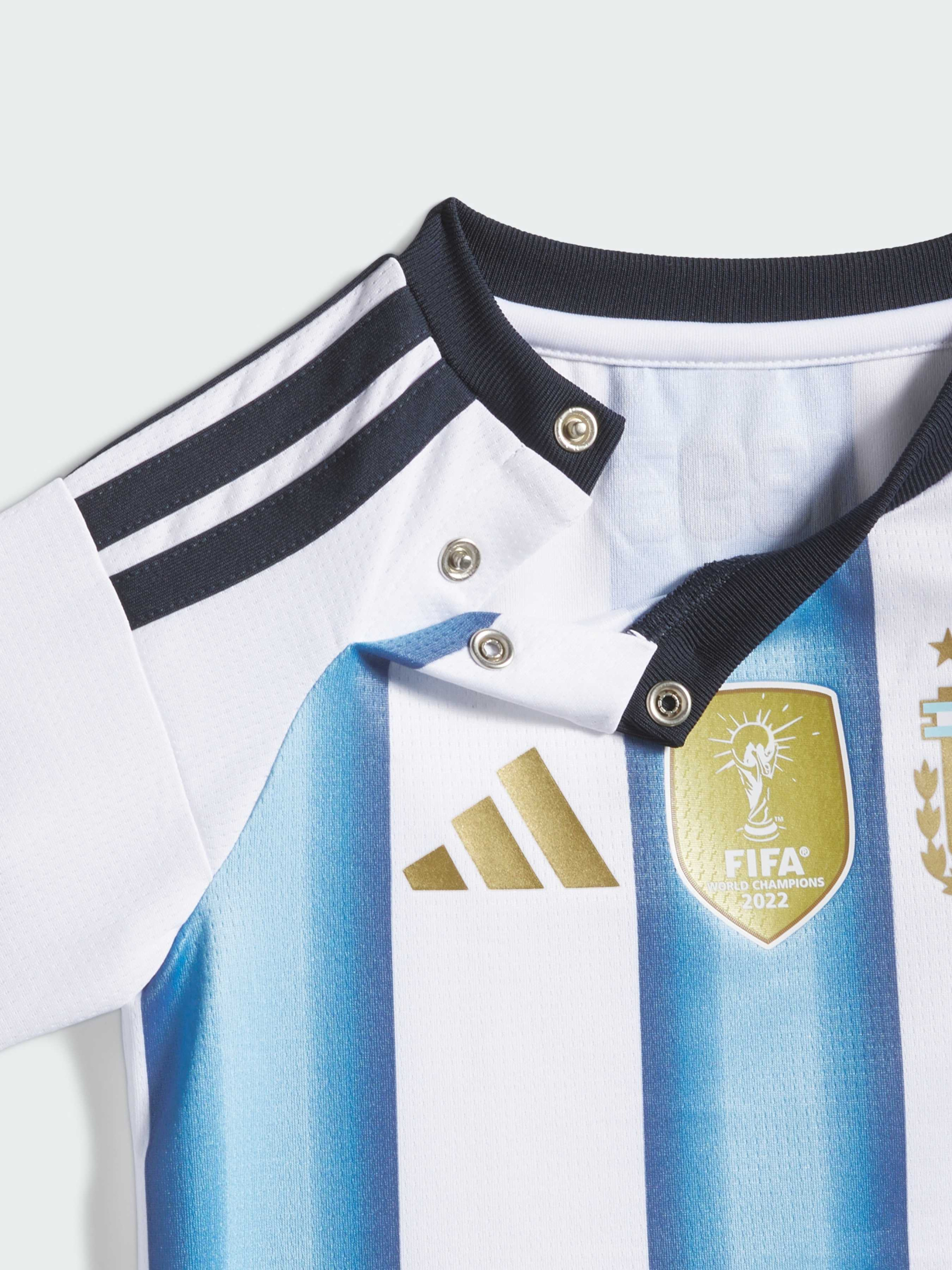Характеристики Застежка на кнопках Рефленый воротник Стандартный крой Технология CLIMACOOL Описание Домашняя форма Argentina 26 привносит в современный стиль нотку футбольной истории. Мягкая ткань и классические детали дизайна символизируют третью звезду команды, отмечающую победы Аргентины в чемпионатах мира 1978, 1986 и 2022 годов.Эта удобная форма включает в себя майку, шорты и гетры из мягкой ткани, которая не раздражает нежную кожу. Застежка на плече облегчает одевание, а стандартный крой позволяет свободно двигаться.В этой форме используется технология adidas Climacool и быстросохнущие волокна, которые обеспечивают ощущение свежести даже в жаркие дни и помогают вашему малышу оставаться прохладным.Эта форма с логотипом adidas и гербом Аргентины — простой способ поделиться своей страстью к футболу с детьми с самого начала.