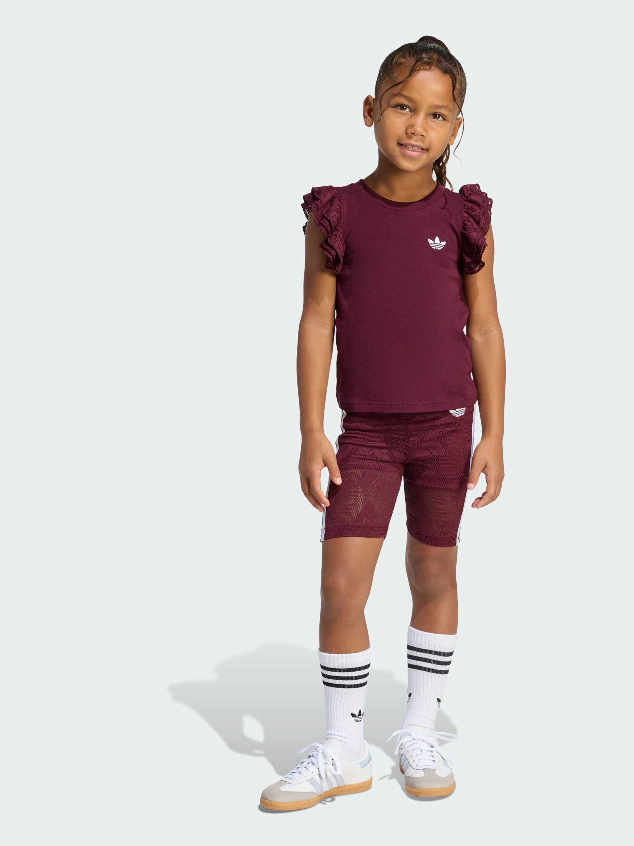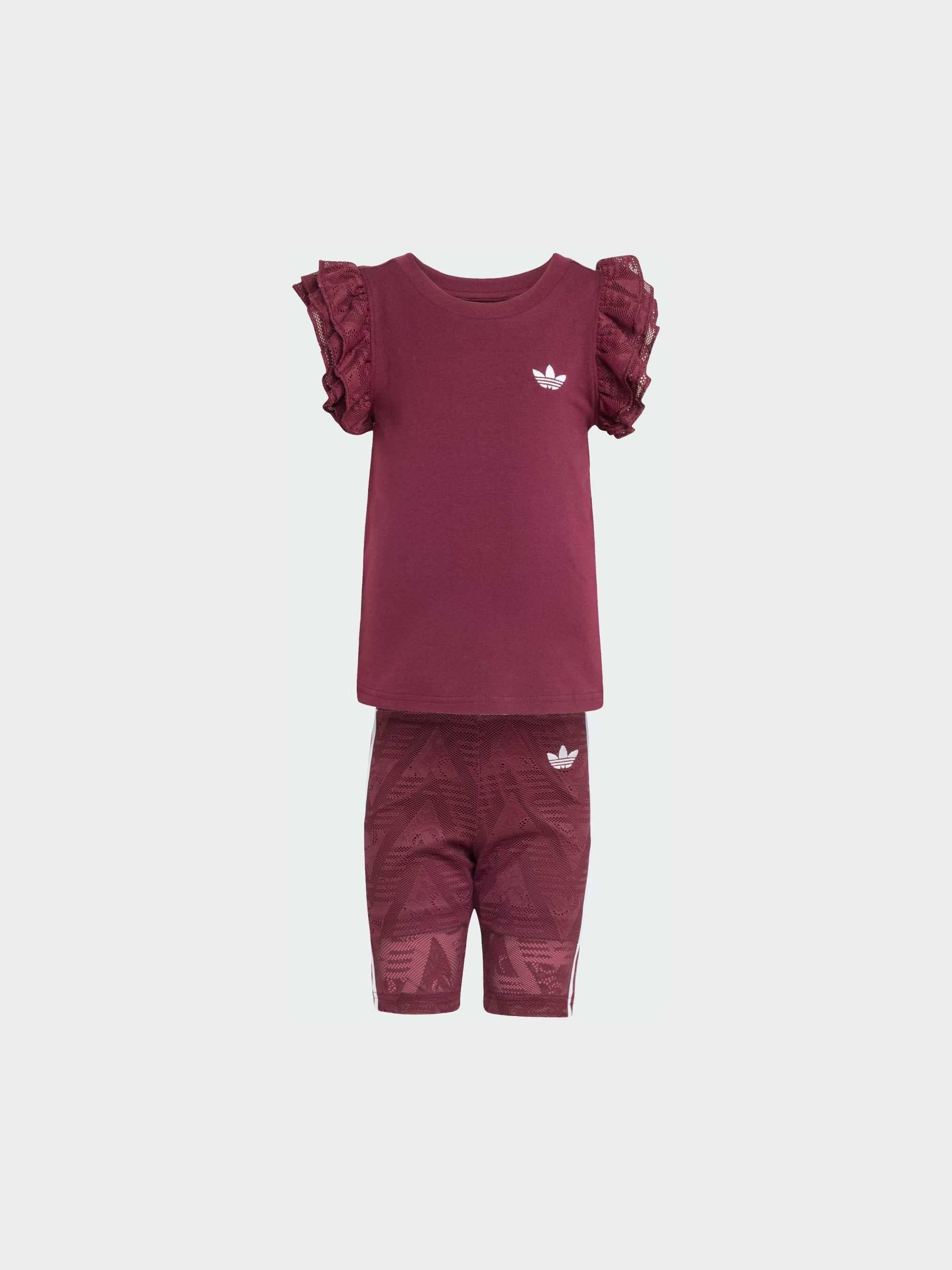 Характеристики Верх: облегающий крой; Низ: облегающий крой Круглый вырез горловины Основной материал: 93% хлопок, 7% эластан; Подкладка: 79% переработанный полиэстер, 21% эластан; Верх: 92% переработанный полиэстер, 8% эластан Средняя посадка Трикотажная ткань Описание Набор из велосипедок и футболки Lace, созданный для детей, которые любят движение, сочетает в себе игривую энергию и культовый стиль adidas. Будь то игры, школьные занятия или спортивные тренировки, этот комплект создан, чтобы соответствовать активному образу жизни твоего ребенка. Изготовленный из трикотажного материала, он мягкий на ощупь и подходит для повседневной носки. Футболка имеет облегающий крой, а велосипедки обладают плотной посадкой и эластичностью, обеспечивая свободу движений.Круглый вырез добавляет классический штрих, обеспечивая комфорт и удобство носки. Этот комплект с логотипом adidas придаст гардеробу твоего ребенка стиль, ориентированный на высокую производительность.
