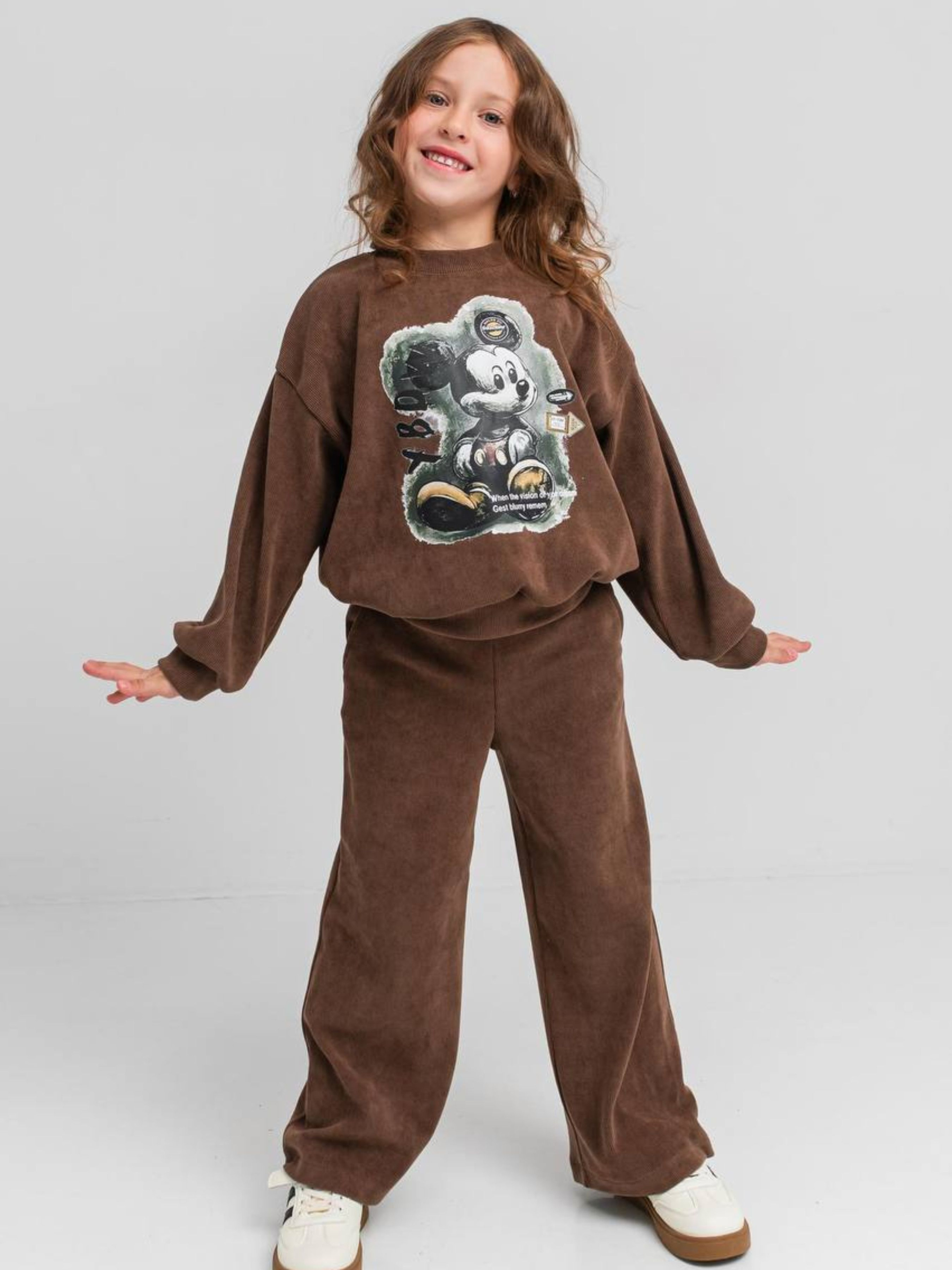 Дитячий вельветовий костюм для дівчинки «Камалія» — це ідеальне поєднання вишуканої фактури та повсякденного комфорту. Комплект складається зі зручної сорочки та штанів, виконаних із преміального стрейчевого вельвету. Головна перевага цієї моделі — трикотажна основа тканини, яка робить виріб неймовірно м’яким зсередини та дозволяє йому ідеально сідати по фігурі, не обмежуючи активних рухів дитини. Характеристики: Тканина стрейч-вельвет: завдяки еластичності костюм дуже зручний у носінні та не деформується. Склад: 95% поліестер, 5% еластан. Трикотажна основа: забезпечує приємний контакт зі шкірою та додаткове збереження тепла. Трендовий фасон: вільна сорочка та штани прямого або злегка звуженого крою (залежно від посадки). Універсальний дизайн: однотонна фактура дозволяє легко комбінувати елементи костюма з іншими речами. Практичність: тканина зносостійка, добре тримає колір і виглядає по-особливому стильно. Підходить для будь-якої події: школа, гості, прогулянки чи тематичні фотосесії. Костюм «Камалія» створений для дівчаток, які цінують естетику та хочуть почуватися впевнено у будь-якій ситуації. Оксамитовий блиск вельвету в поєднанні з актуальним вільним кроєм робить цей костюм універсальним рішенням: він однаково доречний як на шкільних заняттях, так і на святкових заходах чи міських прогулянках. Рекомендації з догляду Прання: Тільки делікатний режим при температурі 30-40°C. Обов'язково вивертайте виріб навиворіт, щоб захистити ворс вельвету. Засоби: Використовуйте рідкі гелі для кольорових тканин. Уникайте агресивних відбілювачів. Сушіння: Рекомендовано сушити у розправленому вигляді на вішалці-плічках подалі від прямих сонячних променів. Прасування: Найкраще використовувати вертикальний відпарювач. Якщо прасуєте праскою — робіть це виключно з виворітного боку на низьких температурах, щоб не пошкодити текстуру тканини.