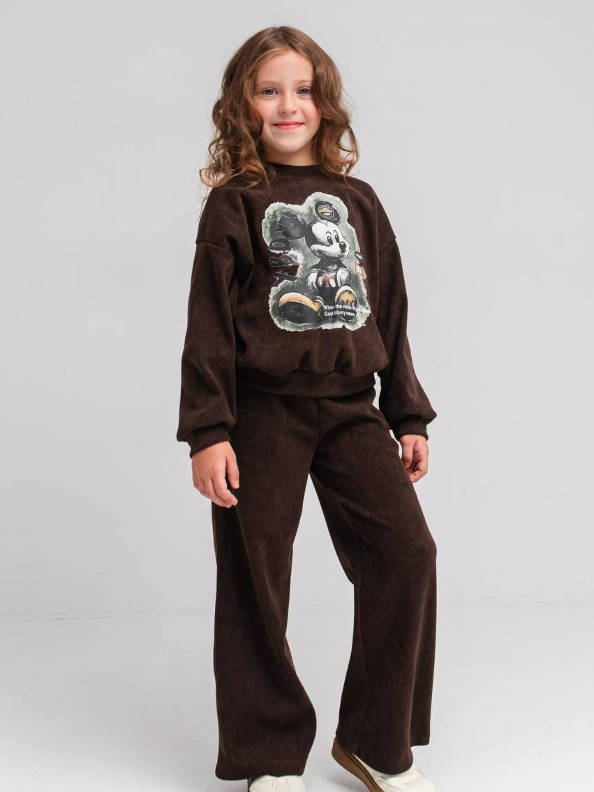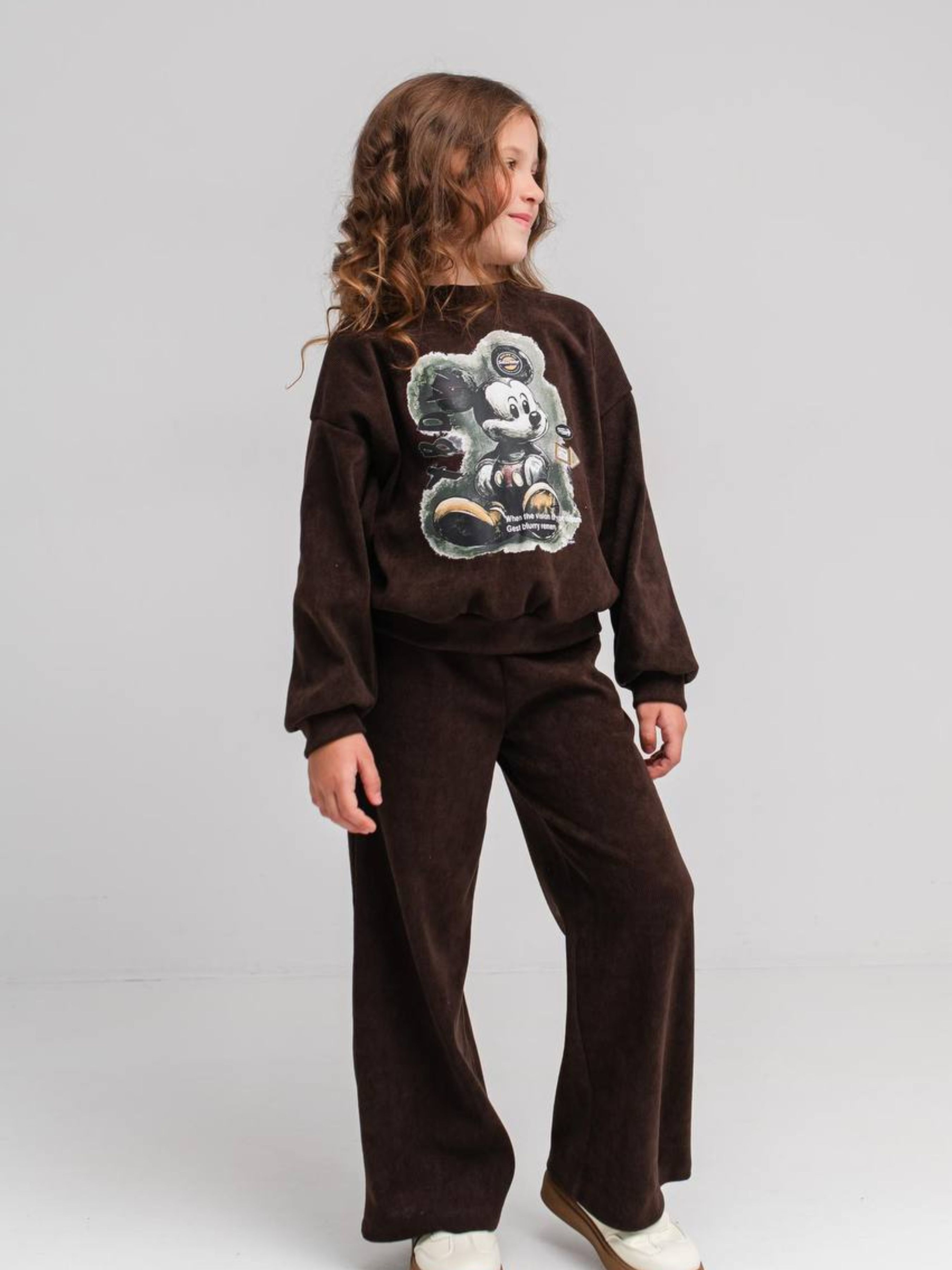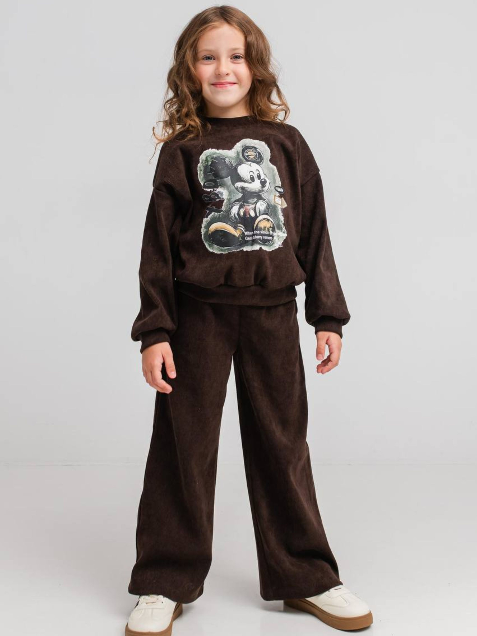 Дитячий вельветовий костюм для дівчинки «Камалія» — це ідеальне поєднання вишуканої фактури та повсякденного комфорту. Комплект складається зі зручної сорочки та штанів, виконаних із преміального стрейчевого вельвету. Головна перевага цієї моделі — трикотажна основа тканини, яка робить виріб неймовірно м’яким зсередини та дозволяє йому ідеально сідати по фігурі, не обмежуючи активних рухів дитини. Характеристики: Тканина стрейч-вельвет: завдяки еластичності костюм дуже зручний у носінні та не деформується. Склад: 95% поліестер, 5% еластан. Трикотажна основа: забезпечує приємний контакт зі шкірою та додаткове збереження тепла. Трендовий фасон: вільна сорочка та штани прямого або злегка звуженого крою (залежно від посадки). Універсальний дизайн: однотонна фактура дозволяє легко комбінувати елементи костюма з іншими речами. Практичність: тканина зносостійка, добре тримає колір і виглядає по-особливому стильно. Підходить для будь-якої події: школа, гості, прогулянки чи тематичні фотосесії. Костюм «Камалія» створений для дівчаток, які цінують естетику та хочуть почуватися впевнено у будь-якій ситуації. Оксамитовий блиск вельвету в поєднанні з актуальним вільним кроєм робить цей костюм універсальним рішенням: він однаково доречний як на шкільних заняттях, так і на святкових заходах чи міських прогулянках. Рекомендації з догляду Прання: Тільки делікатний режим при температурі 30-40°C. Обов'язково вивертайте виріб навиворіт, щоб захистити ворс вельвету. Засоби: Використовуйте рідкі гелі для кольорових тканин. Уникайте агресивних відбілювачів. Сушіння: Рекомендовано сушити у розправленому вигляді на вішалці-плічках подалі від прямих сонячних променів. Прасування: Найкраще використовувати вертикальний відпарювач. Якщо прасуєте праскою — робіть це виключно з виворітного боку на низьких температурах, щоб не пошкодити текстуру тканини.