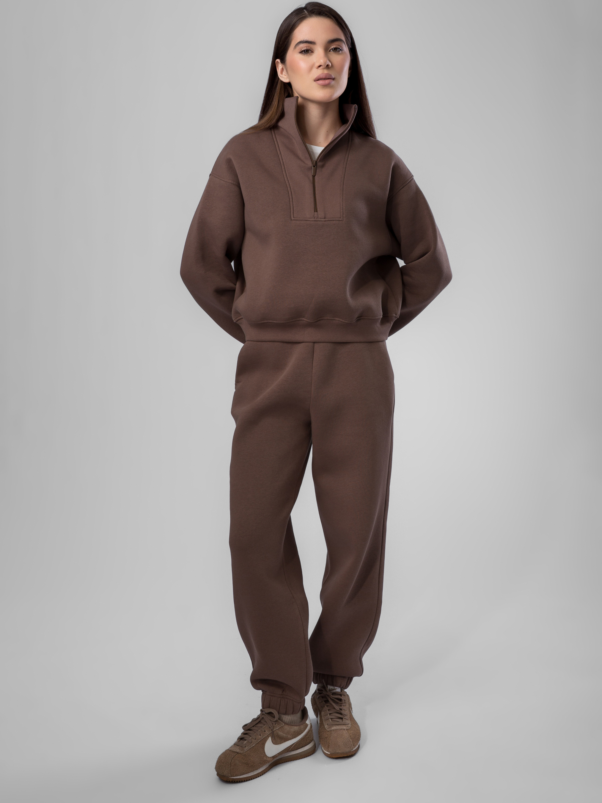 Цей трикотажний костюм на флісі KT-F-330 - виконаний у вільному крої, що забезпечує повну свободу рухів і створює комфортний, розслаблений образ.Він ідеально облягає фігуру, підкреслюючи природні форми без зайвого облягання. Завдяки бежевому кольору та універсальному дизайну, костюм легко комбінується з іншими елементами гардеробу, дозволяючи створювати як повсякденні, так і затишні домашні луки.Штани костюма оснащені еластичним поясом на резинці з регулюванням, що гарантує надійну фіксацію та зручність носіння протягом усього дня.Переваги даного костюма:- Флісова підкладка забезпечує приємну м'якість і тепло, зберігаючи комфорт у прохолодну погоду.- Підходить для домашнього використання, прогулянок чи відпочинку, адаптуючись до різних ситуацій.Поради по догляду:- Прання в машинці проводьте на делікатному режимі або для синтетичних тканин (30°C).- Використовуйте м'який пральний засіб без відбілювачів, щоб зберегти колір і текстуру флісу.- Не використовуйте сушарку, щоб уникнути деформації. Сушіть на повітрі, розвішавши на вішалці для збереження форми, подалі від прямих сонячних променів.- Прасування не рекомендується; при необхідності використовуйте низьку температуру або відпарювач.- Зберігайте в прохолодному, сухому місці, захищеному від сонячного світла, щоб запобігти вицвітанню бежевого відтінку.