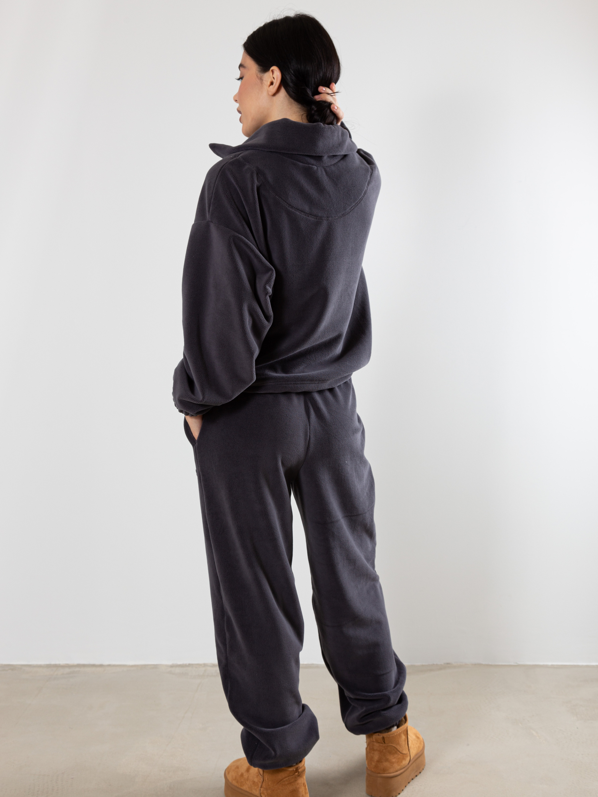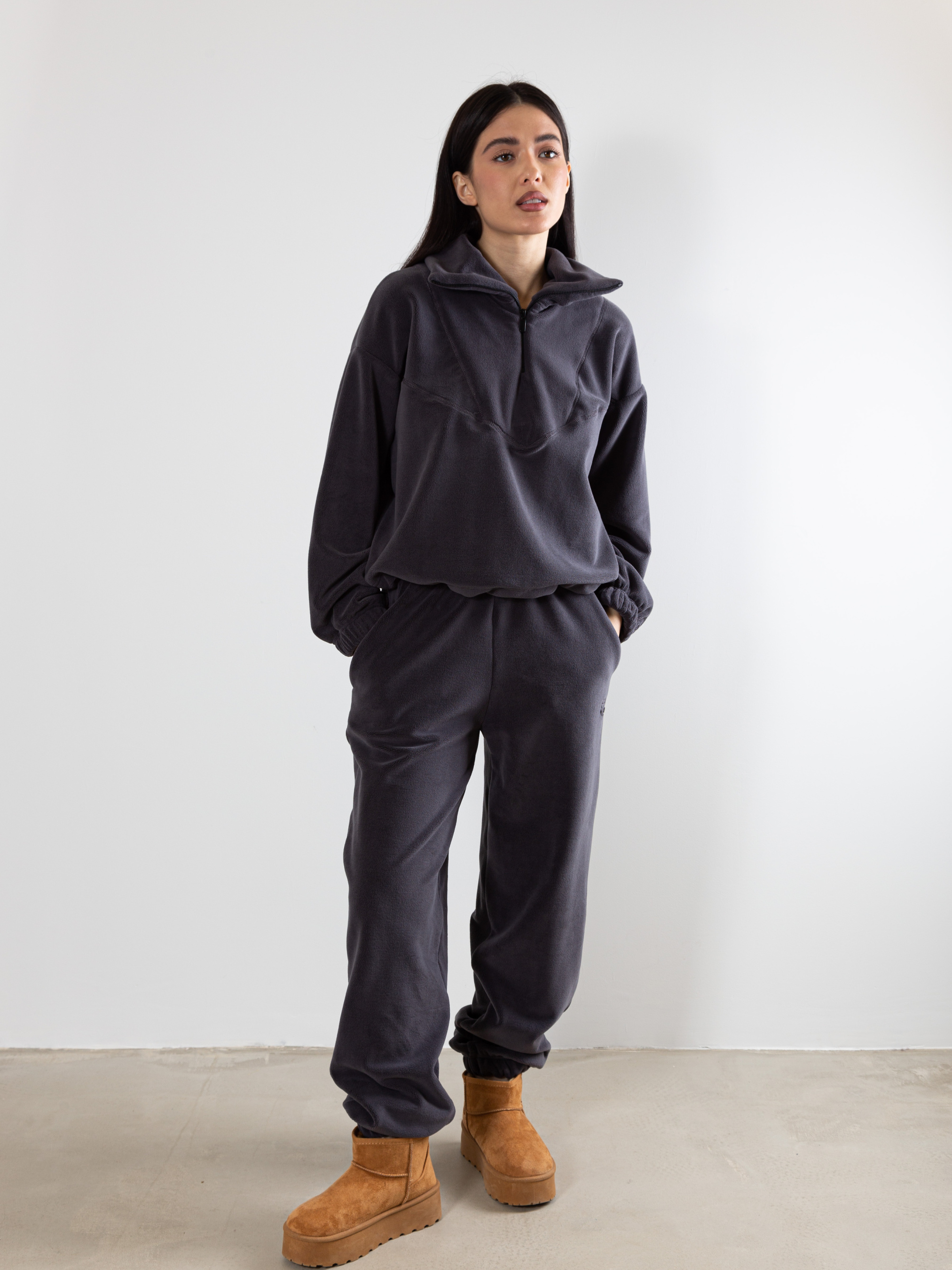 Трикотажний утеплений костюм власного виробництва FAMO, виготовлений зі 100% поліестеру. Цей матеріал забезпечує відмінну теплоізоляцію, швидко сохне і не вимагає особливого догляду. Костюм складається з двох елементів: світшот вільного крою з замочком зверху та джогери. Кольорова гама. Костюм представлений у нейтральних, теплих відтінках: молочний, коричневий, темно-бежевий, бежевий. Ці кольори легко поєднуються між собою і з іншими елементами гардеробу. Сезон: Костюм ідеально підходить для осінньо-зимового періоду. Він зігріє в холодну погоду і не обмежує рухів. Рекомендації по догляду Прання: Рекомендується делікатне прання в теплій воді з використанням спеціальних засобів для синтетичних тканин. Сушіння: Сушити костюм слід в розправленому вигляді, уникаючи прямих сонячних променів. Прасування: Прасувати костюм слід при мінімальній температурі або зовсім відмовитися від прасування. Зберігання: Зберігати костюм слід в шафі, захищеному від прямих сонячних променів і вологи. Як створити стильні образи з трикотажним костюмом від FAMO Повсякденний образ: Сполучіть костюм з масивними кросівками або чоботами, доповніть образ пуховиком або теплою курткою. Спортивний стиль: Ідеальний варіант для занять спортом або прогулянок на свіжому повітрі. Вуличний стиль: Додайте до костюму бейсболку, рюкзак і масивні кросівки. Трикотажний утеплений костюм від FAMO - це відмінний вибір для холодного сезону. Він забезпечить вам тепло, комфорт і стильний зовнішній вигляд.