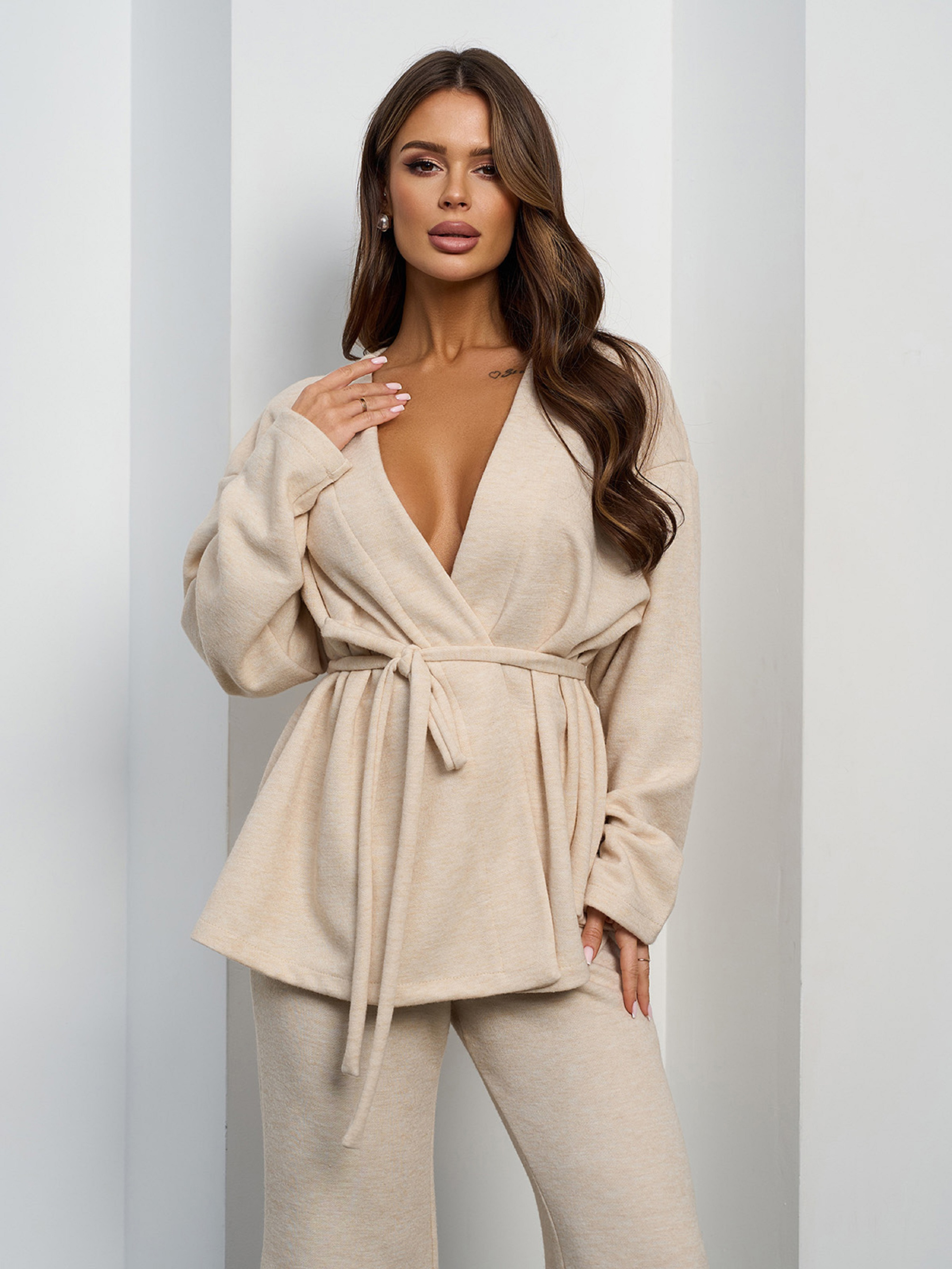 Повседневный костюм ISSA Plus модель 15372_светло-бежевый