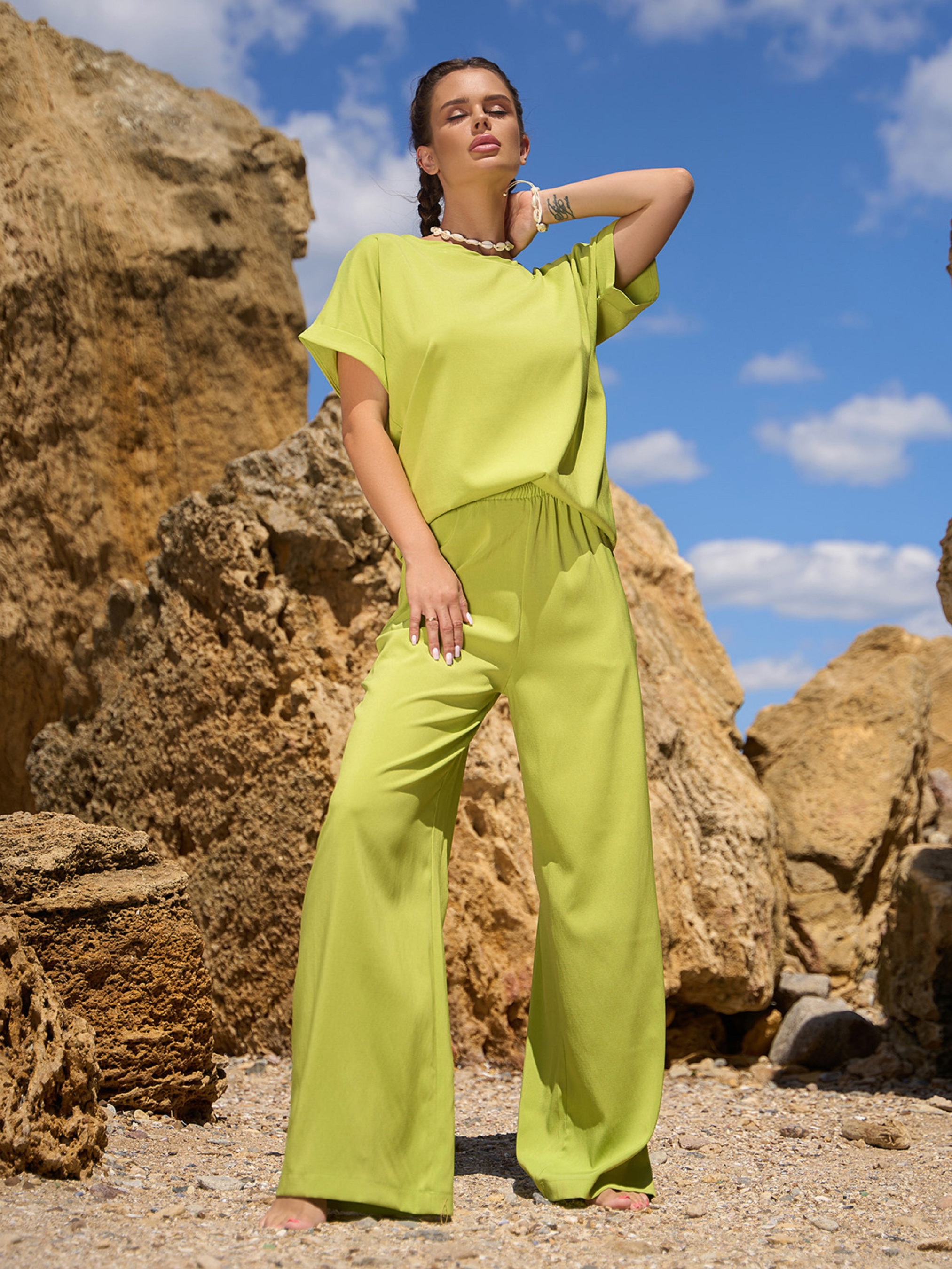 Повседневный костюм ISSA Plus модель 12766A_салатовый