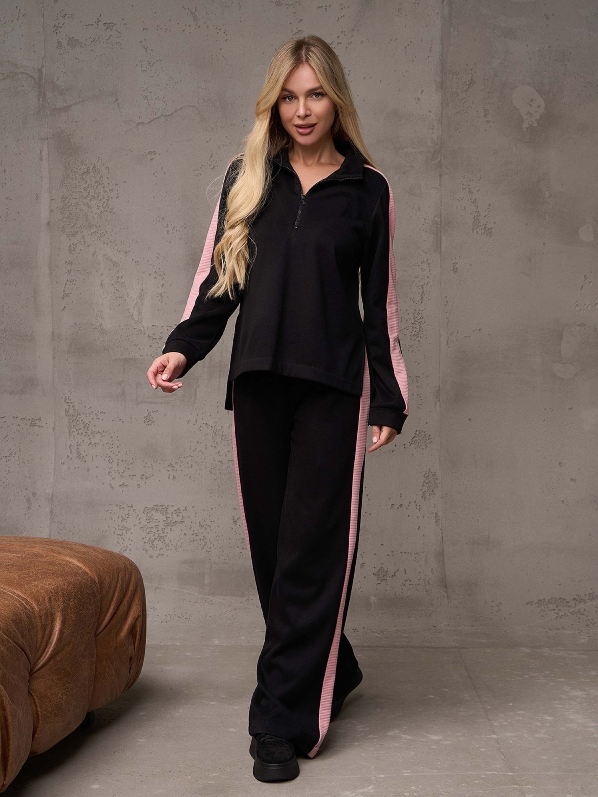 Повседневный костюм ISSA Plus модель 14891_черный_розовый