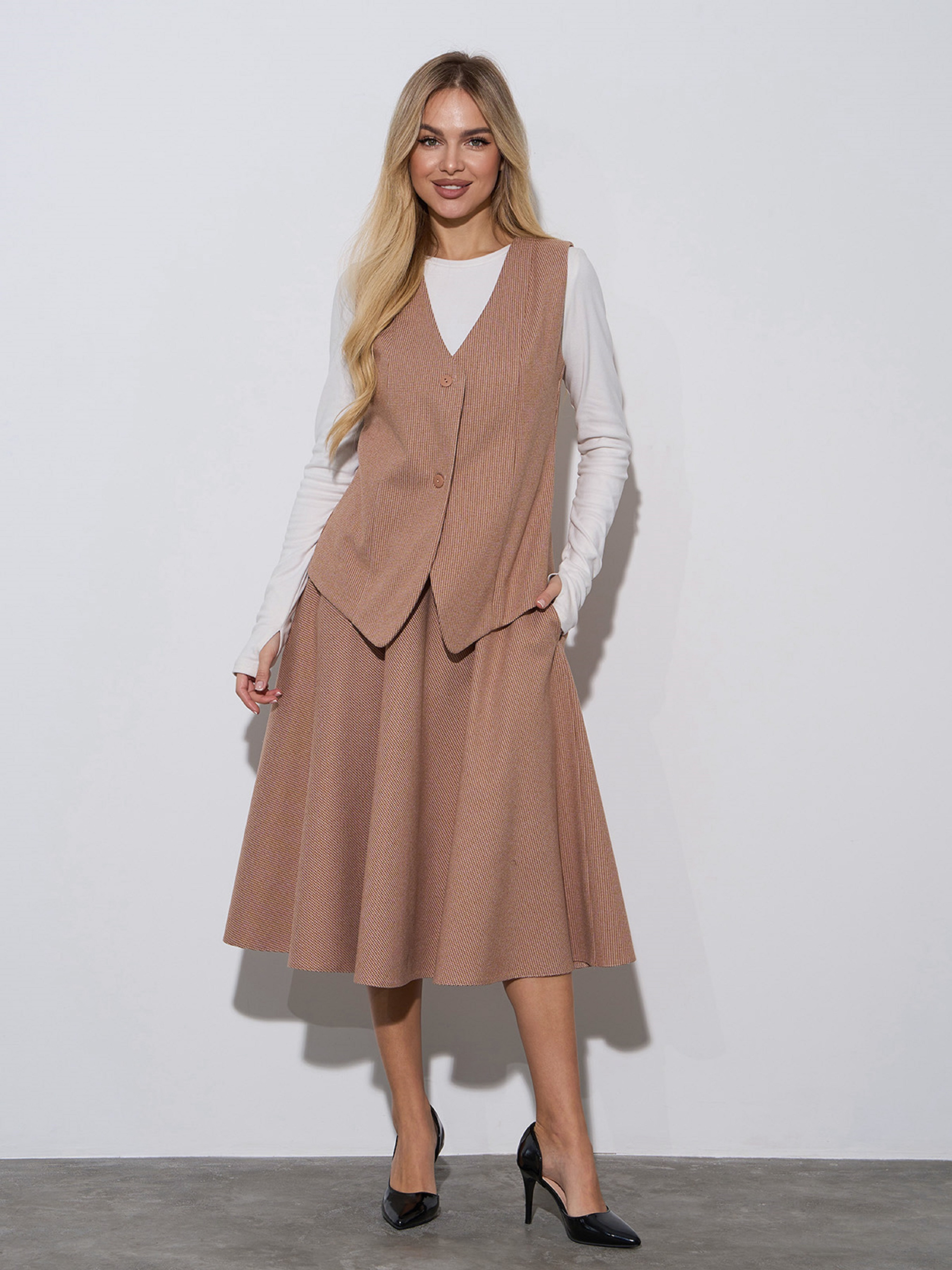 Повседневный костюм ISSA Plus модель 14976_бежевый