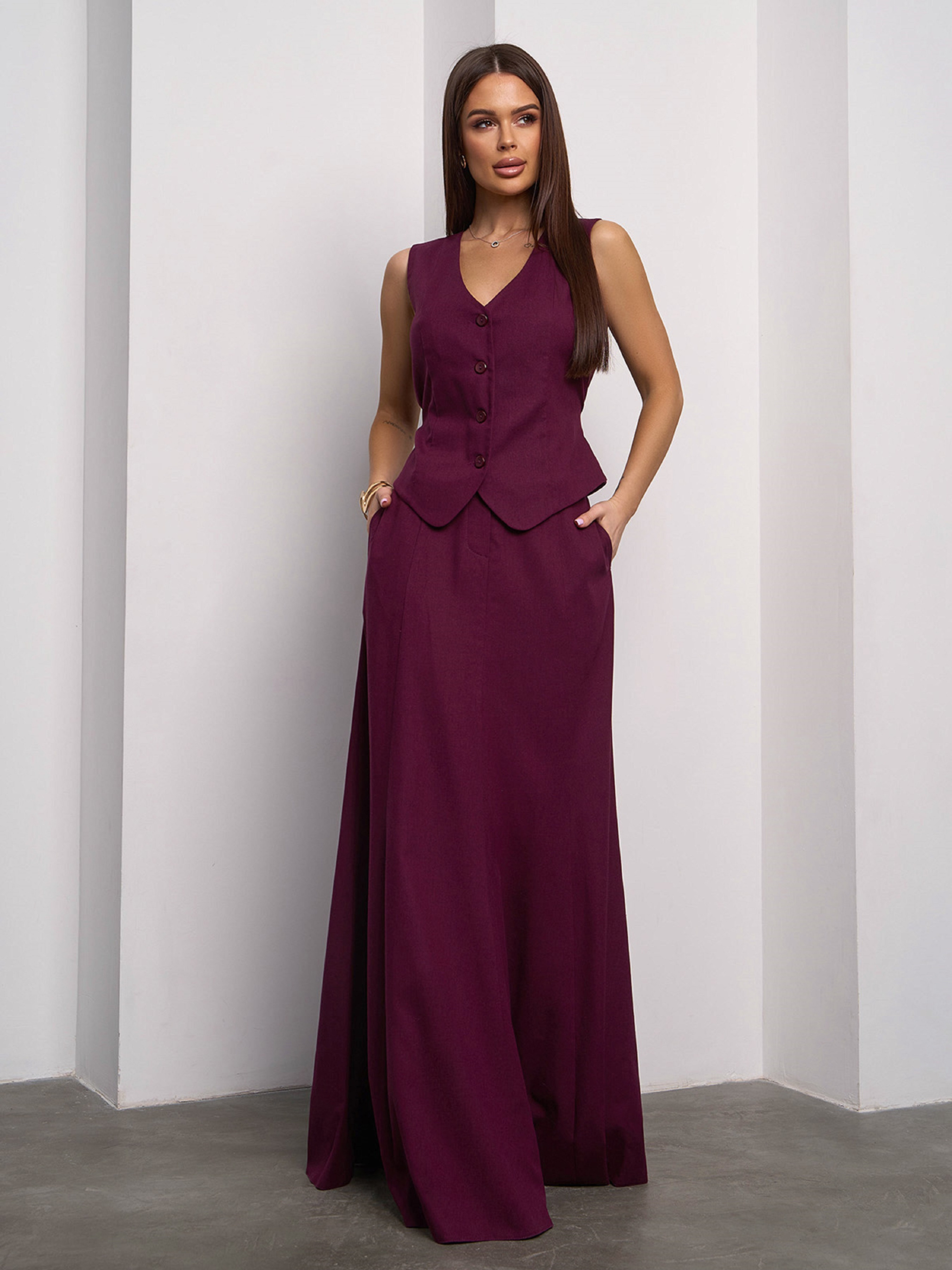 Деловой костюм ISSA Plus модель 14627_темно_бордовый