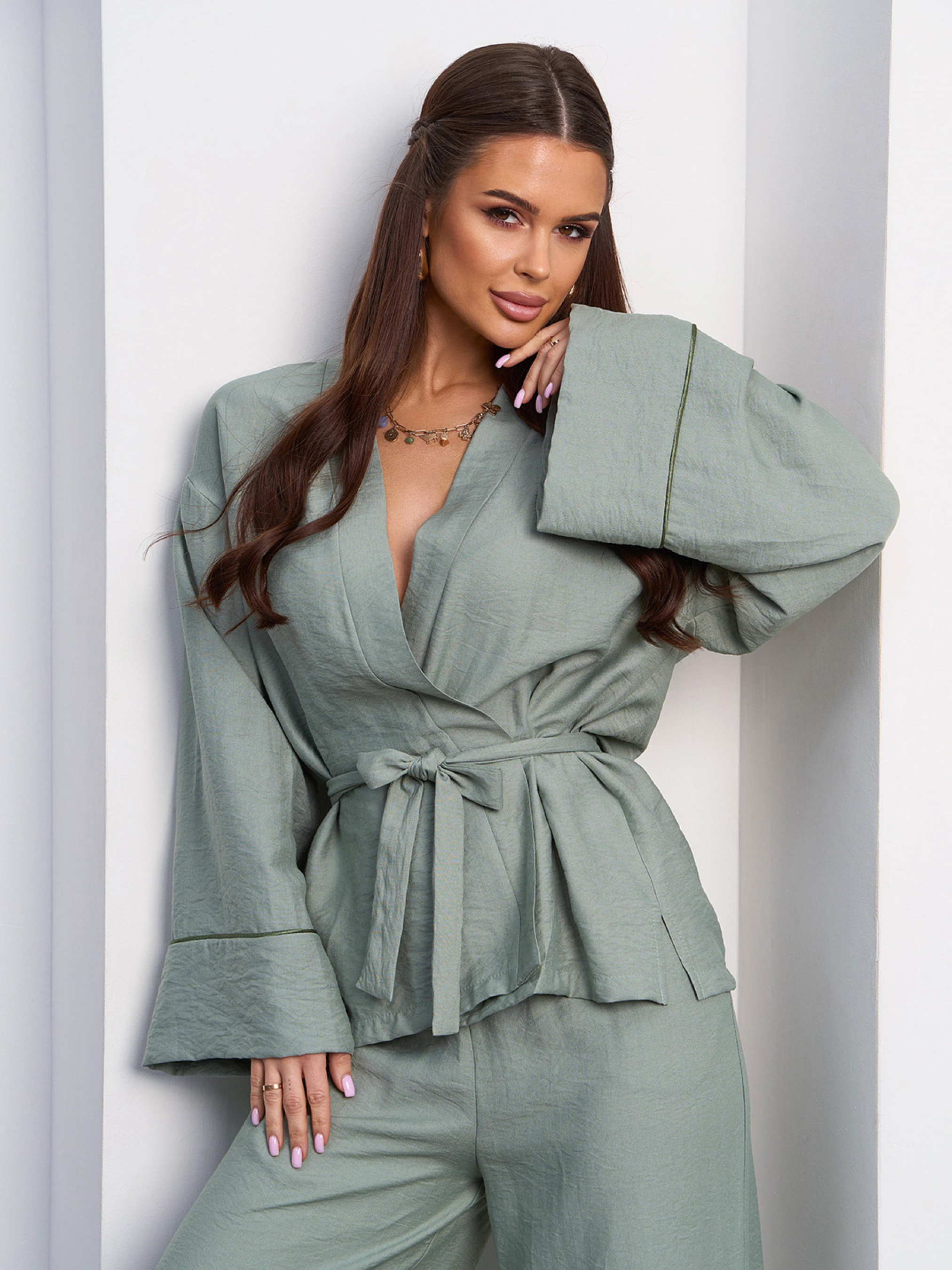 Повседневный костюм ISSA Plus модель SA-613_оливковый