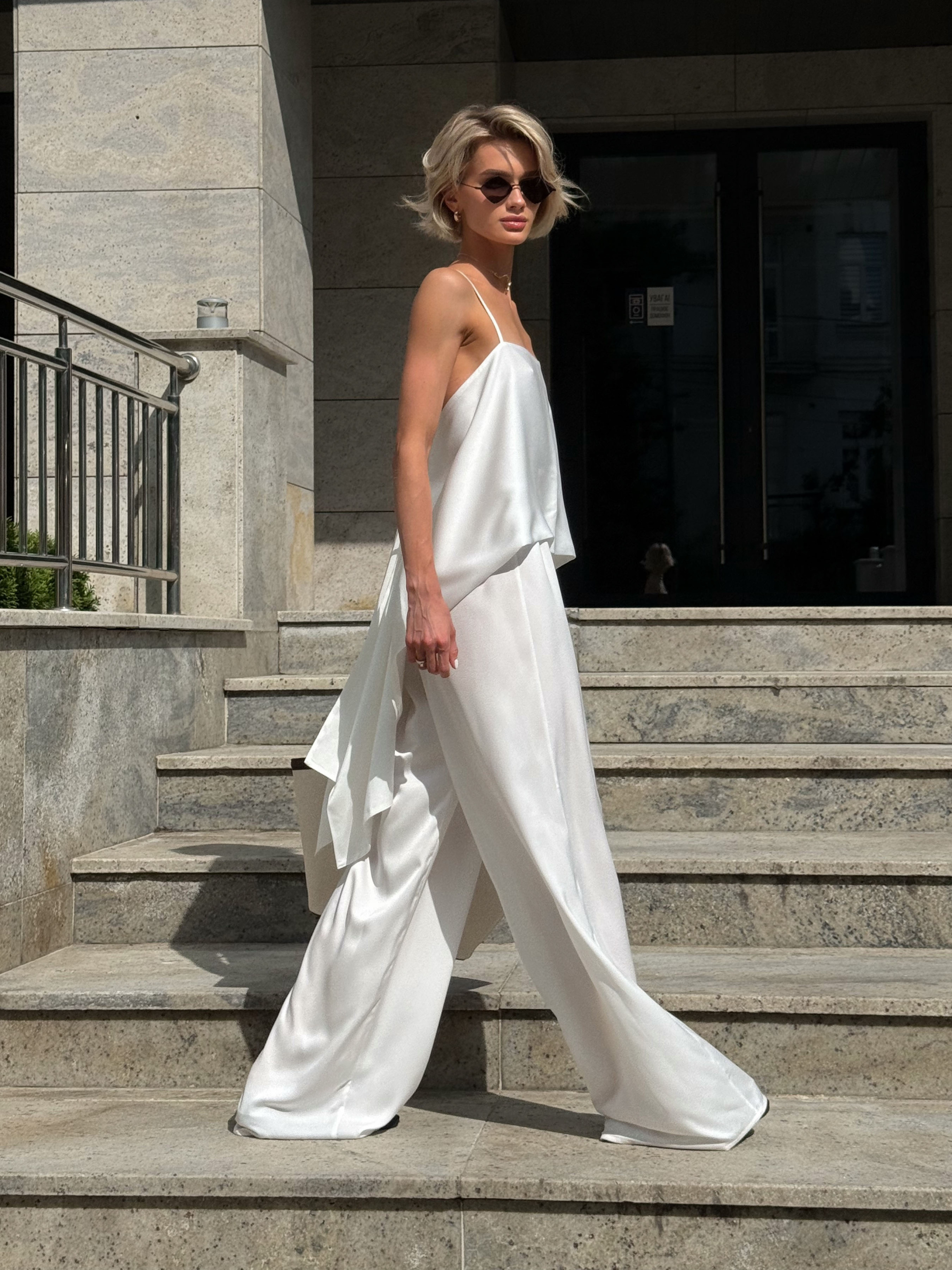 Ткань: шелк MANGO Состав: 97% полиэстер, 3% эластан. Цвет: молочный, черный, шоколад Размеры: XS, S, M, L Параметры модели на фото: Рост: 174 см ОГ: 84 см; ОТ: 58 см; ОС: 84 см; На фото представлена модель в размере XS Комплектация: топ и брюки Фактические измерения изделия: XS Топ Длина от плеча с бретелью: 97 см; Длина по переду с бретелью: 47 см; Брюки Объем по талии: 54-106 см; Объем по бедрам: 106 см; Длина изделия по боковому шву: 112 см. Длина изделия по внутреннему шву: 88 см S Топ Длина от плеча с бретелью: 97 см; Длина по переду с бретелью: 47 см; Брюки Объем по талии: 58-110 см; Объем по бедрам: 110 см; Длина изделия по боковому шву: 112 см. Длина изделия по внутреннему шву: 87,5 см. М Топ Длина от плеча с бретелью: 98 см; Длина по переду с бретелью: 48 см; Брюки Объем по талии: 62-114 см; Объем по бедрам: 114 см; Длина изделия по боковому шву: 113 см. Длина изделия по внутреннему шву: 88 см L Топ Длина от плеча с бретелью: 98 см; Длина по переду с бретелью: 48 см; Брюки Объем по талии: 64-120 см; Объем по бедрам: 120 см; Длина изделия по боковому шву: 113 см. Длина изделия по внутреннему шву: 87,5 см. Топ Силуэт: свободный Декоративные элементы: завязки на спинке Брюки Силуэт: свободный Посадка: высокая Элегантный комплект из топа и брюк создан для тех, кто ценит комфорт, стиль и лёгкость. Топ имеет свободный силуэт, мягко ложащийся по фигуре, не ограничивая движений. Особое внимание привлекают декоративные завязки на спинке, придающие образу романтического шарма и позволяющие регулировать посадку. Брюки – свободного кроя с высокой посадкой, что визуально удлиняет ноги и подчеркивает талию. Изготовлены из легкой шелковистой ткани MANGO, мягко переливающейся на свете и дающей приятные тактильные ощущения. Комплект доступен в трех благородных цветах: молочном, черном и шоколадном. ПОЛИГРАФИЯ НЕ ВСЕГДА ПРАВИЛЬНО ПЕРЕДАЕТ ОТЦЕНОК ТКАНИ. Цветопередача на мониторе и телефоне может отличаться оттенками цвета ткани.