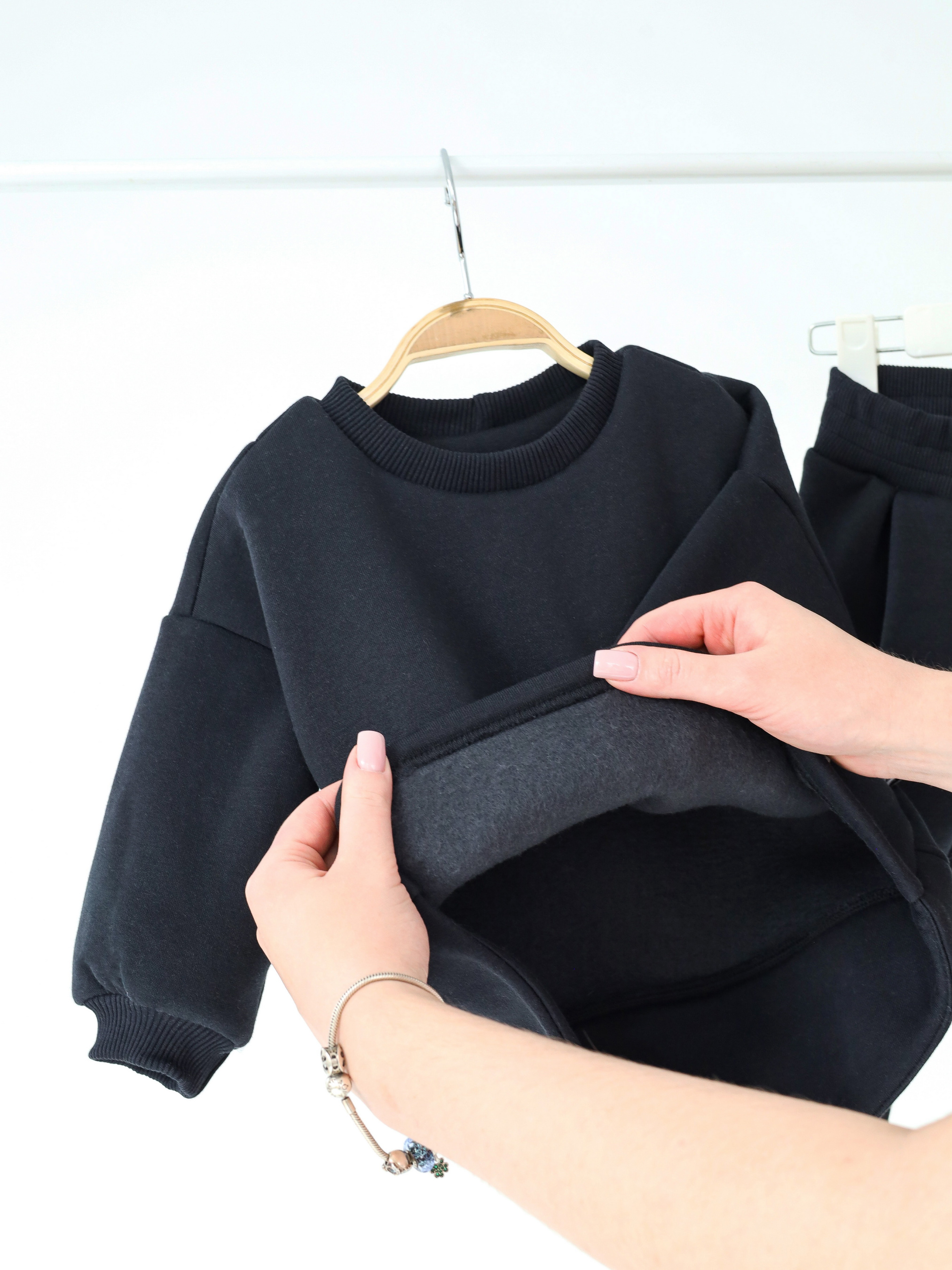 Для бешкетників та непосид, яким цікаво все й усюди! Комфорт, тепло та стиль в одному образі. Пошито з щільної тринитки на флісі. Тканина м’яка, дуже приємна до тіла та зберігає форму навіть після численного прання. Не «кусається», не спричиняє подразнень і зігріває у прохолодні дні. Світшот має подовжену спинку, що захищає поперек, коли малюк нахиляється чи сідає. М’яка горловина не тисне й не натирає, а манжети фіксують рукав, не заважаючи гратись. Особливий крій додає світшоту приємного об’єму. Штани мають широкий пояс на гумці — легко вдягати та зручно носити. Силует продуманий: достатньо вільні, щоб не сковувати рухів, але водночас з акцентом на трендову посадку. А ще можна докупити додаткову пару штанів Spunky в іншому кольорі — на зміну чи для нових комбінацій.