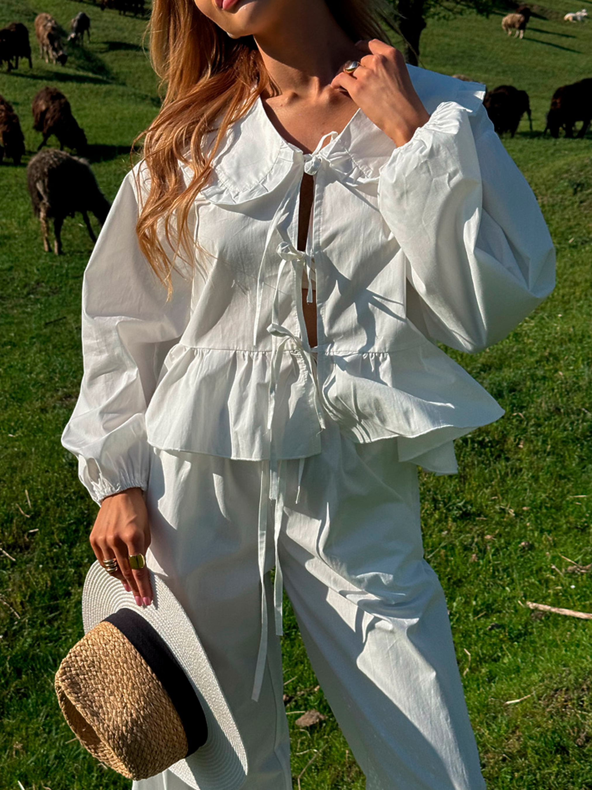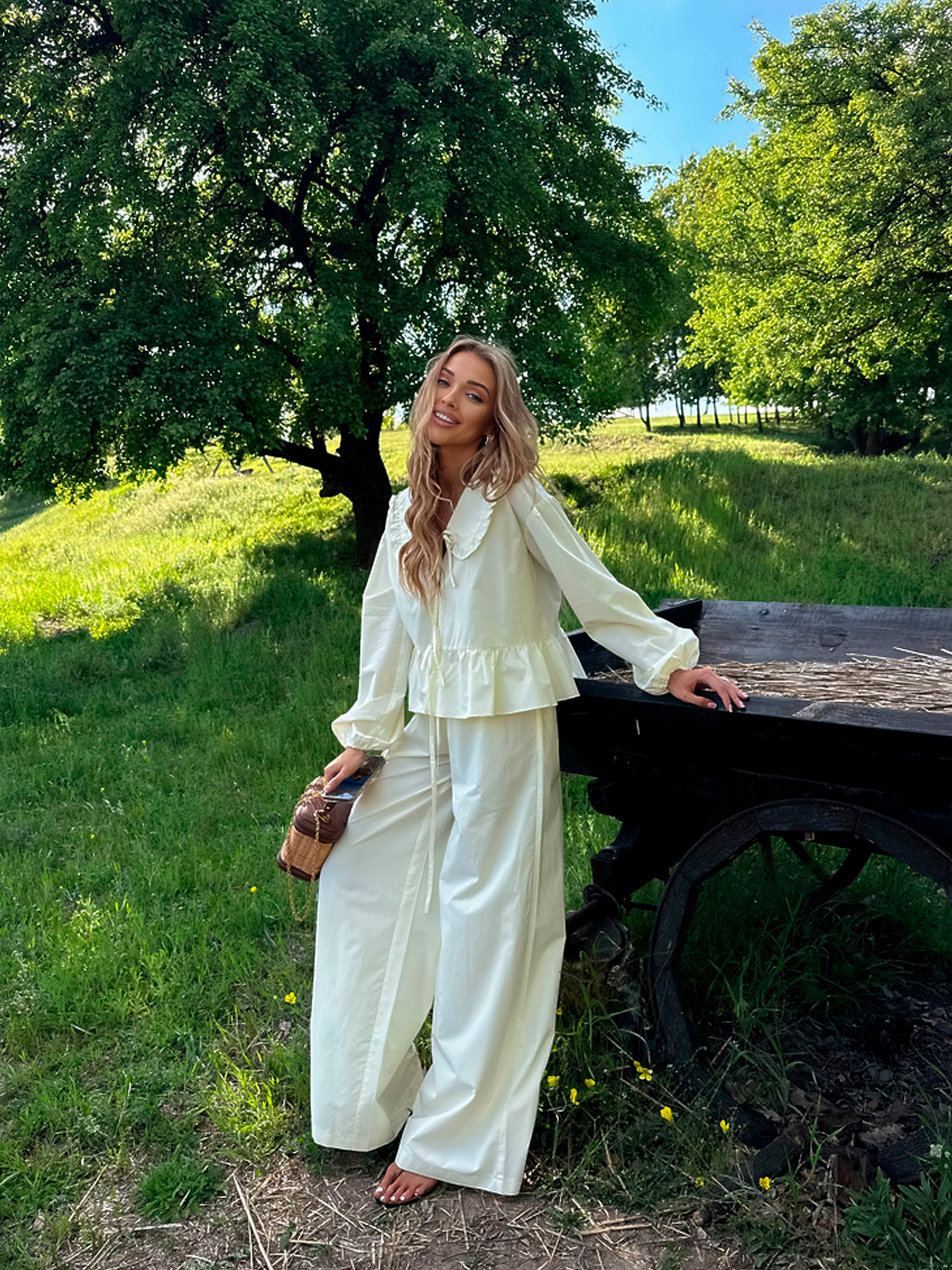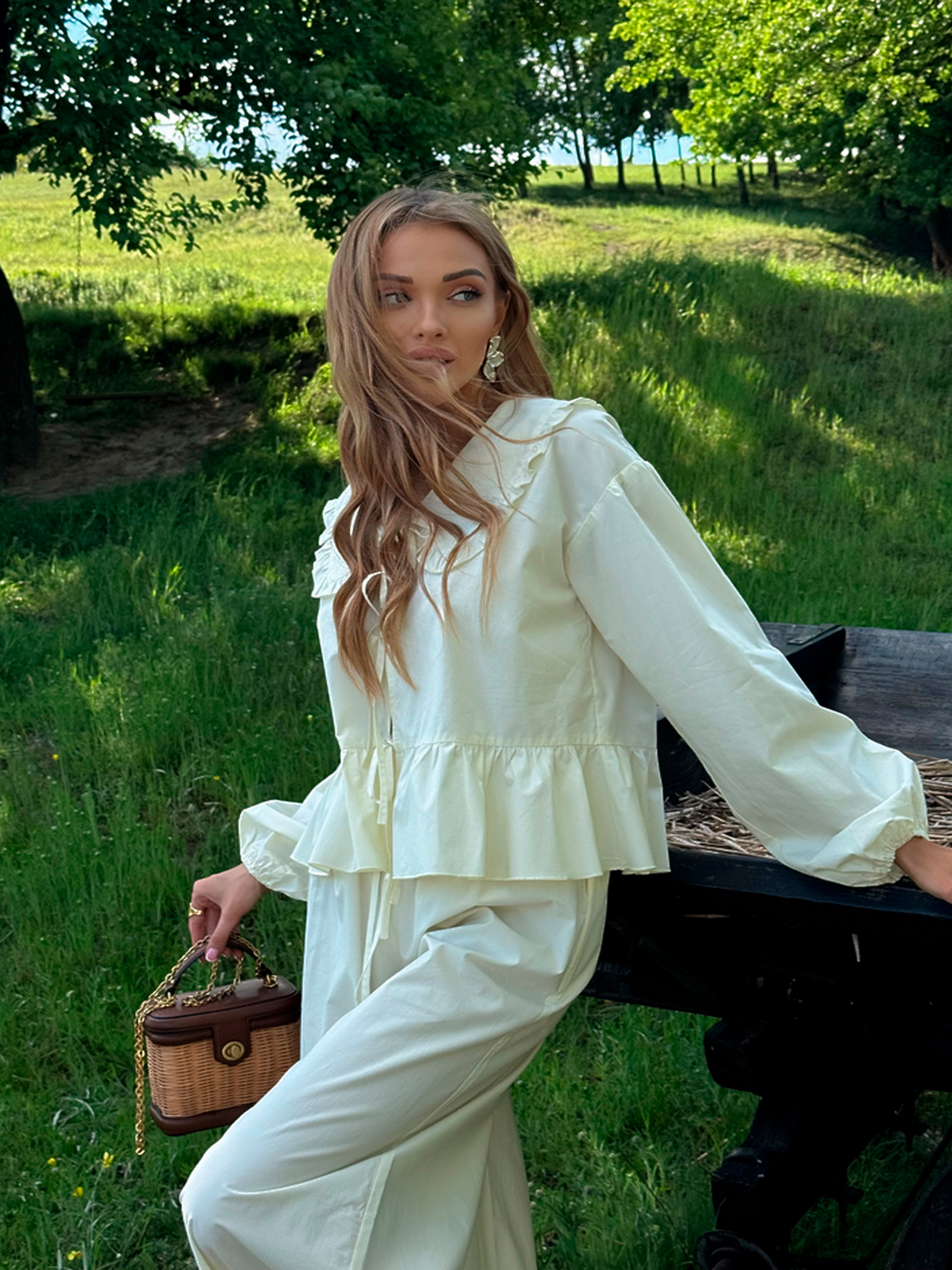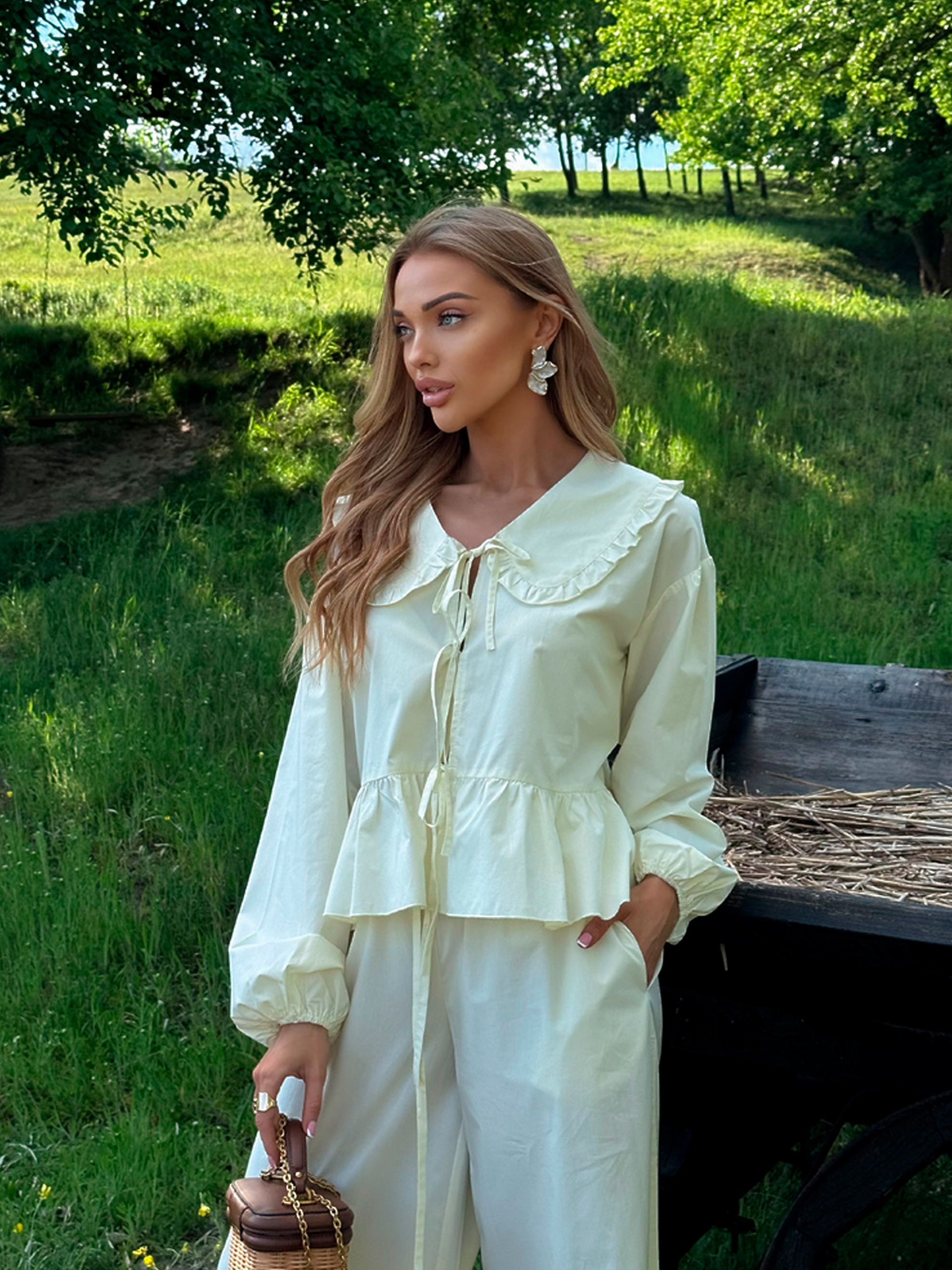 Характеристики: Тканина: 100% бавовна Розмір: one size (XS/M) Колір: молоко, чорний, масло, оливка, рожевий Особливості та характеристики: Вільний крій забезпечує свободу рухів і комфорт протягом усього дня; Легка та дихаюча бавовна ідеальна для спекотного літнього сезону; Блуза має класичний комірець і простий силует, що легко поєднується з брюками; Брюки з еластичною талією забезпечують зручність і не обмежують рухів; Костюм універсальний, легко комбінується з іншими елементами гардеробу; М’які натуральні матеріали підходять для чутливої шкіри. Догляд: ручне або делікатне машинне прання при температурі до 30 °C; прасування при середній температурі; відбілювання та хімічна чистка заборонені; сушити в розправленому вигляді, уникати прямого сонця. Літній костюм ASEL поєднує комфорт, елегантність і універсальність, роблячи його ідеальним варіантом для щоденного носіння та відпочинку. Зручний та стильний костюм ASEL стане універсальним вибором для дому, прогулянок або повсякденних образів. М’яка бавовняна тканина, вільний крій і елегантний комірець створюють комфорт та стиль одночасно.