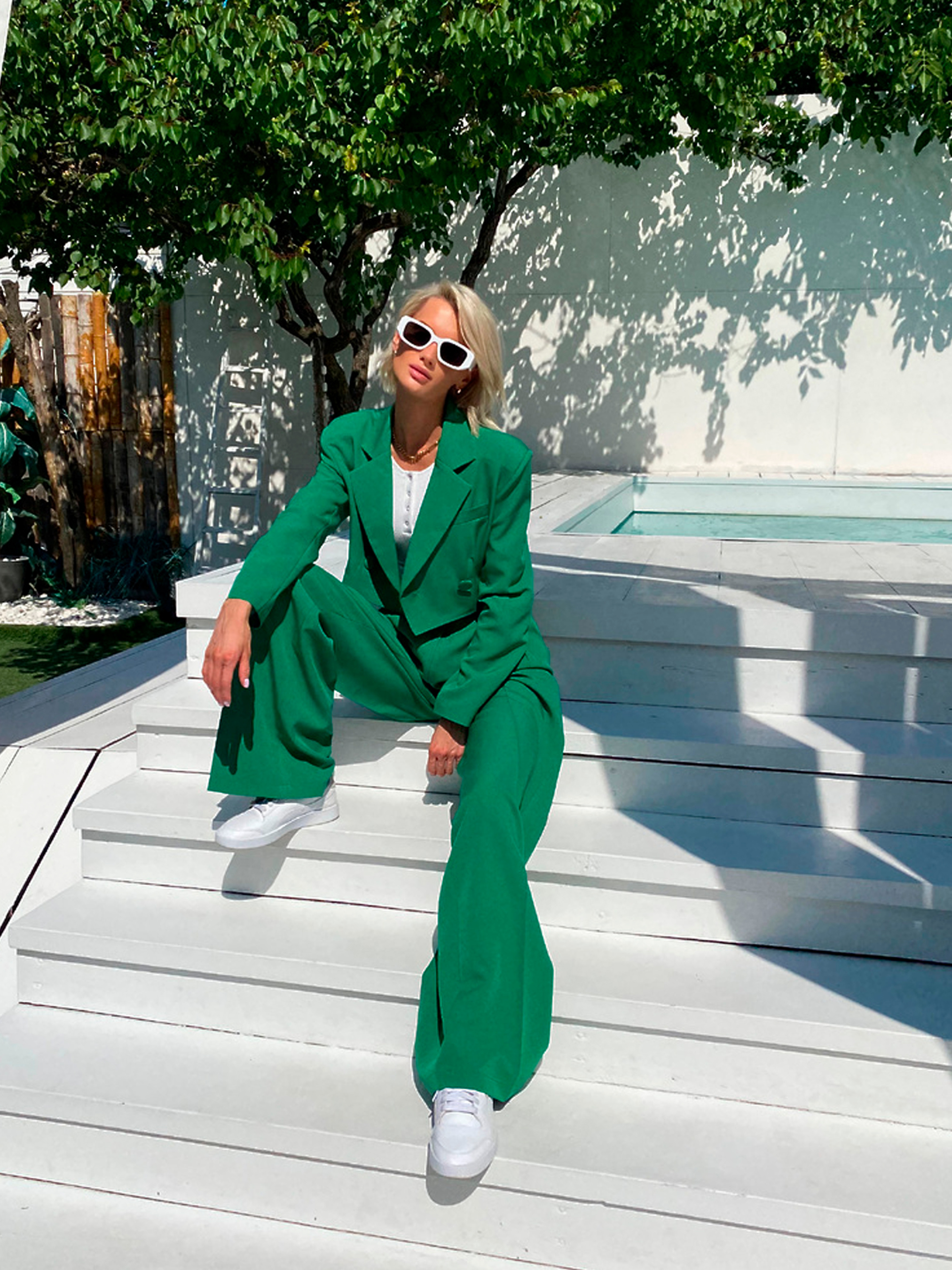 Характеристики: Склад: костюмка з підкладкою з бавовни Фасон: двобортний кроп-жакет + брюки палаццо Розмір: S, M Кольори: беж, білий, блакитний, кемел, лаванда, ментол, трава, фуксія, чорний Догляд: Ручне або машинне прання у делікатному режимі (до 30 °C) Прасування при середній температурі (до 150 °C) Не відбілювати Хімічна чистка дозволена Сушити на плечиках у розправленому вигляді Стильний та ефектний костюм MELANIA — вибір для впевнених жінок, які цінують елегантність у поєднанні з сучасними тенденціями. Комплект складається з укороченого двобортного жакета та широких брюк-палаццо, що разом створюють вишуканий, проте розслаблений силует. Кроп-жакет виконано в люксовому стилі — із чіткою лінією плеча, двома рядами ґудзиків та підкладкою з натуральної бавовни. Брюки мають високу посадку, пояс зі шльовками й елегантно драпіруються від стегон донизу, подовжуючи ноги. Костюм чудово поєднується як із класичними човниками чи босоніжками, так і з кедами — для більш кежуального образу. Ідеальний вибір для офісу, ділових зустрічей або урочистих подій.