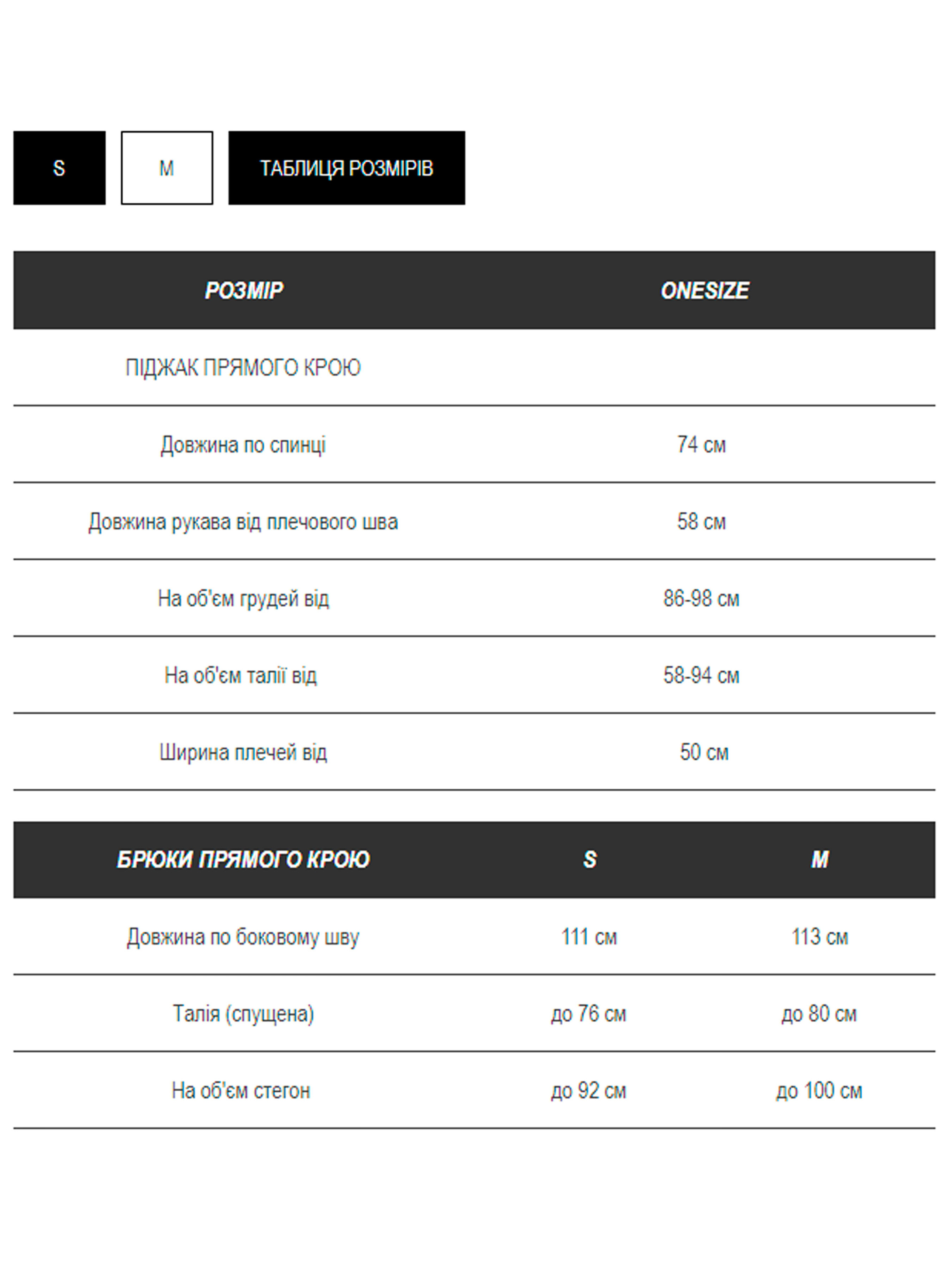 Характеристики: Крої: піджак – прямий, з чоловічого плеча; брюки – прямого крою, трохи занижена посадка Пояс: шнурок у комплекті Тканина: преміальна костюмка Підкладка: нейлон Розмір: S, M Колір: бежевий, бургунді, молочний, сірий, шоколадний Догляд: Ручне прання або машинне прання “делікатне” при температурі до 30 °C Прасування при середній температурі (з відпарюванням) Хімчистка заборонена Відбілювання заборонене Особливості та характеристики: Піджак класичного крою підкреслює жіночий силует, забезпечує комфорт і свободу рухів; Брюки прямого крою з трохи заниженою посадкою легко поєднуються з будь-яким верхом і взуттям, створюючи елегантний образ; Пояс-шнурок додає стильного акценту та можливість регулювання талії; Преміальна костюмка забезпечує гарну посадку, м’якість тканини та довговічність виробу; Підкладка з нейлону робить піджак приємним до тіла та полегшує рухи; Різноманіття кольорів дозволяє обрати оптимальний варіант під будь-який гардероб і настрій; Класичний костюм BECKHAM ідеально підходить як для офісу, так і для урочистих заходів, поєднуючи стиль, комфорт та елегантність.