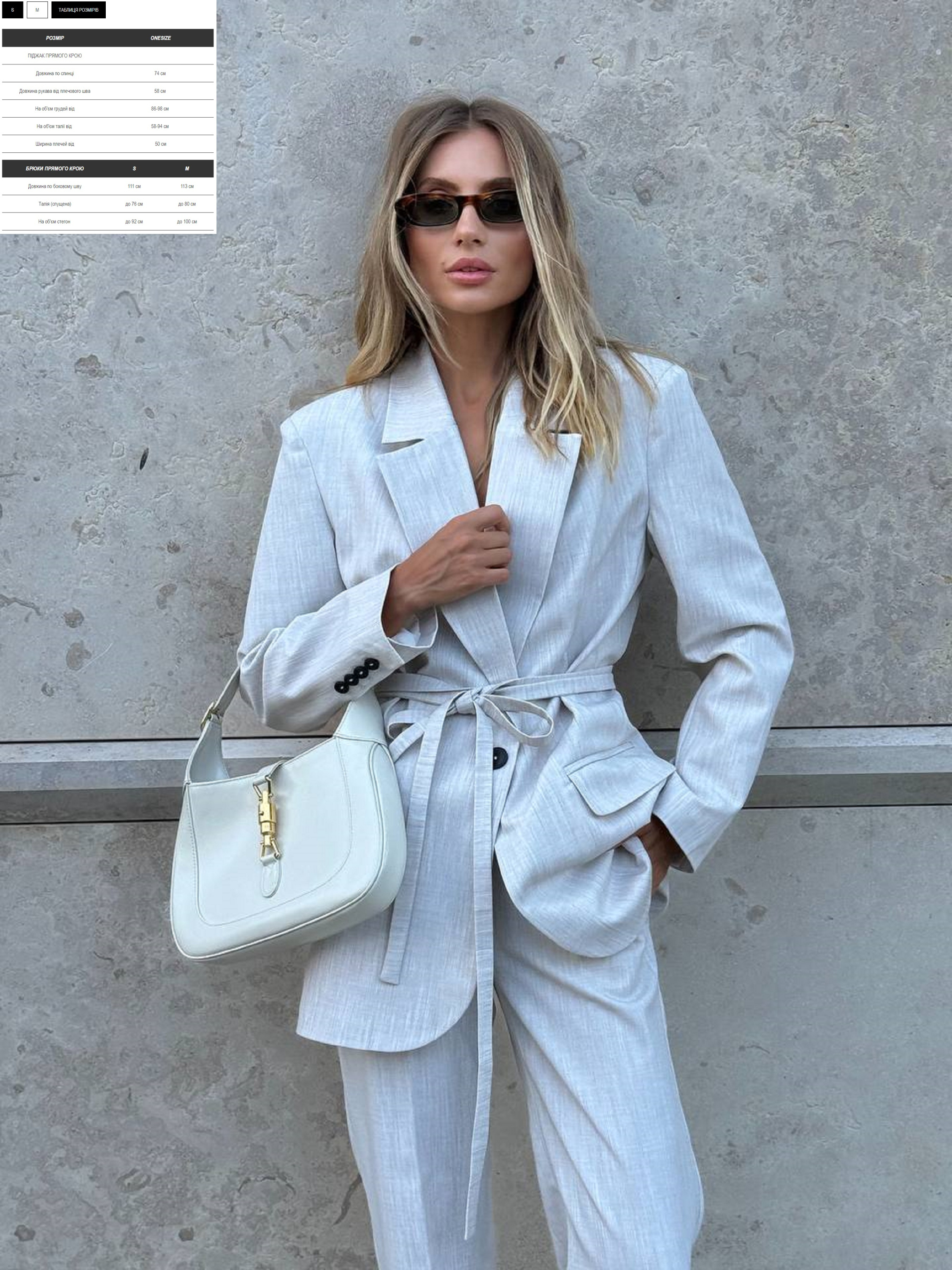 Характеристики: Крої: піджак – прямий, з чоловічого плеча; брюки – прямого крою, трохи занижена посадка Пояс: шнурок у комплекті Тканина: преміальна костюмка Підкладка: нейлон Розмір: S, M Колір: бежевий, бургунді, молочний, сірий, шоколадний Догляд: Ручне прання або машинне прання “делікатне” при температурі до 30 °C Прасування при середній температурі (з відпарюванням) Хімчистка заборонена Відбілювання заборонене Особливості та характеристики: Піджак класичного крою підкреслює жіночий силует, забезпечує комфорт і свободу рухів; Брюки прямого крою з трохи заниженою посадкою легко поєднуються з будь-яким верхом і взуттям, створюючи елегантний образ; Пояс-шнурок додає стильного акценту та можливість регулювання талії; Преміальна костюмка забезпечує гарну посадку, м’якість тканини та довговічність виробу; Підкладка з нейлону робить піджак приємним до тіла та полегшує рухи; Різноманіття кольорів дозволяє обрати оптимальний варіант під будь-який гардероб і настрій; Класичний костюм BECKHAM ідеально підходить як для офісу, так і для урочистих заходів, поєднуючи стиль, комфорт та елегантність.
