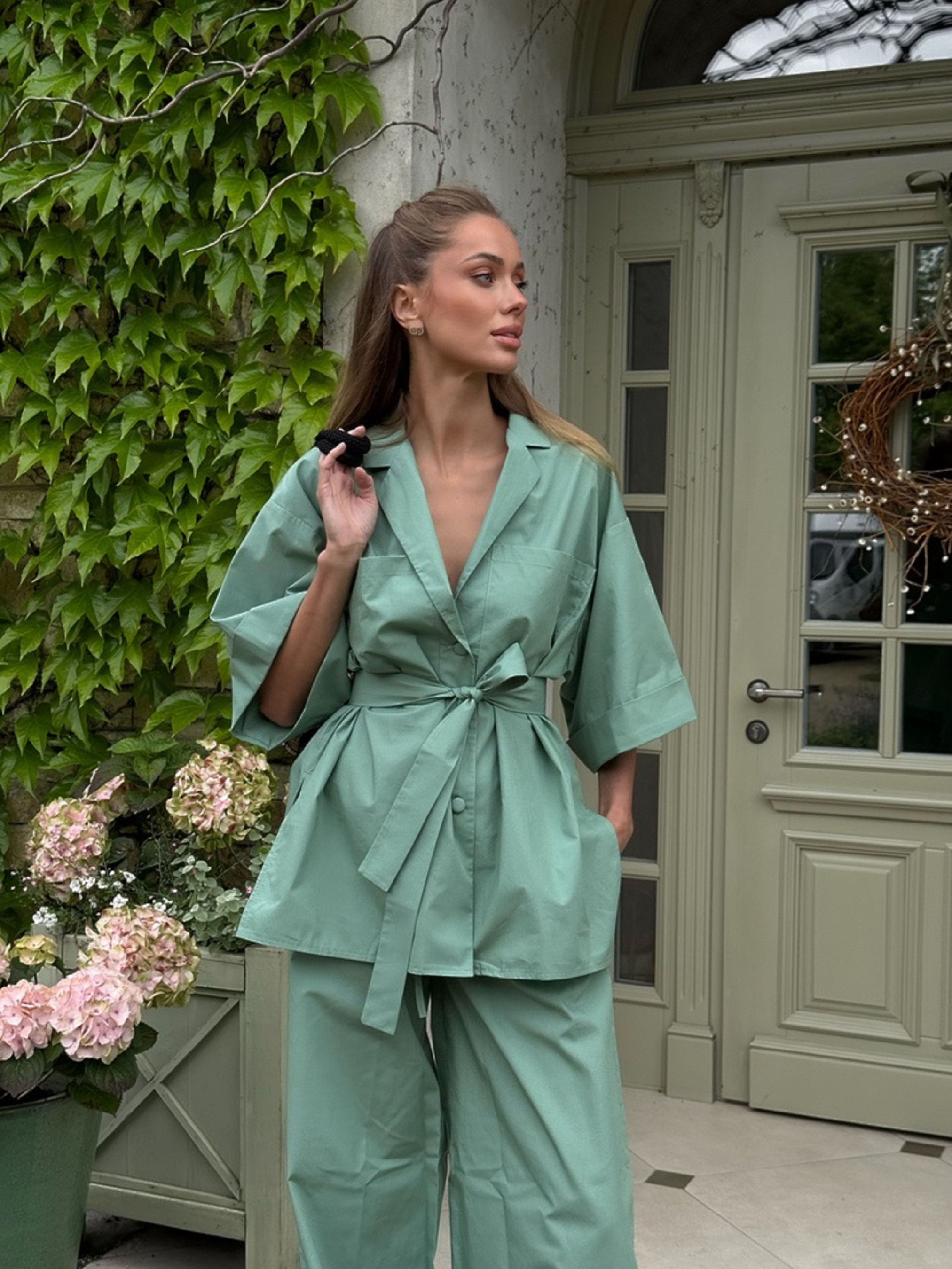 Легкий, дихаючий та надзвичайно зручний — жіночий костюм KOMFORT створений для максимального комфорту щодня. Складається з вільної сорочки та прямих брюк, що разом утворюють універсальний образ для прогулянок, відпочинку чи домашнього затишку. Оливковий відтінок надає комплекту спокійного й стильного вигляду. Характеристики: Комплект: сорочка + брюки Колір: оливковий Крій: вільний, не обмежує рухів Матеріал: 100% бавовна — м’яка, натуральна та приємна до тіла Сорочка: прямий силует, зручна посадка Штани: на комфортній посадці, з еластичною резинкою Переваги: Дихає та не парить завдяки натуральній тканині Підходить для дому, відпочинку, прогулянок і щоденного стилю Лаконічний дизайн, який завжди виглядає акуратно Як носити: Поєднуйте костюм із кедами, сланцями чи кросівками. За бажанням можна додати топ або майку під сорочку. Легко комбінується з базовими аксесуарами та сумками в casual-стилі.
