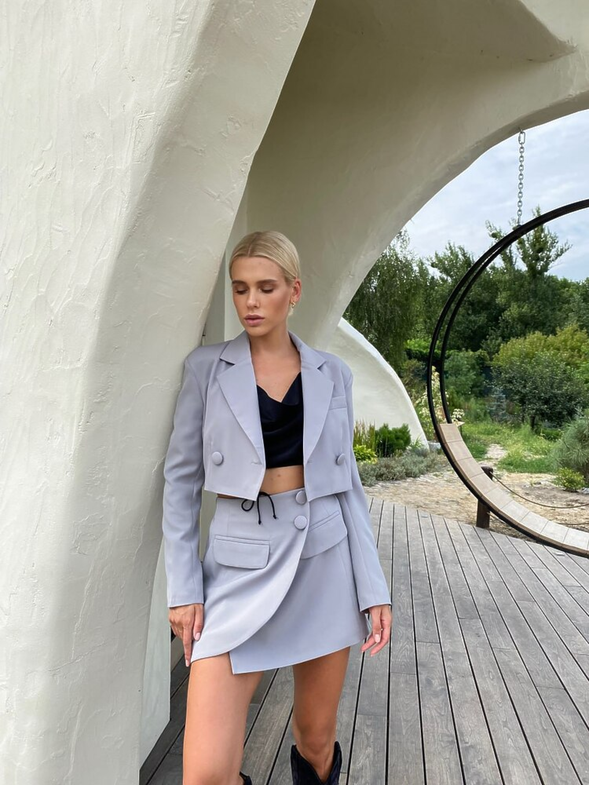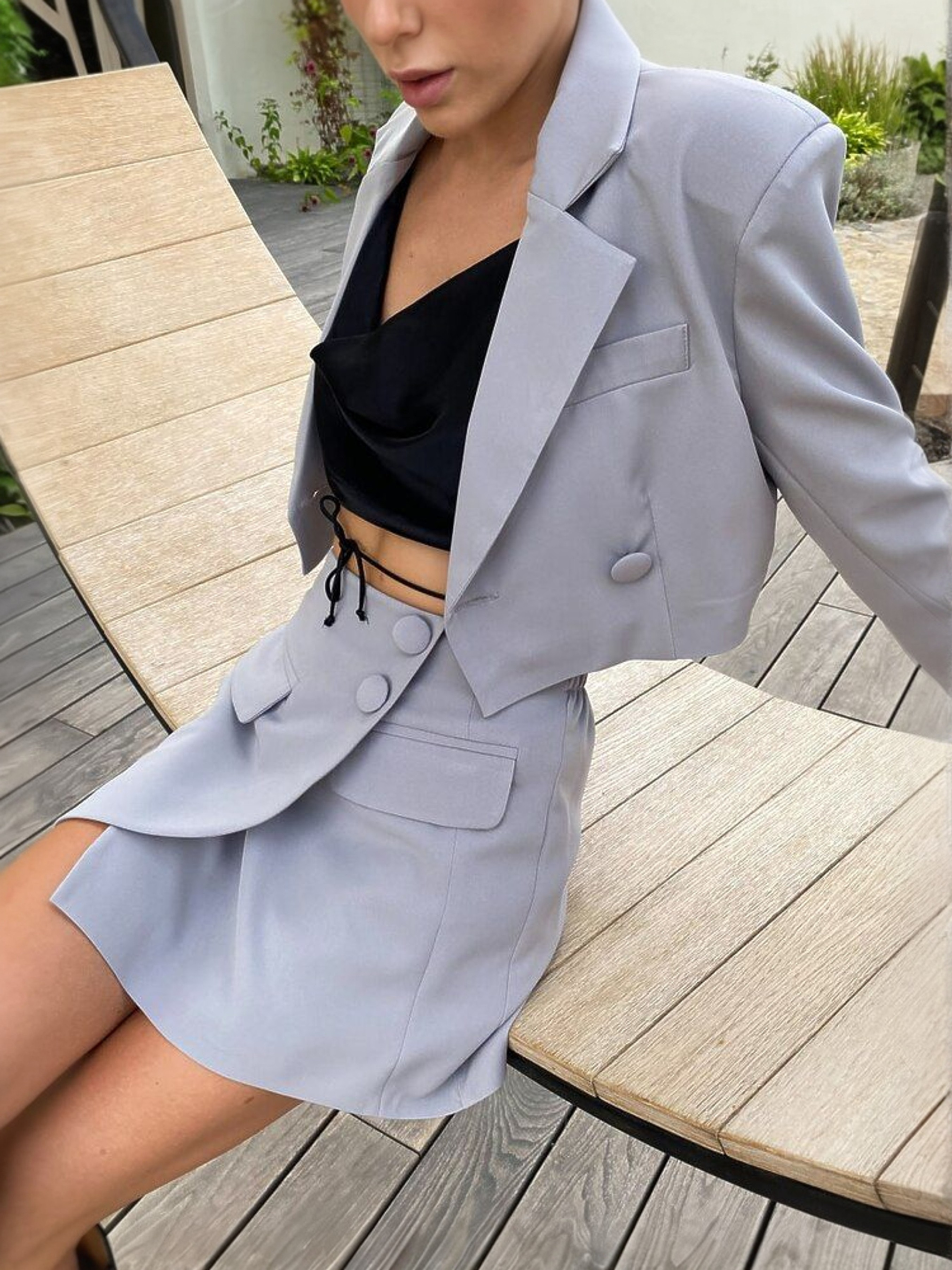 Стильний, ефектний та створений для яскравих образів жіночий костюм Katrin — у люксовому виконанні підкреслює жіночність, впевненість і сучасний стиль. Модель складається з кроп-піджака та спідниці, які ідеально доповнюють одне одного. Кроп-жакет виконаний у двобортному стилі, що додає образу елегантності та модного акценту. Він вдало підкреслює талію та створює гармонійний силует у поєднанні зі спідницею. Спідниця має імітацію запаху та акуратний невеликий розріз, який дарує легкість рухів та додає жіночності. Характеристики Склад набору: кроп-жакет + спідниця Стиль: сучасний, елегантний Матеріал: костюмна тканина Підкладка: бавовна Крій піджака: двобортний, укорочений Крій спідниці: приталена, з імітацією запаху та невеликим розрізом Розміри: S, M Кольори: кемел, лаванда, ментол, сірий Переваги Люксове виконання та бездоганний силует Актуальна довжина кроп-жакета Зручна та стильна спідниця з елегантним розрізом Комфортна підкладка з натуральної бавовни Трендові, насичені кольори Костюм зроблений із якісної костюмної тканини, приємної на дотик, з бавовняною підкладкою для максимального комфорту. Завдяки продумному крою костюм ідеально підходить як для свят, так і для стильних повсякденних виходів.