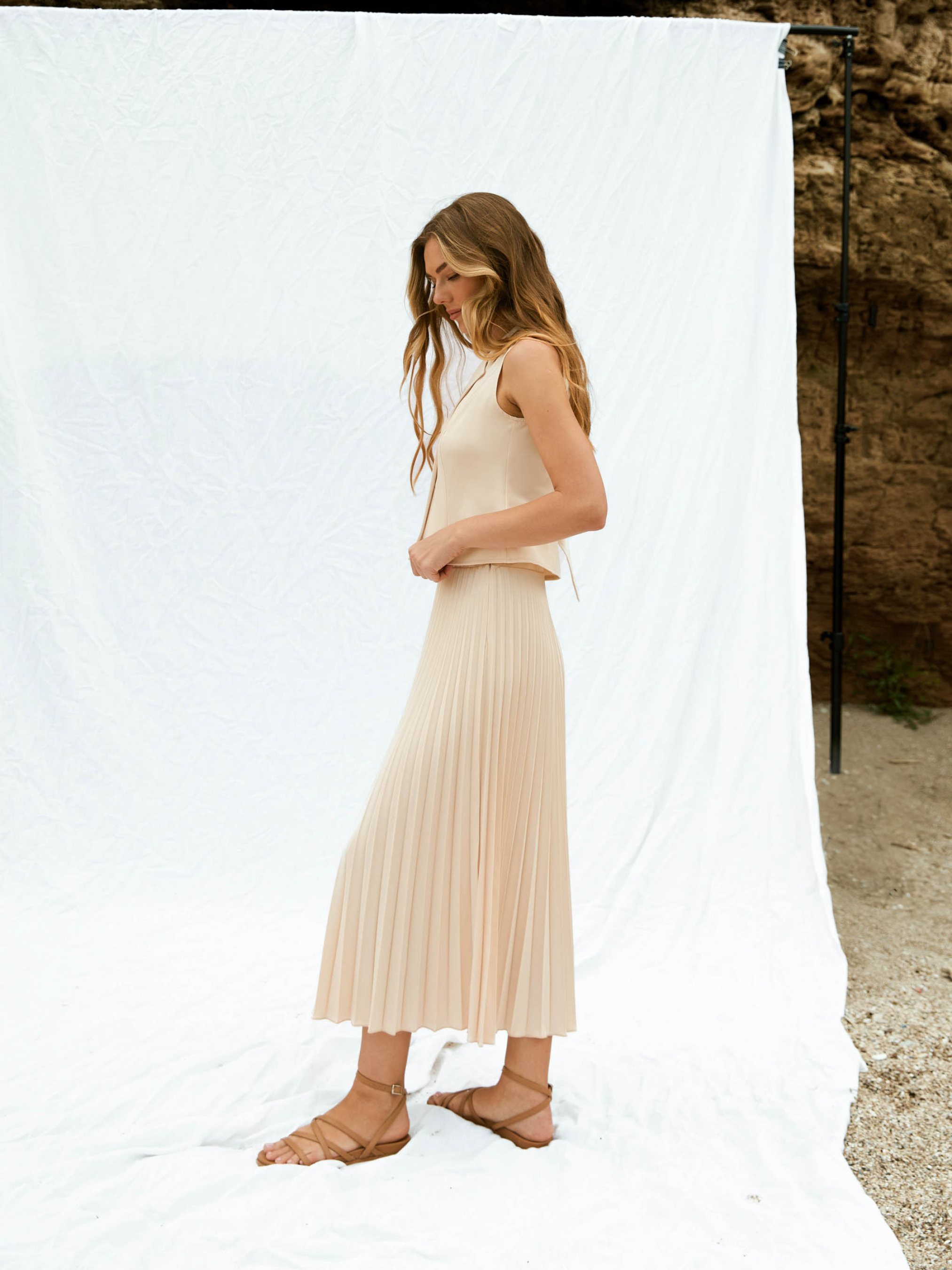 Женский костюм от Seventeen — воплощение легкости и стиля Добавь в свой гардероб изысканности и комфорта — выбирай костюм, который подчеркнёт твою женственность уже сегодня! Фасон Костюм состоит из жилета и юбки, которые идеально сочетаются для создания элегантного образа. Жилет с полуприлегающим силуэтом, отложным воротником и рельефными вытачками бережно подчёркивает фигуру. Юбка с плиссировкой придаёт лёгкость движениям и добавляет динамики. Затяжка на спинке жилета позволяет регулировать посадку для максимального комфорта. Материал Высококачественная костюмная ткань с добавлением вискозы и полиэстера обеспечивает лёгкость, воздухопроницаемость и долговечность изделия. Вискоза придаёт мягкость и естественное ощущение комфорта на коже, а полиэстер поддерживает форму и стойкость цвета даже после многократных стирок. Такой материал не мнётся, не теряет идеальный вид, даря ощущение свежести даже в жаркий день. Размерная сетка S–M: обхват груди 84–88 см, талии 68–72 см, бёдер 92–96 см L–XL: обхват груди 92–96 см, талии 76–81 см, бёдер 100–105 см XXL–3XL: обхват груди 100–105 см, талии 86–91 см, бёдер 110–115 см Длина жилета: S–M: 48 см L–XL: 51 см XXL–3XL: 53 см Длина юбки: S–M: 80 см L–XL: 80 см XXL–3XL: 78 см Уход Деликатная ручная стирка при температуре до 30°C Не использовать отбеливатели Гладить при средней температуре с изнаночной стороны Сушить в тени, разложив изделие Избегать длительного замачивания