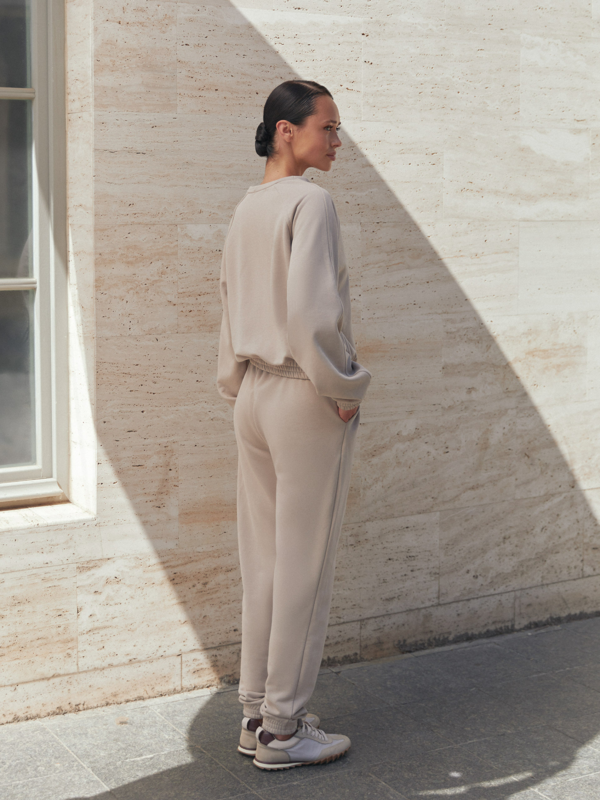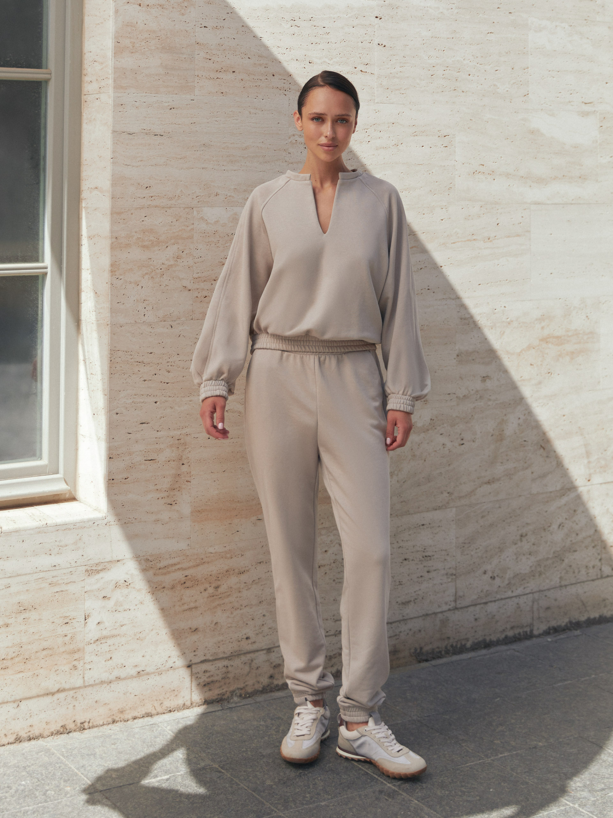 Фасон Женский спортивный костюм состоит из кофты свободного прямого кроя и брюк. Кофта со стойкой и небольшим разрезом спереди, с длинным рукавом реглан и удобными карманами. Брюки прямые, с эластичным поясом, комфортной средней посадкой и базовой длиной. Модель выполнена в спортивно-кэжуальном стиле, подходит для повседневной носки в демисезонный период. Материал Костюм изготовлен из трикотажа тринитка пенье. Ткань плотная, эластичная, хорошо держит форму, приятная к телу и позволяет коже дышать. Уход Рекомендуется ручная или деликатная стирка при температуре до 30 °C. Не использовать отбеливатели, сушить в расправленном виде, гладить с изнаночной стороны на низкой температуре. Длина изделия и рукава Кофта: S–M — 52 см, L–XL — 52 см, 2XL–3XL — 53 см Рукав: S–M — 72 см, L–XL — 74 см, 2XL–3XL — 75 см Брюки: S–M — 103 см, L–XL — 104 см, 2XL–3XL — 105 см Размерная сетка S–M: обхват груди 84–88 см, талии 68–72 см, бёдер 92–96 см L–XL: обхват груди 92–96 см, талии 76–81 см, бёдер 100–105 см 2XL–3XL: обхват груди 100–105 см, талии 86–91 см, бёдер 110–115 см