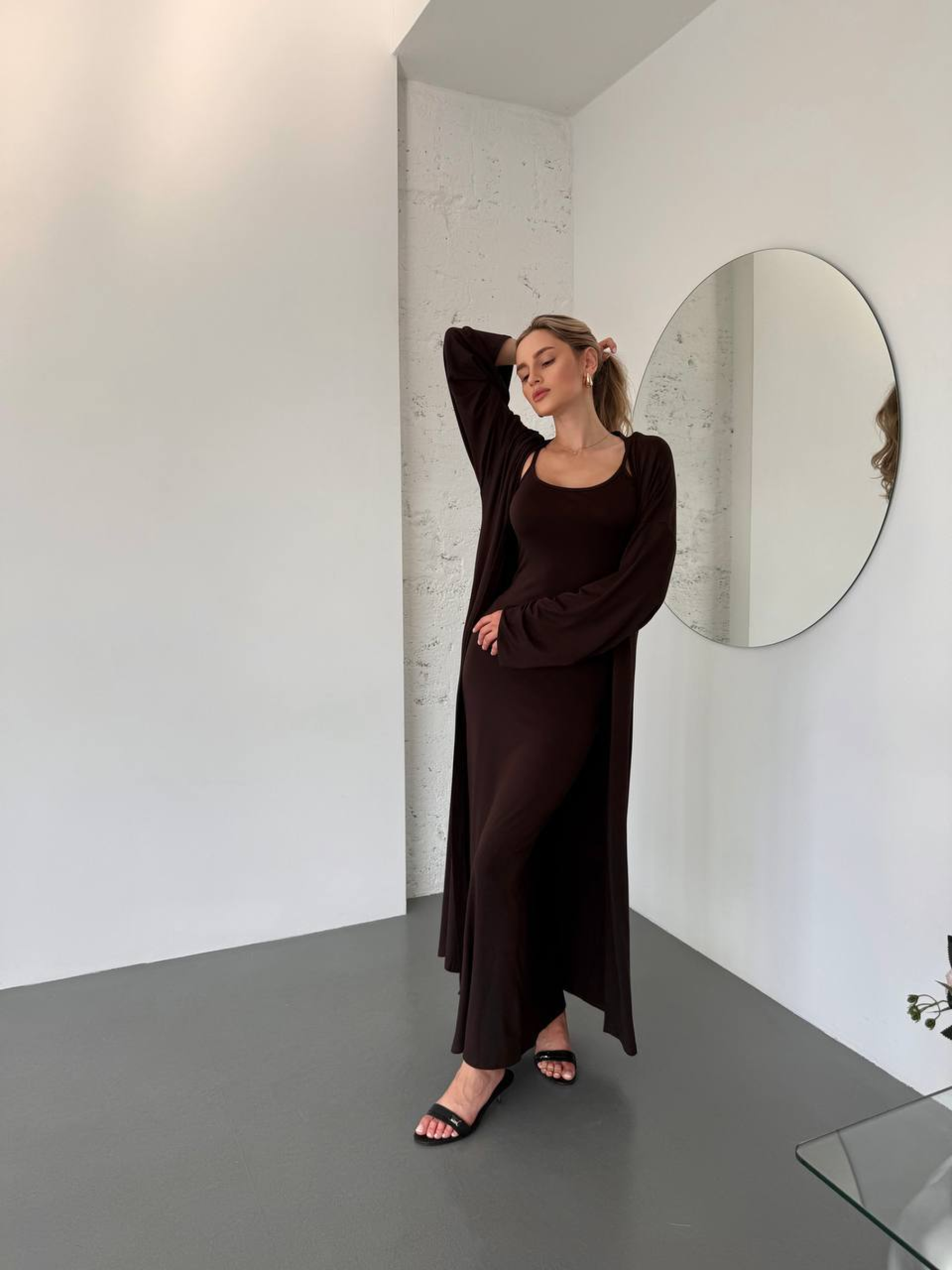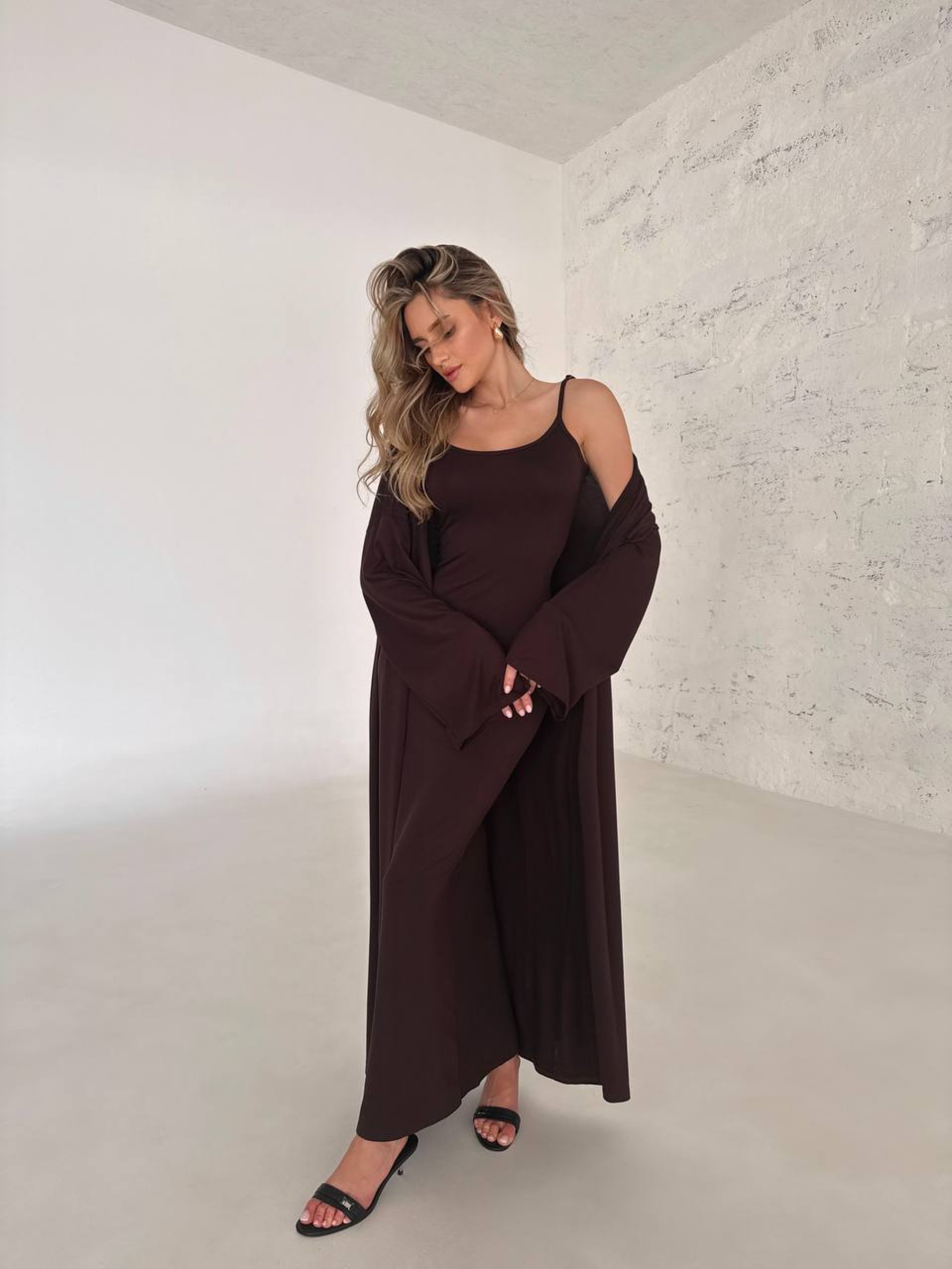 Жіночий літній костюм «кардиган + сукня на бретельках» — це сонячний та неймовірно комфортний комплект, який стане вашим улюбленим образом для теплих днів та прохолодних вечорів. Яскравий жовтий колір миттєво додає енергії та підкреслює літню засмагу. Костюм-двійка розроблений для жінок, які цінують універсальність: ви можете носити елегантну сукню окремо або доповнювати її легким кардиганом для створення багатошарового стильного луку. Матеріал: Невагомість віскози та еластичність лайкри Високоякісний склад (92% віскоза, 8% лайкра): Віскоза, яку часто називають «штучним шовком», виготовляється з натуральної сировини. Вона надзвичайно м'яка, дихаюча та гіпоалергенна. Додавання лайкри забезпечує ідеальну посадку по фігурі, запобігає деформації виробу та гарантує свободу рухів. Терморегуляція: Тканина дарує приємне відчуття прохолоди навіть у спеку, швидко вбирає вологу та миттєво сохне. Гладка фактура: Матеріал має делікатний благородний відблиск і дуже приємний на дотик, що робить костюм ідеальним для щоденного носіння. Особливості дизайну та функціональність Сукня на бретелях: Лаконічна модель, яка вигідно підкреслює лінію плечей та ключиць. Завдяки продуманому крою, вона м'яко облягає тіло, створюючи жіночний силует. Легкий кардиган: Кардиган з довгим рукавом без застібок — незамінна річ для вечірніх прогулянок або перебування в приміщеннях з кондиціонером. Він візуально витягує фігуру та додає образу завершеності. Ідеальна посадка: Костюм розроблений з урахуванням анатомії тіла, що забезпечує комфорт протягом усього дня без відчуття скутості. Мінімалізм: Однотонне виконання без зайвого декору дозволяє легко експериментувати з взуттям — від спортивних кедів до вишуканих босоніжок. Характеристики: Комплектація: Сукня на бретелях + кардиган. Матеріал: Віскоза. Склад: 92% Віскоза, 8% Лайкра. Колір: Жовтий, чорний. Рукав (кардиган): Довгий. Стиль: Повсякденний (Casual). Сезон: Літо. Виробник: Україна. Рекомендації з догляду: Віскоза потребує дбайливого ставлення: Прати при температурі не вище 30°C у режимі делікатного прання. Використовуйте м'які гелі для прання, щоб зберегти насиченість жовтого кольору. Сушити у розправленому вигляді на горизонтальній поверхні, щоб уникнути розтягування волокон. Прасувати з вивороту при низькій температурі або використовувати відпарювач на низькій потужності.