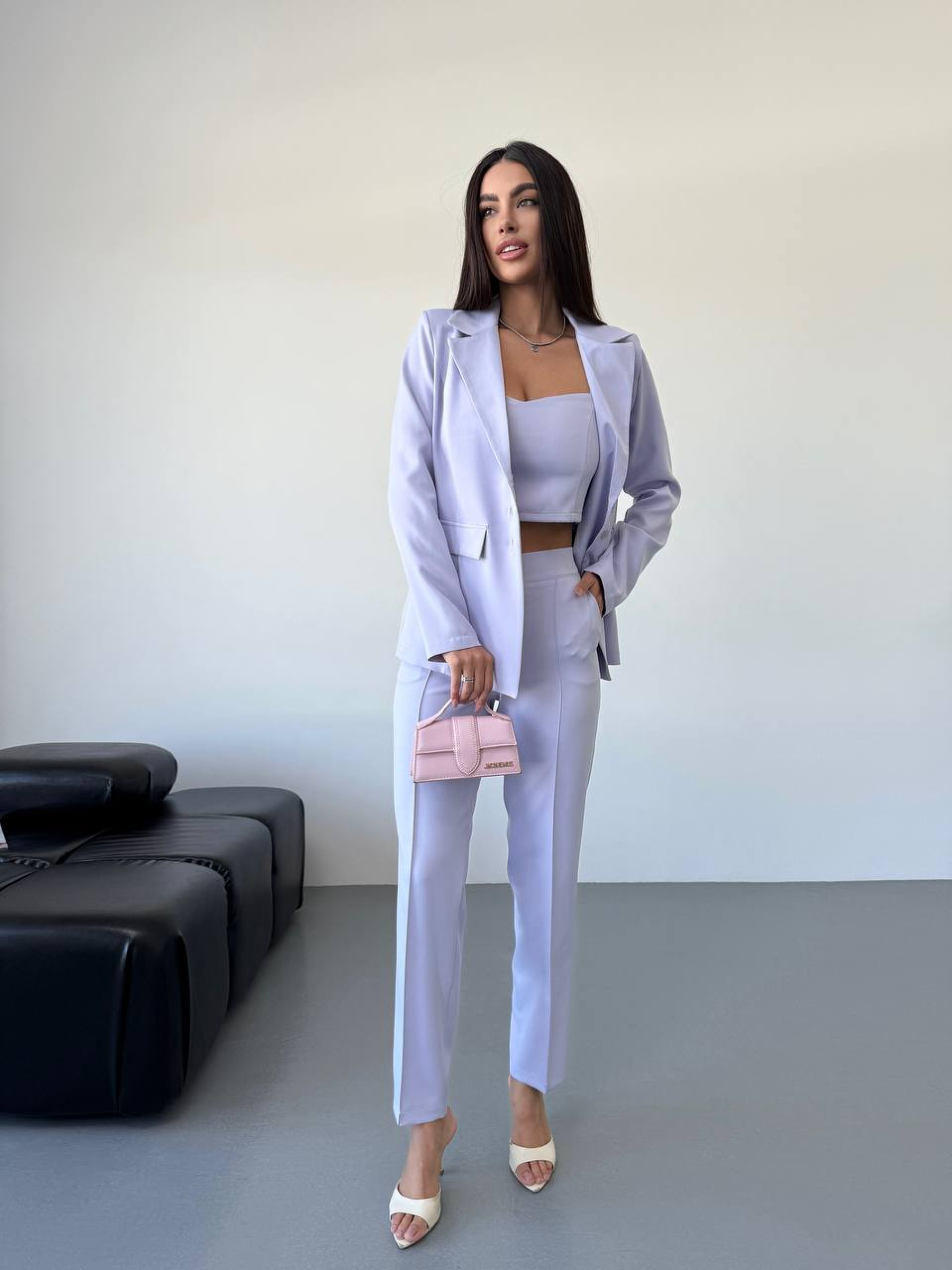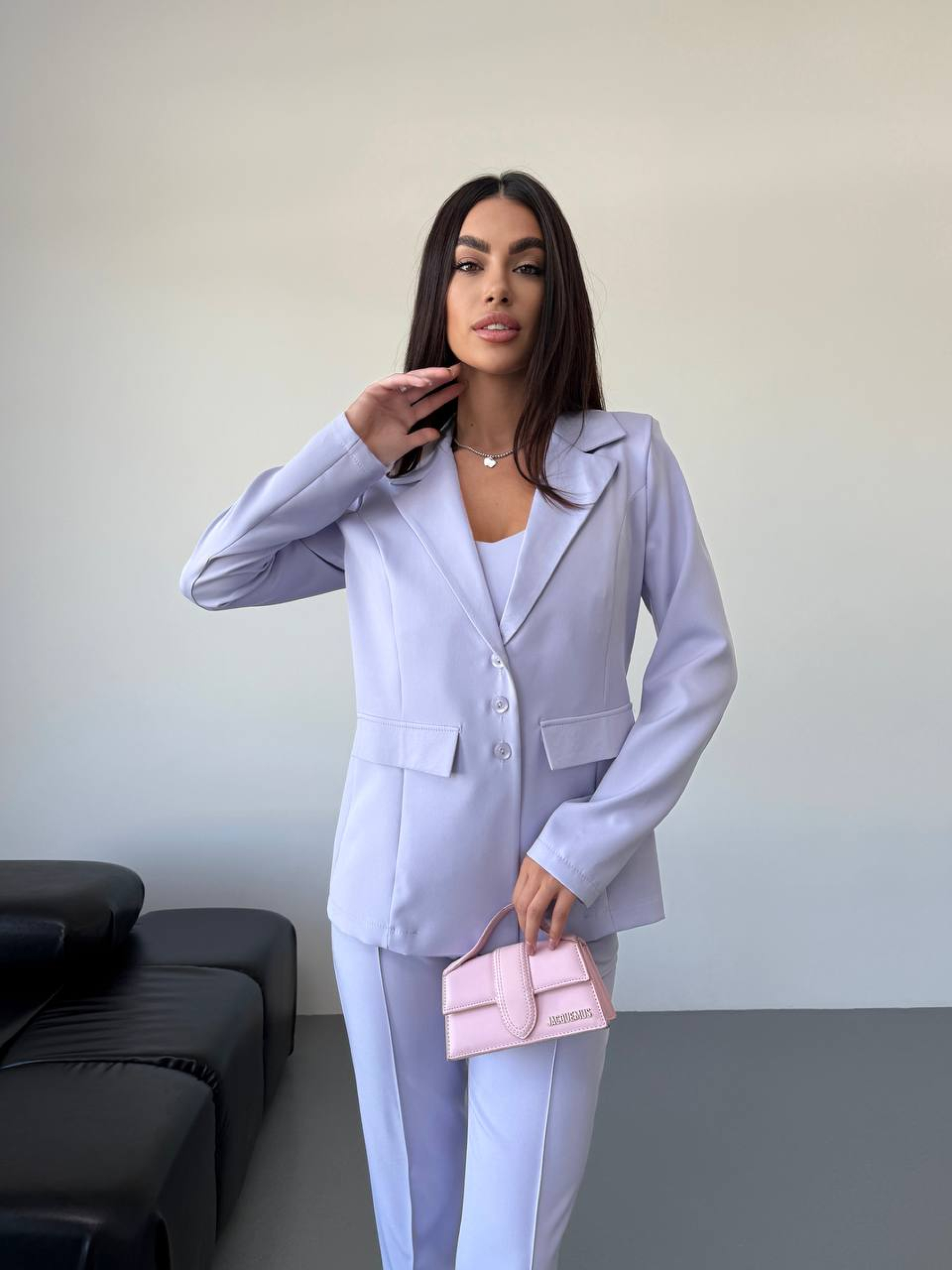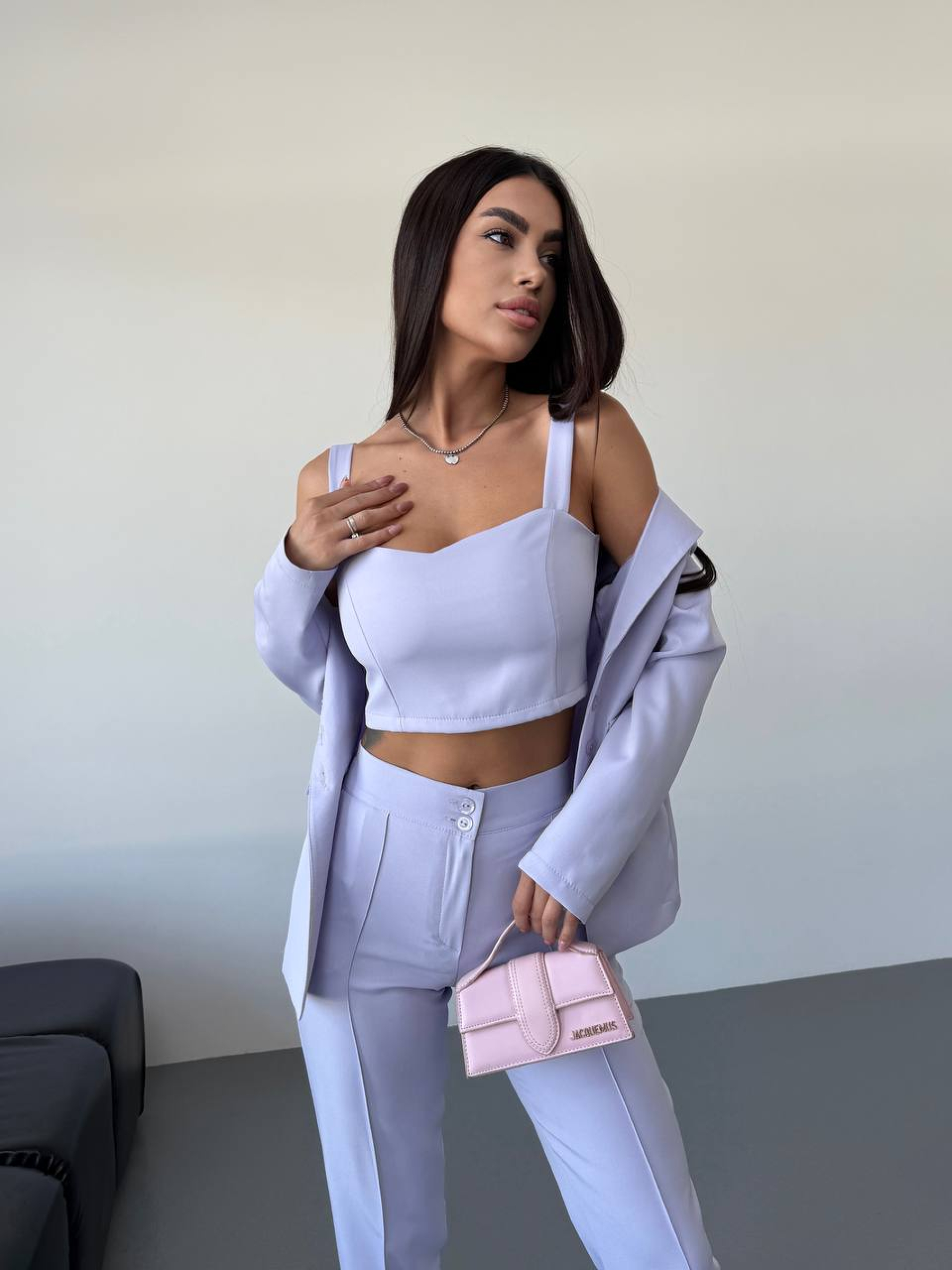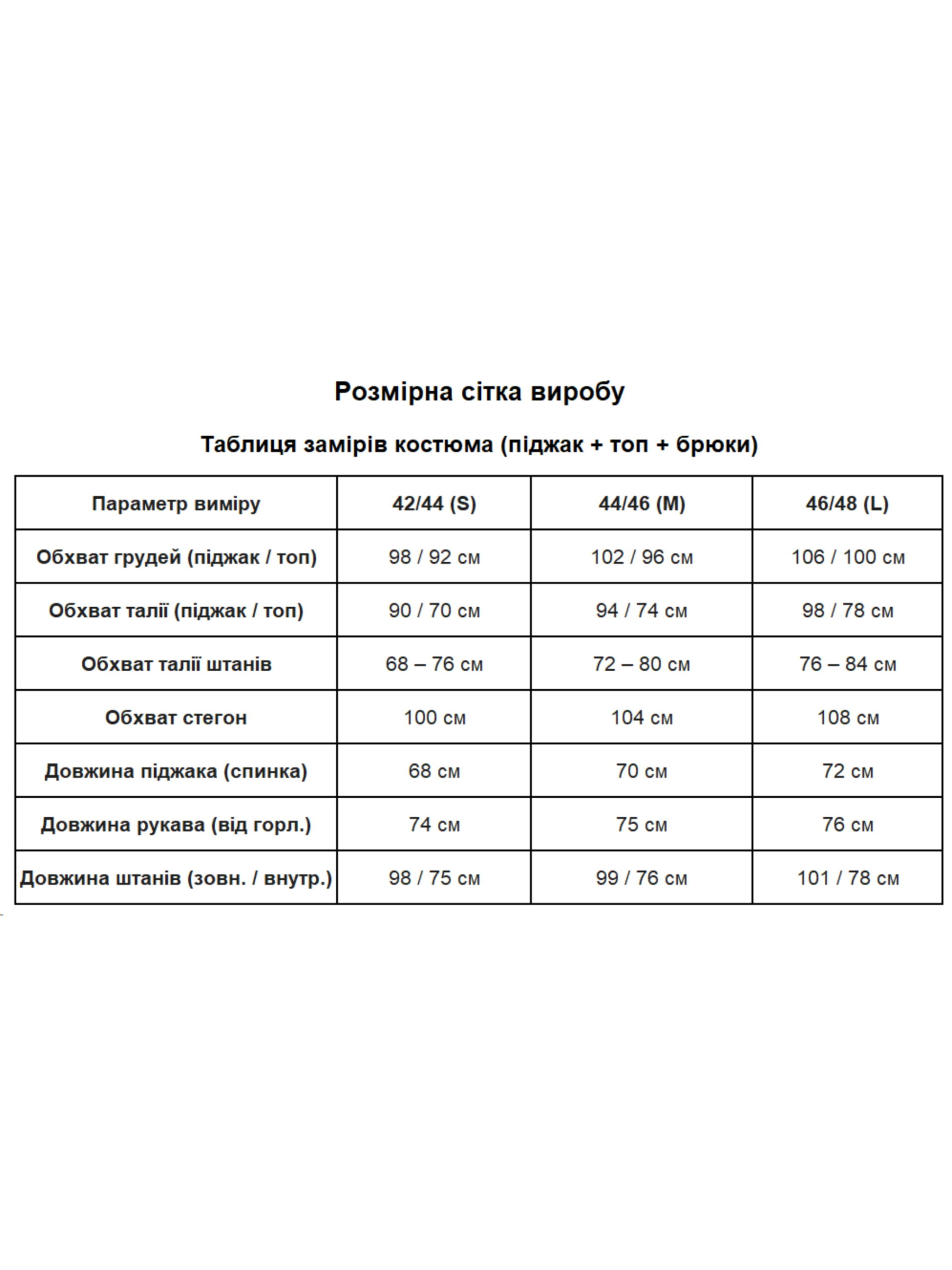 Жіночий класичний костюм-трійка (піджак + топ + брюки) у витончених кольорах — це справжнє втілення елегантності та сучасного стилю. Такий комплект стане ідеальним рішенням для жінок, які цінують універсальність: ви отримуєте повноцінний образ, де кожна деталь ідеально доповнює одна одну. Чому костюм трійка — це вигідна інвестиція у ваш гардероб? Готовий образ: Наявність топа в комплекті позбавляє вас необхідності підбирати базу під піджак. Ви отримуєте завершений та продуманий аутфіт. Класичний піджак: Модель із довгим рукавом та застібкою на ґудзики виглядає стримано та статусно. Його можна носити як у складі костюма, так і окремо з джинсами. Ідеальні брюки: Класичний крій брюк візуально подовжує силует, а практичні кишені у швах додають моделі функціональності. Характеристики: Комплектація: Піджак + топ + брюки Матеріал: Костюмна тканина (гладка фактура) Склад: 80% Поліестер, 20% Вовна Довжина рукава: Довгий Застібка: На ґудзиках Тип кишень: У шві Стиль костюма: Класичний, діловий Сезон: Всесезон Країна виробник: Україна Рекомендації з догляду: Щоб ваш костюм зберіг первісний вигляд: Прання: Рекомендовано використовувати делікатний режим прання при температурі не вище 30°C або суху хімчистку для збереження структури піджака. Засоби: Використовуйте м'які засоби для кольорових та вовняних тканин. Сушіння: Сушіть піджак на плічках у розправленому вигляді, щоб уникнути деформації. Прасування: Прасуйте через вологу тканину або використовуйте вертикальний відпарювач на середніх температурах. Костюм дозволяє вам виглядати бездоганно як на бізнес-зустрічах, так і на святкових подіях. Костюм розроблено з урахуванням сучасних трендів та анатомії тіла, що гарантує ідеальну посадку та впевненість у кожному русі.