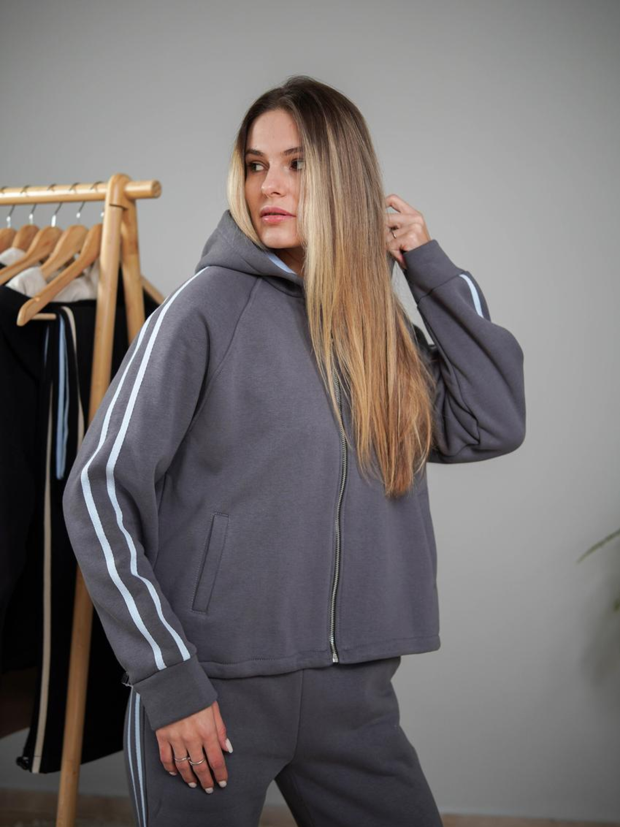 Женский тёплый костюм на молнии с начёсом: худи с капюшоном и прямые брюки с утяжками Стильный и удобный женский костюм с начёсом — отличный выбор для прохладной погоды. Тёплая ткань, продуманный крой и функциональные детали обеспечивают комфорт каждый день. Особенности модели Худи: на молнии, с капюшоном и утяжками по низу для регулировки объёма; удобные карманы. Брюки: прямого кроя, с утяжками по низу штанин для лучшей посадки. Материал: футер с начёсом (3-нитка) — плотный, мягкий и тёплый. Преимущества Сохраняет тепло в холодное время года. Модный и универсальный фасон. Утяжки обеспечивают комфорт и практичность.