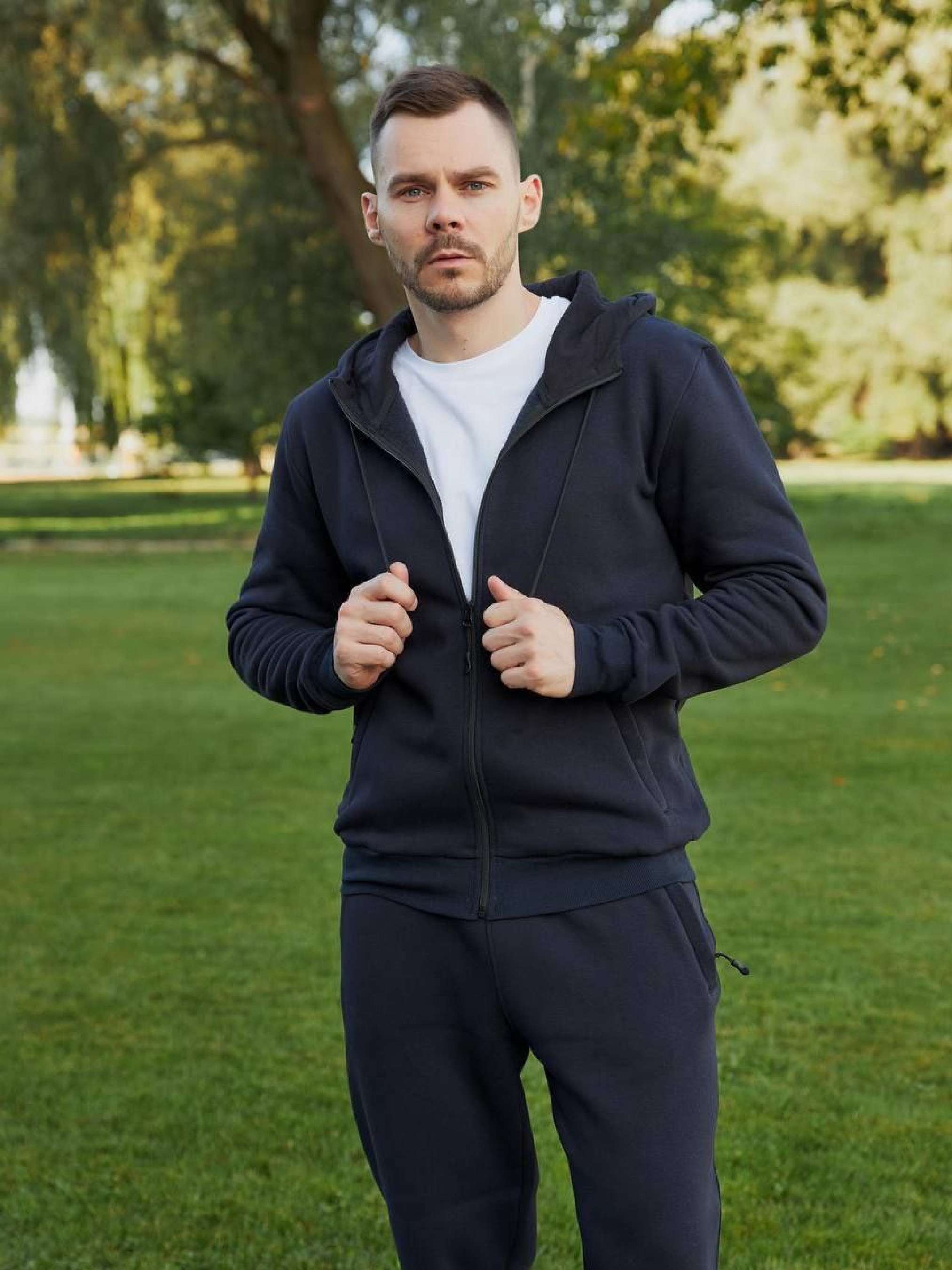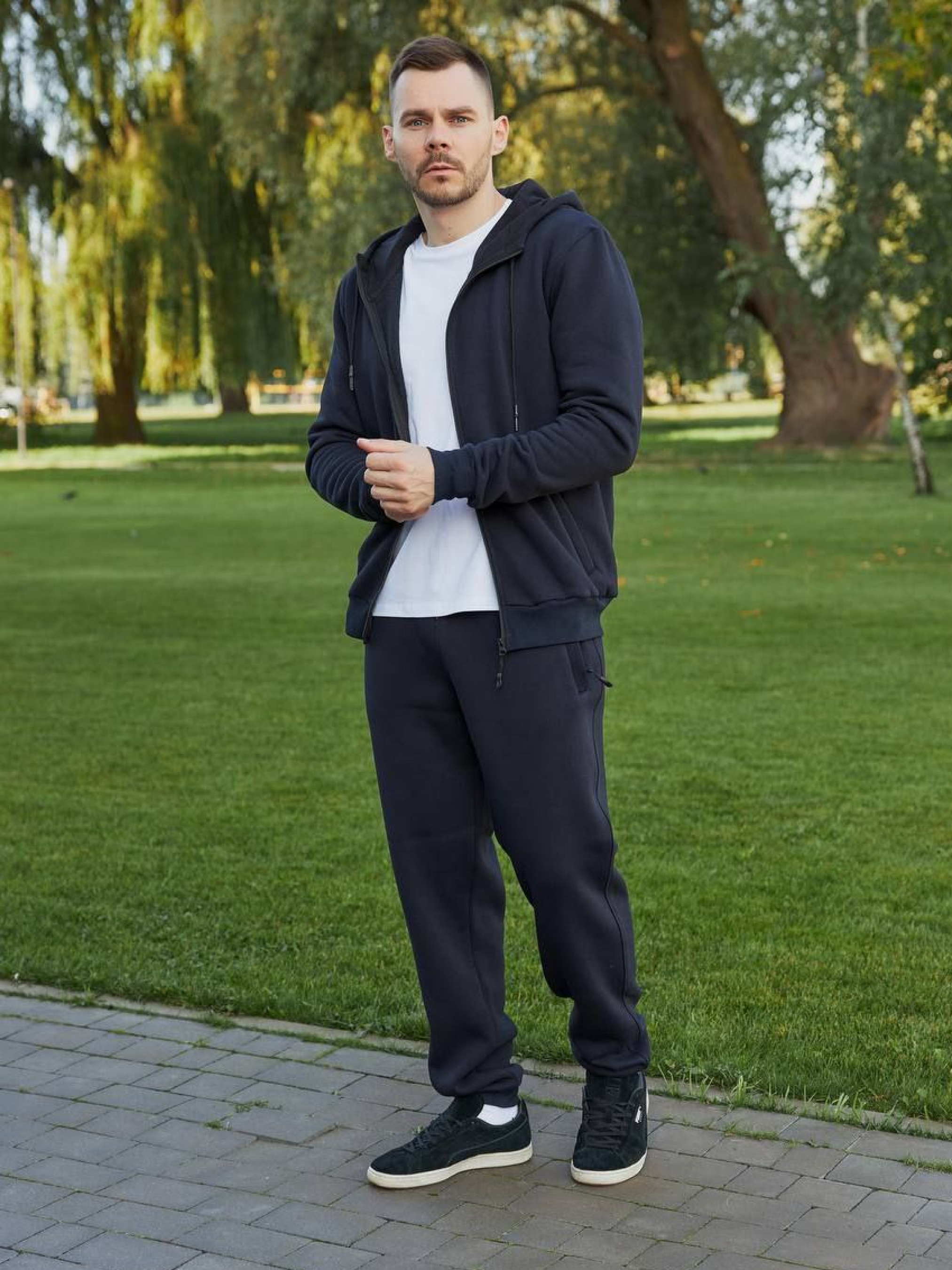 Мужской спортивный костюм с начёсом — тепло, удобство и стиль на каждый день Тёплый мужской костюм с кофтой на молнии и брюками-джоггерами — идеальный выбор для прохладного времени года. Благодаря мягкому начёсу изнутри он отлично сохраняет тепло, а удобный крой не сковывает движений. Такой комплект прекрасно подойдёт для прогулок, активного отдыха, поездок или повседневной носки дома и на улице. Материал: Тринитка с начёсом — плотный, тёплый трикотаж, мягкий к телу; Не деформируется, не скатывается, сохраняет форму после стирки. Кофта: Застёжка-молния по всей длине — удобно регулировать тепло; Капюшон с подкладкой и шнурком — дополнительная защита от холода; Манжеты на рукавах и по низу — плотная посадка без потери комфорта; Боковые карманы для удобства. Брюки: Крой джоггеров — удобные манжеты внизу, комфортная посадка; Пояс на резинке со шнурком — легко регулируется по фигуре; Боковые карманы — для телефона, ключей и других мелочей. Идеально подходит для: Прогулок, поездок, активного отдыха; Повседневной носки дома или на выходные; Холодного сезона — осень, зима, весна.