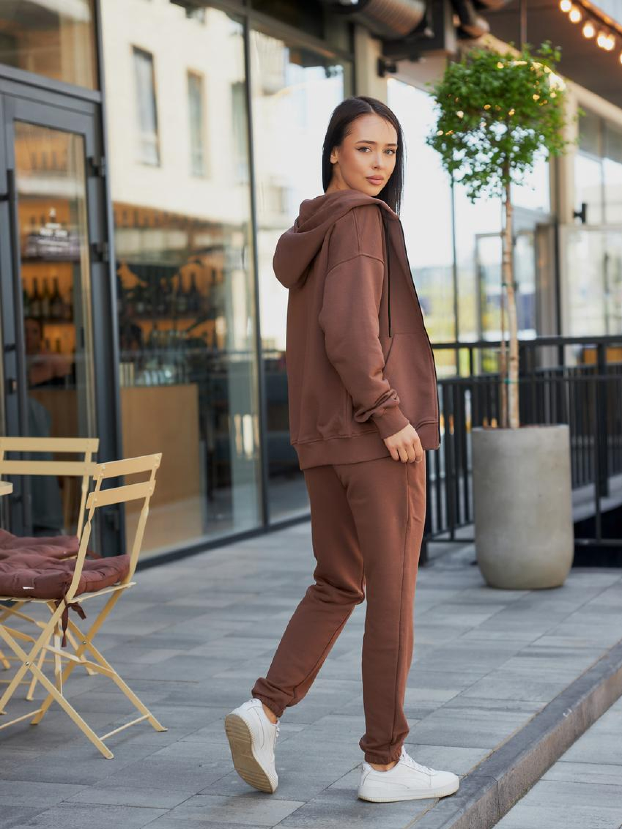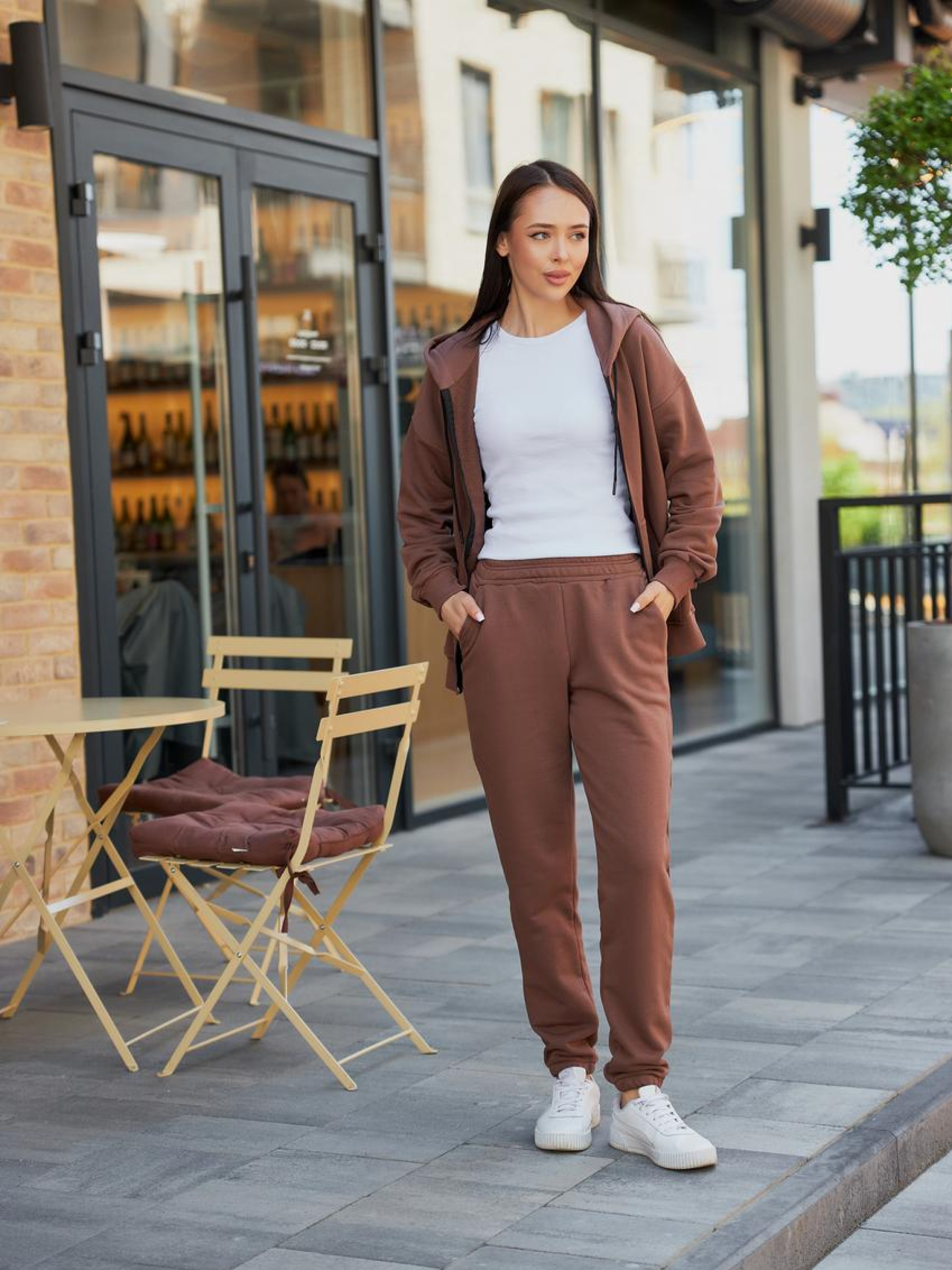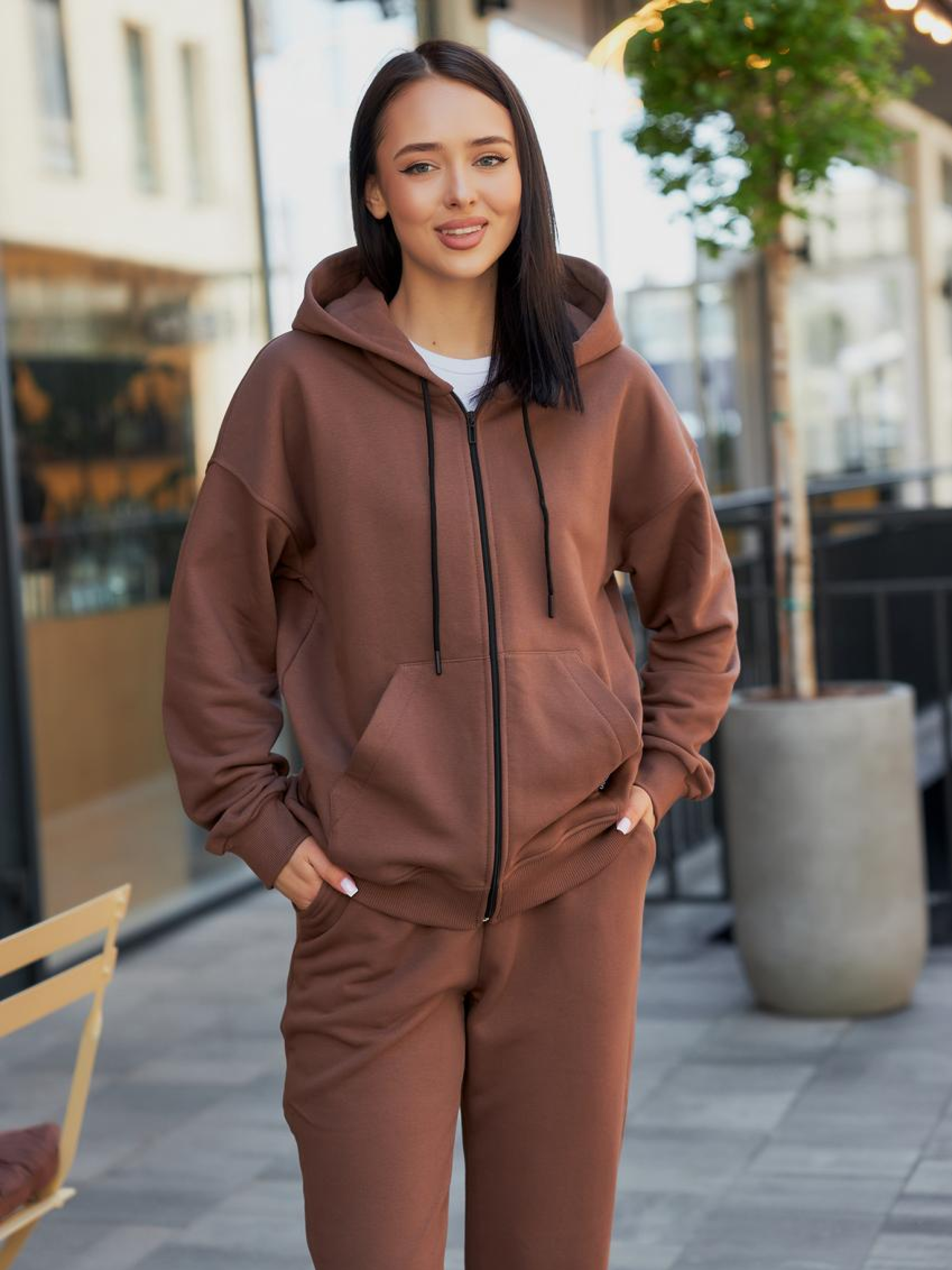 Женский спортивный костюм с худи и джоггерами Этот стильный женский спортивный костюм идеально сочетает комфорт и элегантность. Костюм состоит из худи с капюшоном на замке и удобных джоггеров, которые обеспечивают максимальную свободу движений. Худи: Мягкая ткань с приятным на ощупь покрытием. Капюшон на шнурке позволяет регулировать его размер для большего комфорта. Вместо классической застёжки — удобный замок, который придаёт современный вид и позволяет легко надевать и снимать худи. Джоггеры: Талия на резинке с дополнительным шнурком для регулировки, что гарантирует идеальную посадку. Лёгкие и дышащие, эти джоггеры отлично подойдут для тренировок или прогулок. Материал: Высококачественная ткань, которая быстро впитывает влагу, обеспечивая вам сухость во время активных занятий. Этот костюм станет отличным выбором для повседневных образов или для занятий спортом, сочетая стиль и комфорт в каждом движении.