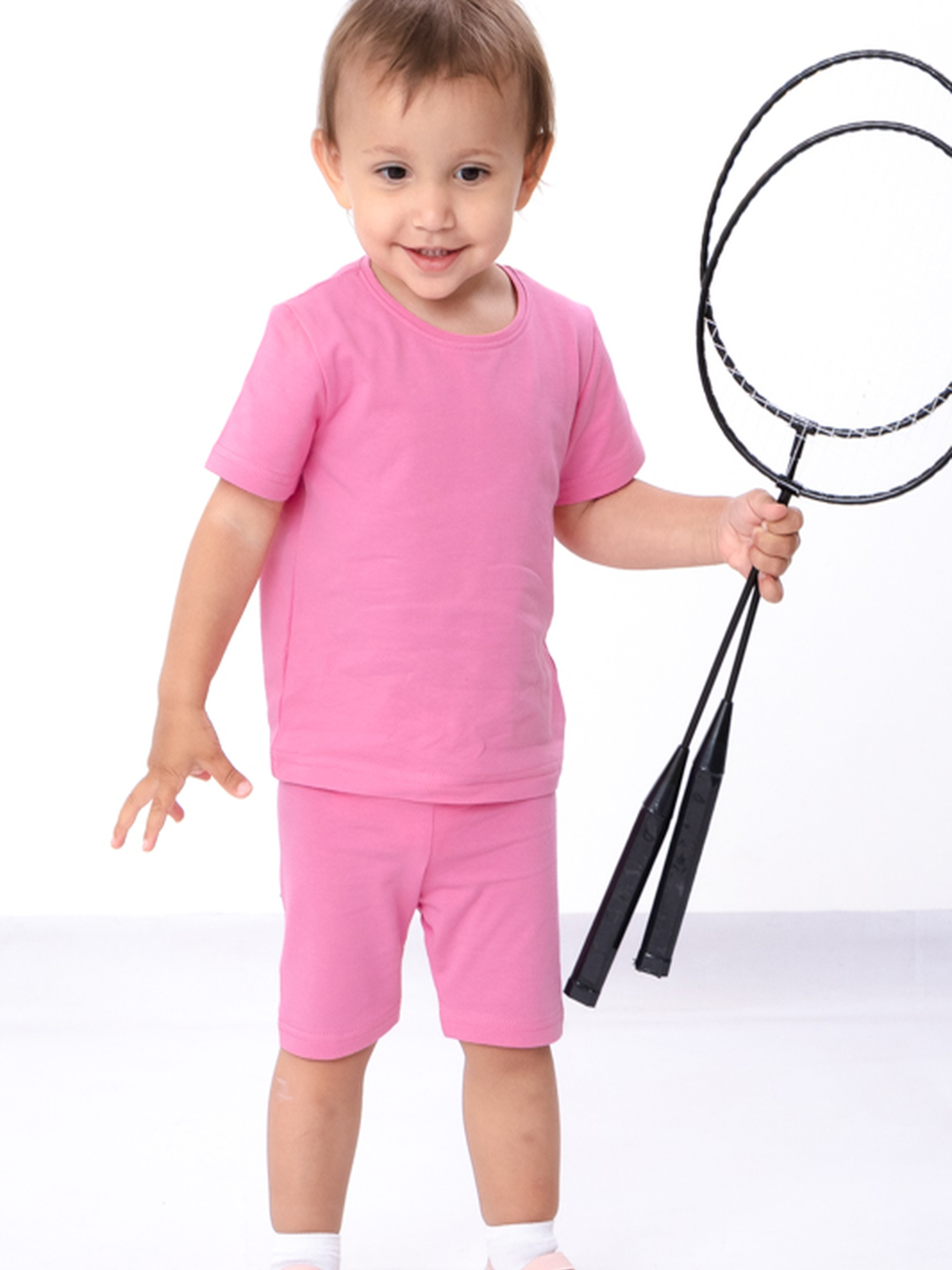 Полотно: фулікра однотонна Склад полотна: 95% бавовна, 5% лайкра Зріст: 74–104 см Ясельний комплект для дівчинки (футболка + треси), зріст 74–104 см — це зручний та м’який одяг для малечі. Виготовлений із натурального трикотажу, він дихає, не викликає подразнень і забезпечує комфорт під час активних рухів. Футболка з коротким рукавом та треси на м’якій резинці — ідеальне рішення для щоденного носіння вдома чи на прогулянці.