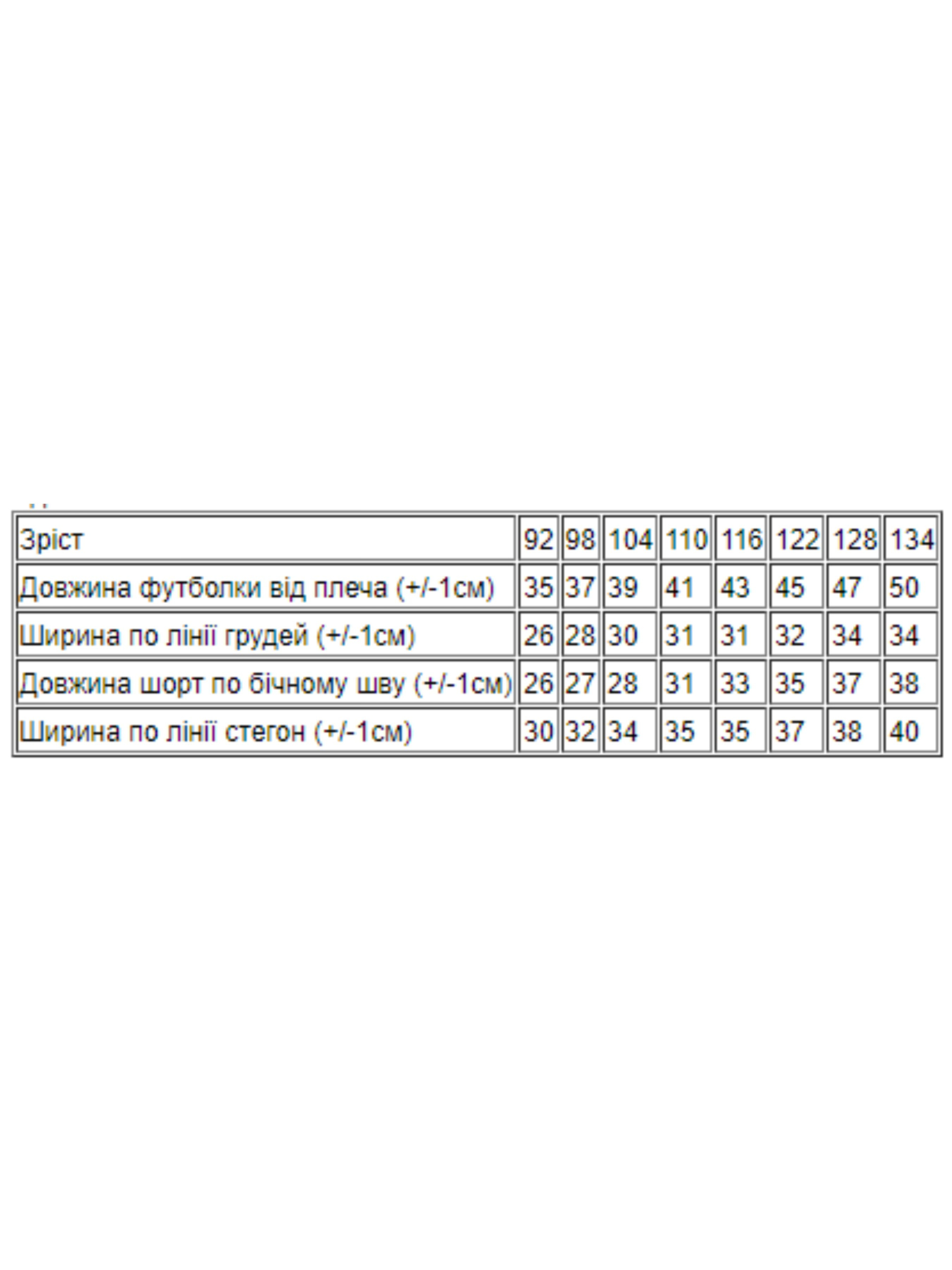 Полотно: кулір однотонний Склад полотна: 100% бавовна Зріст: 92-134 Тривалі літні прогулянки гра в футбол чи відпочинок на дачі вимагають максимально зручного аутфіта який не буде сковувати свободу рухів і дозволить шкірі дихати навіть у найспекотніший день. Всім цим вимогам відповідає комплект створений українською ТМ Носи Своє для активних хлопчиків. У комплект входить футболка і просторі шорти. Футболка вільного крою з круглою горловиною та короткими рукавами подарує дитині комфорт. Шорти надійно фіксуються на талії за допомогою широкої еластичної резинки. Важливо що вона не передавлює і не залишає слідів на ніжній шкірі. Для пошиття виробу використано м'яке і легке полотно - кулір (бавовна 100%). Натуральні нитки «відповідають» за проникнення повітря та гігроскопічність. Догляд: прання в теплій воді до 40 ° з нейтральними миючими засобами; прасування з вивороту злегка нагрітою праскою (не вище 100 °). При пранні не використовуйте засоби що містять відбілювач.
