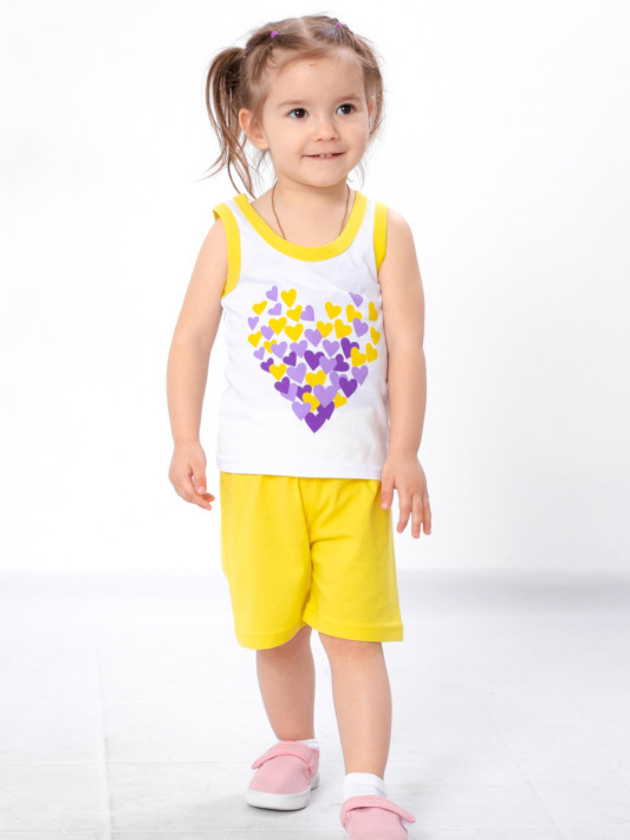 Полотно: кулір однотонний Склад полотна: 100% бавовна Зріст: 80-98 Серед великої різноманітності дитячих речей не складно підібрати одяг, який задовольнить вимоги і батьків, і дитини. Літній комплект що складається з майки і шортів має всі шанси стати одним з найпопулярніших в дитячому гардеробі. Одяг виготовлений з легкого бавовняного трикотажу стане ідеальним варіантом для веселих забав. У ньому зручно відпочивати на свіжому повітрі і проводити час вдома або в гостях. Бавовна добре пропускає повітря має хороші гігроскопічні властивості що не створить передумов для перегріву. Маєчка з яскравим принтом і контрастною беєчкой відмінно поєднується з шортами з набору. Шорти з широкою еластичною резинкою на поясі подарують дитині максимум комфорту. Завдяки тому що комплект має вільний крій він прекрасно підійде для захоплюючих ігор на пляжі або в пісочниці. Догляд: прання в теплій воді до 40 ° з нейтральними миючими засобами; прасування з вивороту злегка нагрітою праскою (не вище 100 °). При пранні не використовуйте засоби містять відбілювач. Майку прати окремо від шортів.