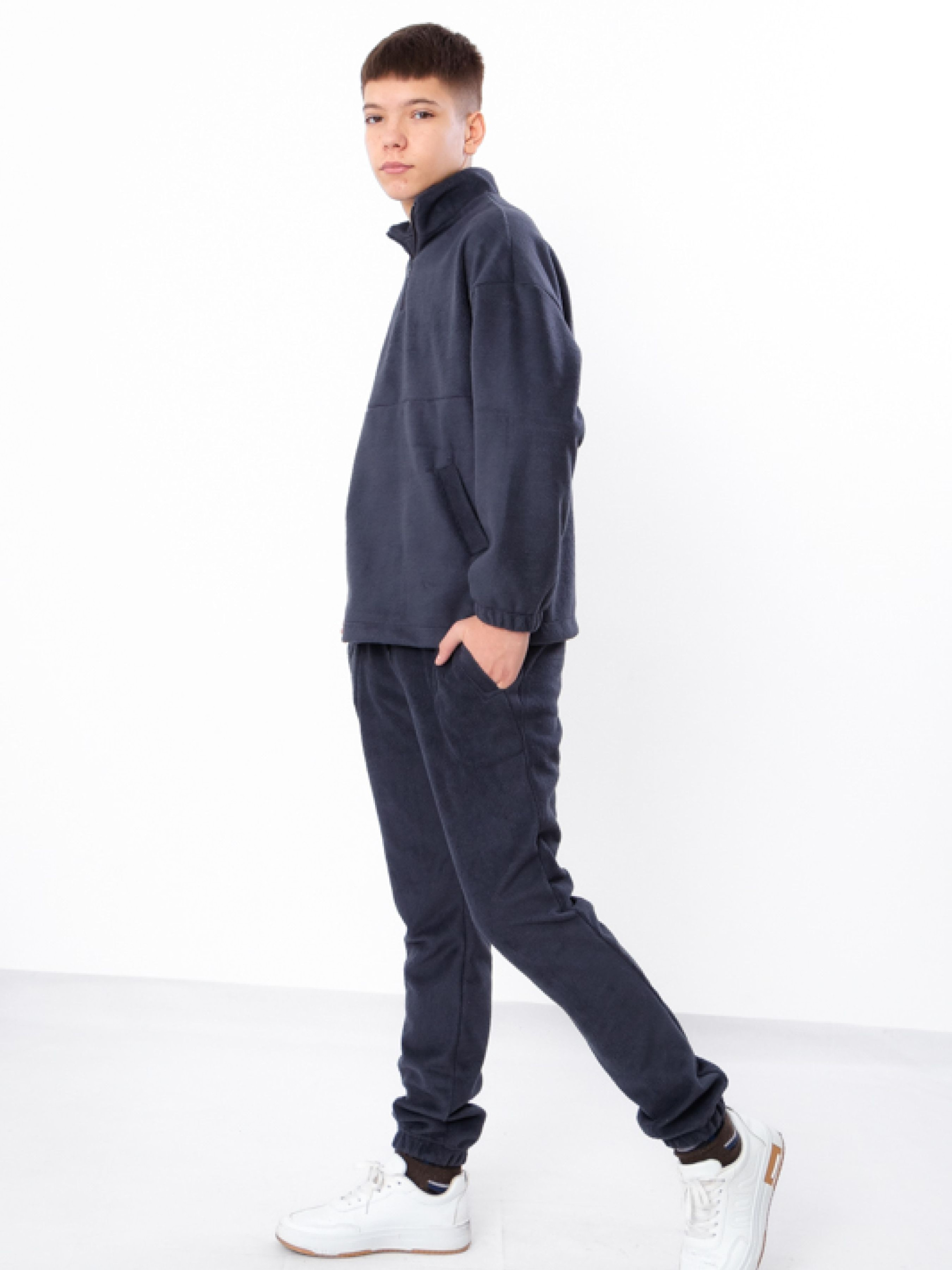 Полотно: інтерсофт (двостороння м'яка, тепла, приємна до тіла тканина, одна сторона якої гладка та матова, а інша - пухла, м'яка, імітуюча овече хутро). Склад полотна: 40% бавовна, 60% поліестер Зріст: 140-170 Костюм для хлопчика-підлітка – стильне та практичне рішення для повсякденного носіння чи святкових подій. Комплект складається з кофти та зручних штанів з еластичним поясом. Матеріал високої якості, м'який на дотик, не викликає подразнень і підходить для активних хлопців. Дизайн костюма універсальний, підходить для прогулянок, школи або сімейних заходів. Легкий у догляді, зберігає колір і форму навіть після багаторазового прання. Обирайте комфорт і стиль для вашої дитини!