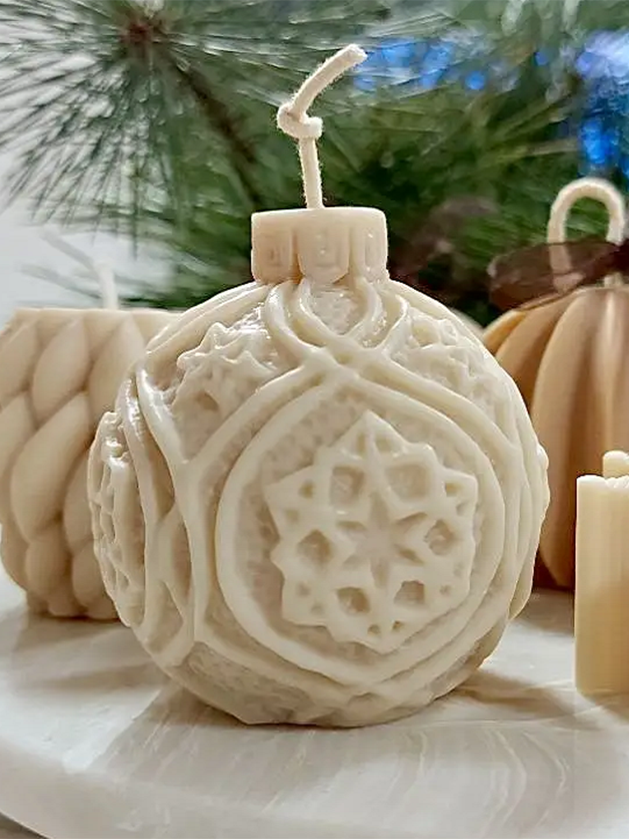 Candle DesignАромасвечка "Шарик на елку", аромат - Просекко из клюквы, из натурального оливкового воска