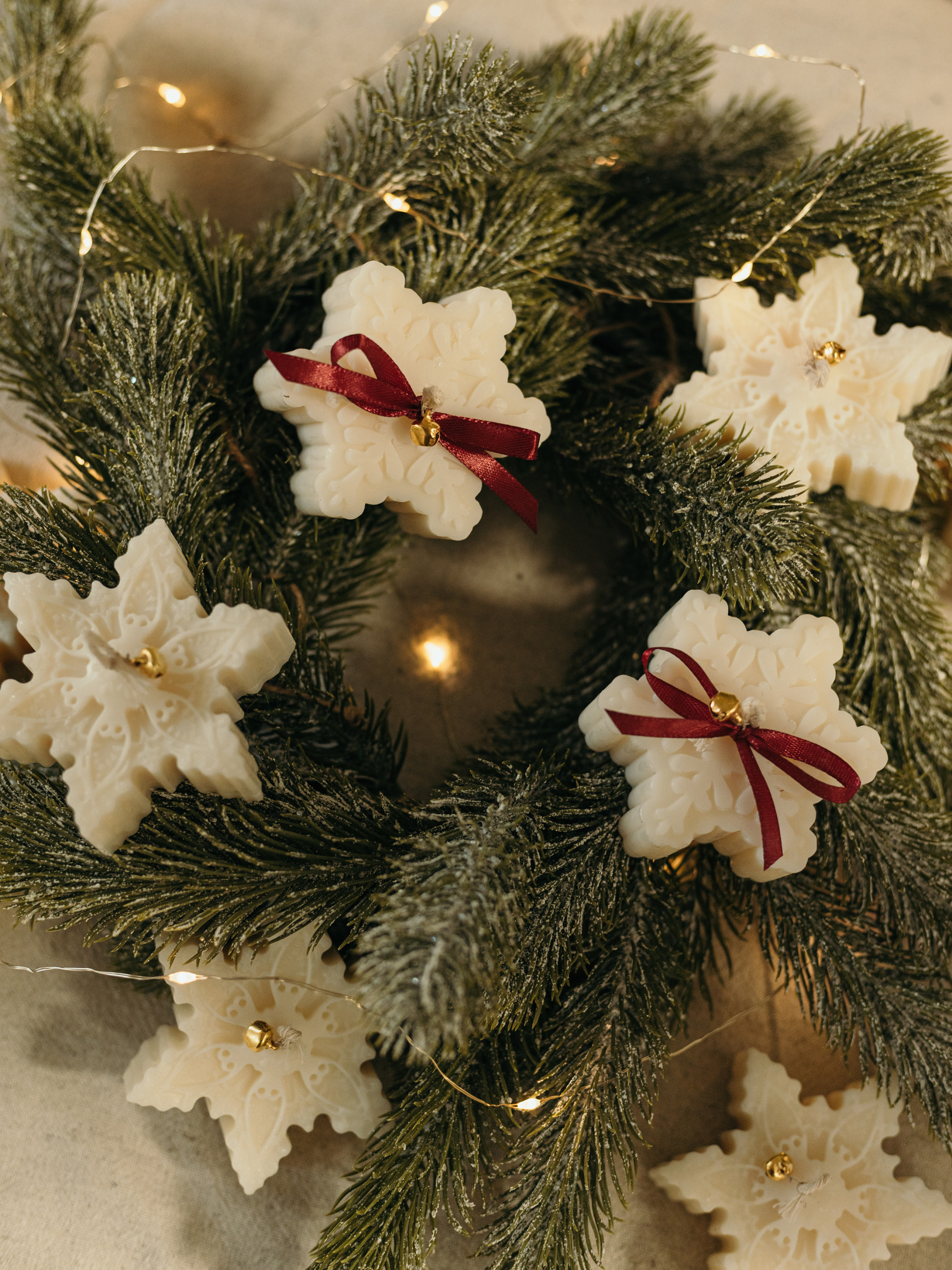 Рождественская аромасвеча "Снежинка", аромат - Просекко с клюквой