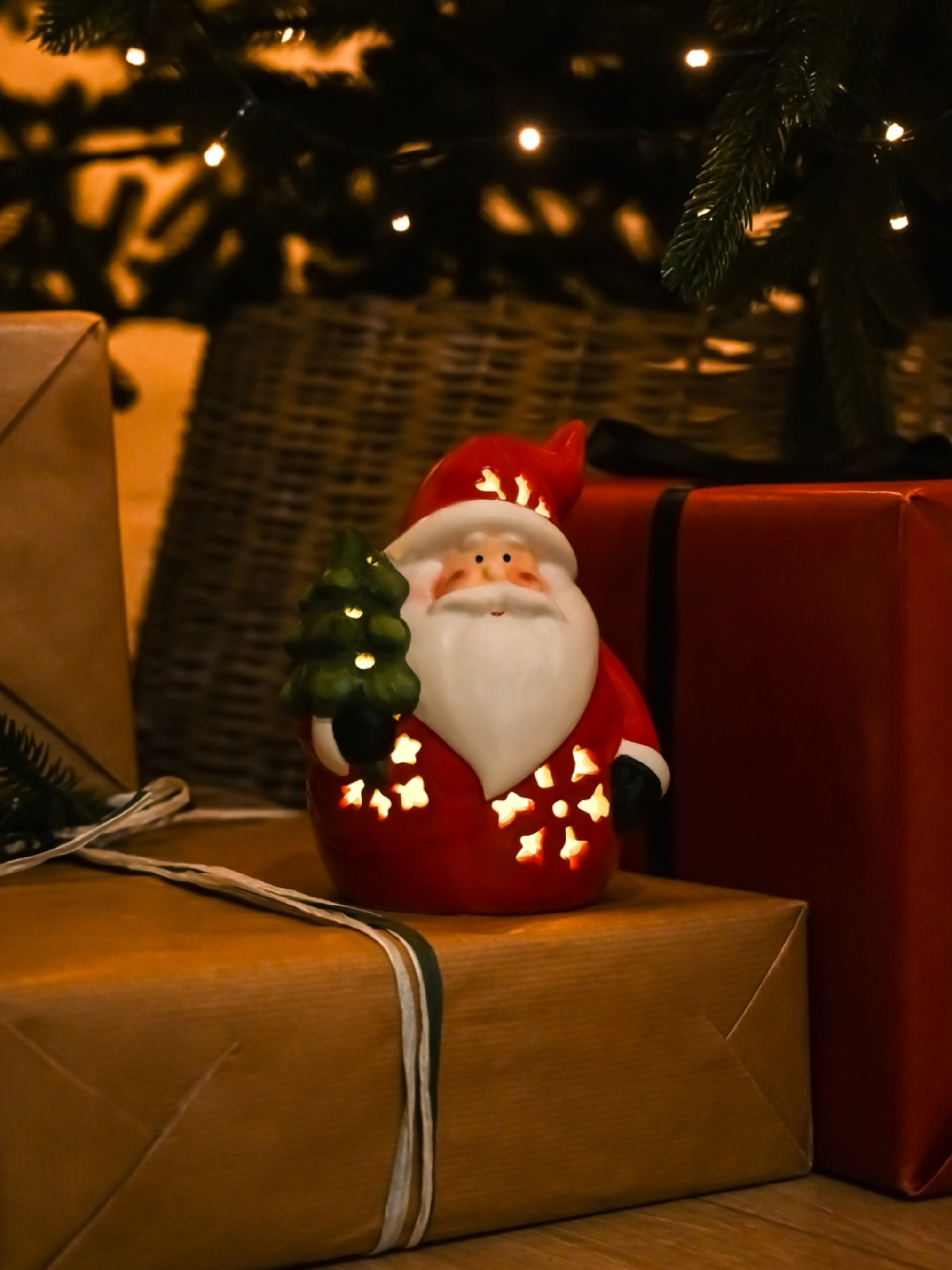 MBM HOMEСтатуэтка с подсветкой новогодняя "Санта с ёлкой"