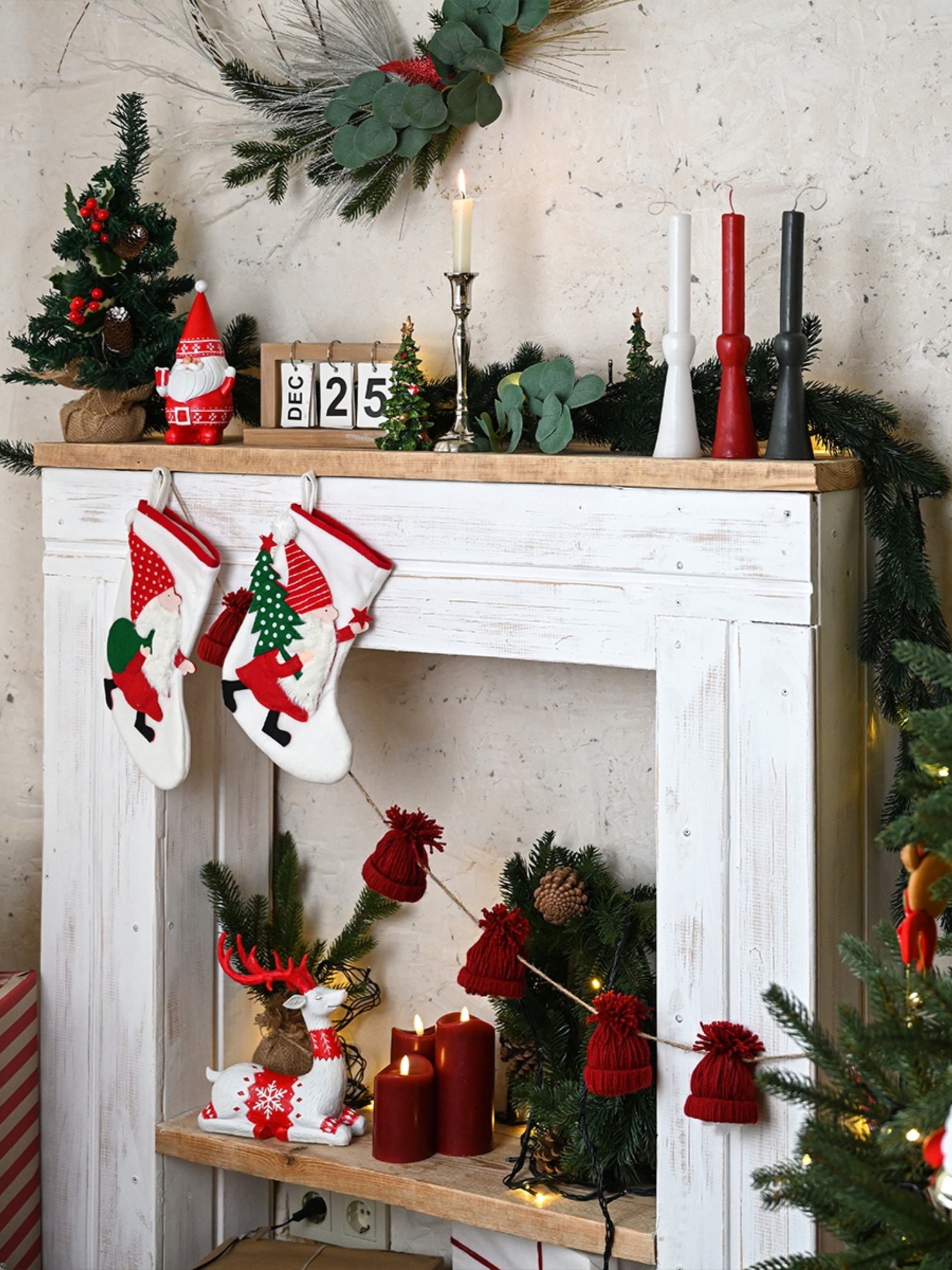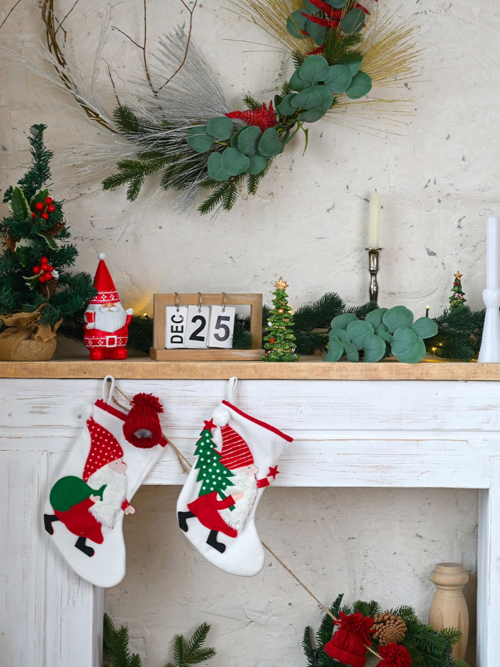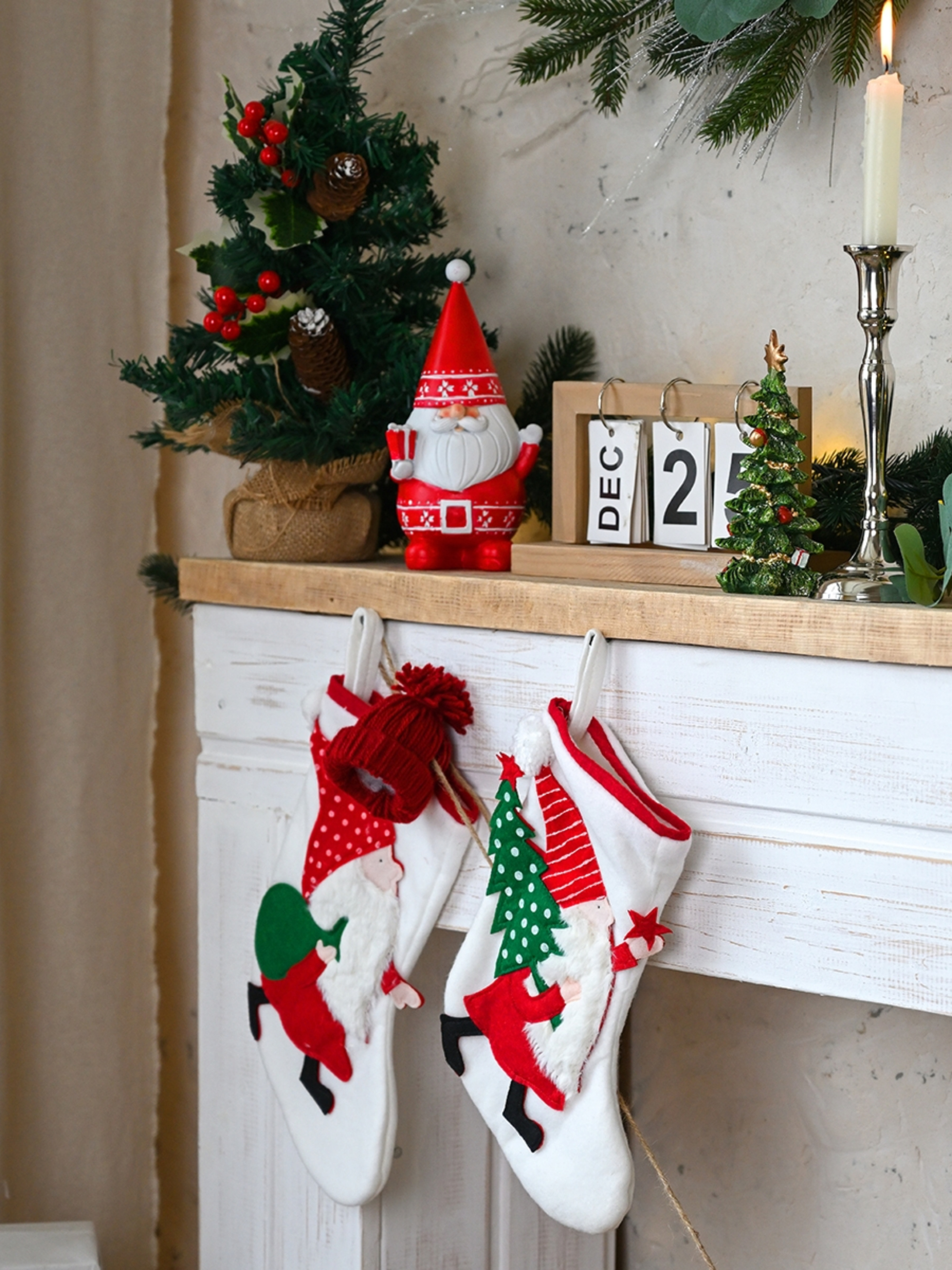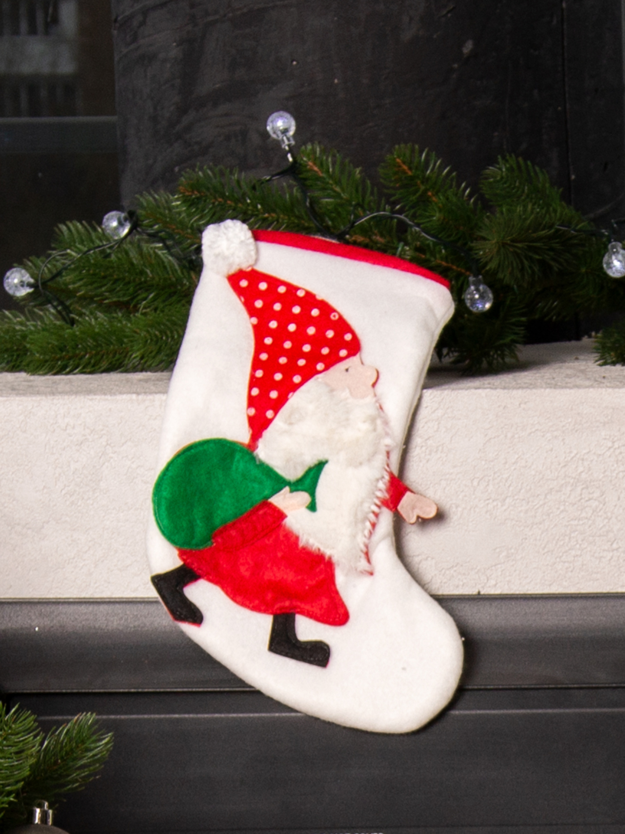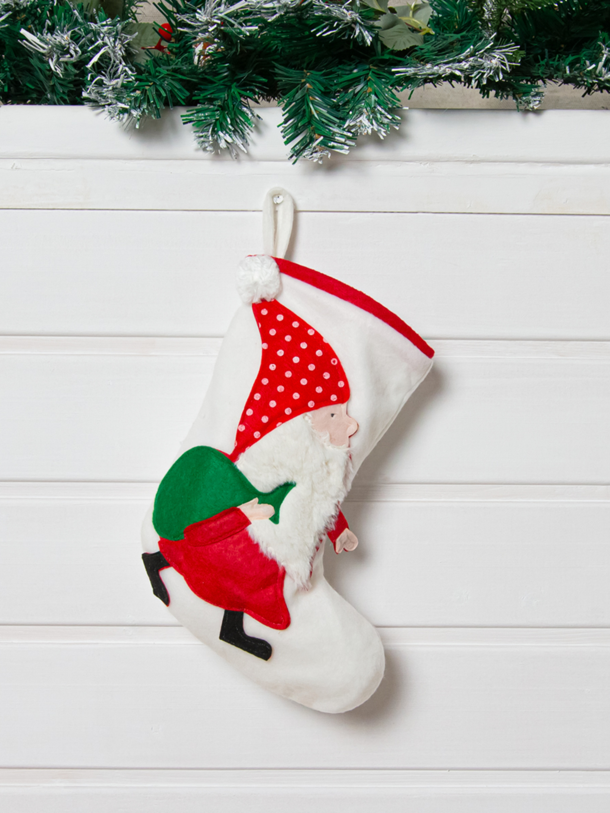 Сапожок для подарков новогодний "Гном с мешком" MBM HOME модель DH-NY-19 WHITE