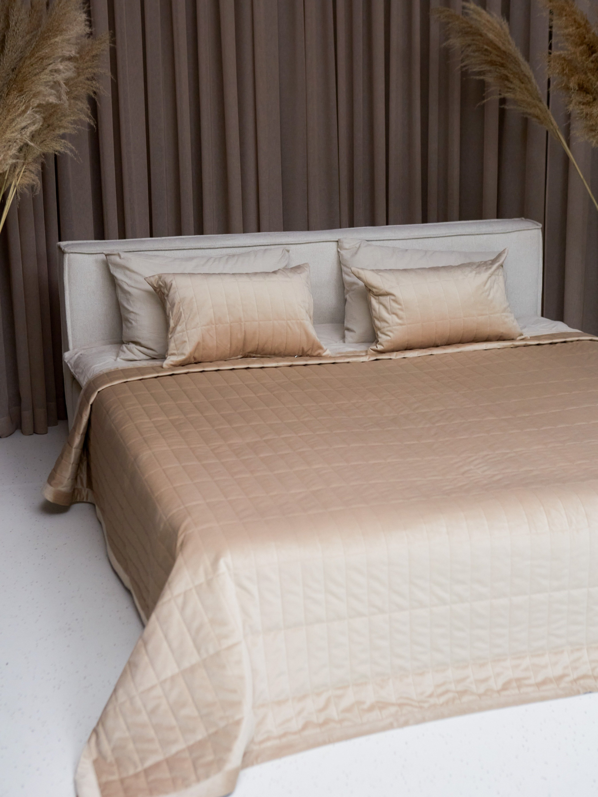 Покрывало двухстороннее стеганое на кровать бежевый МАЕСТРО модель 105071