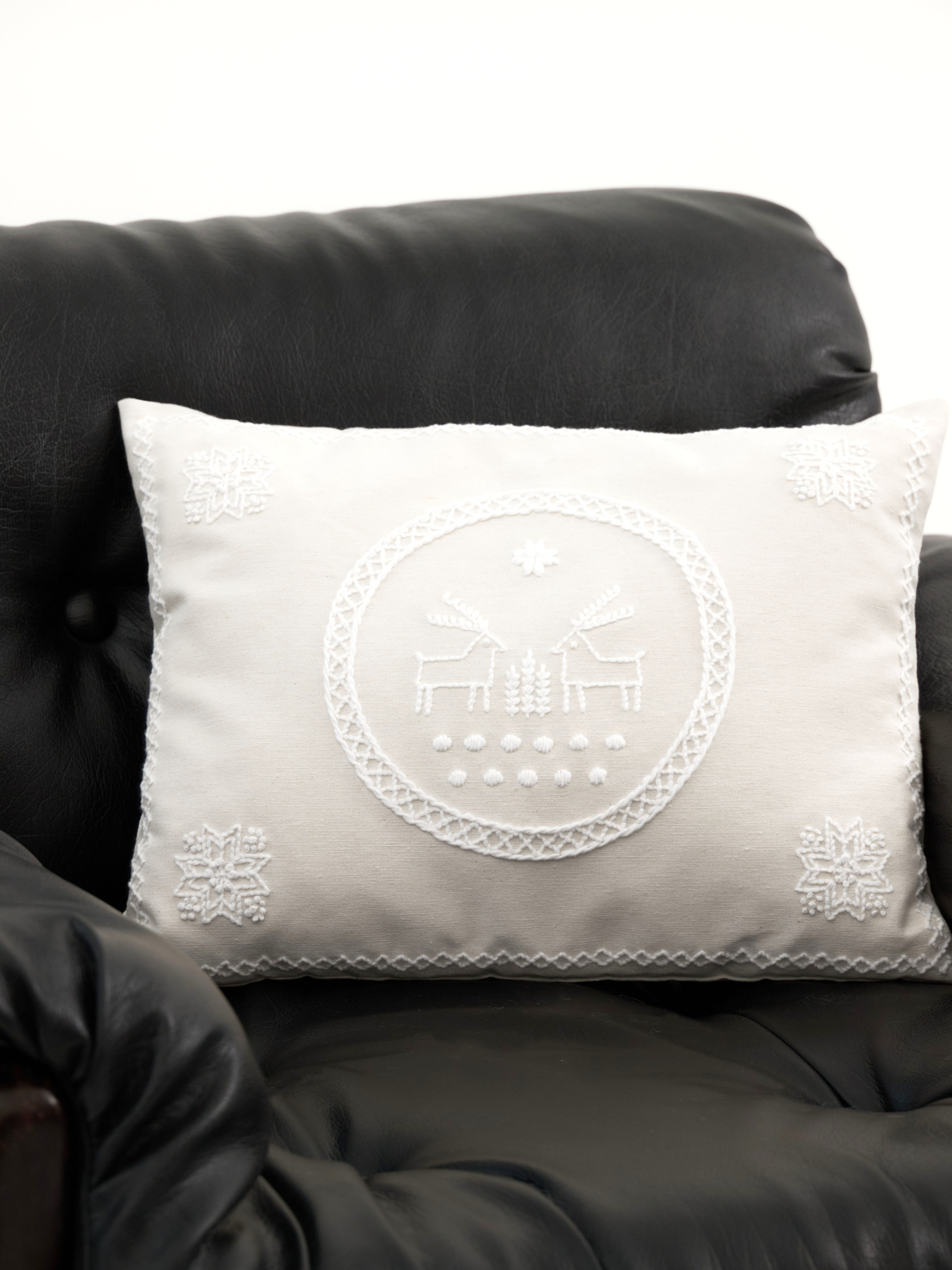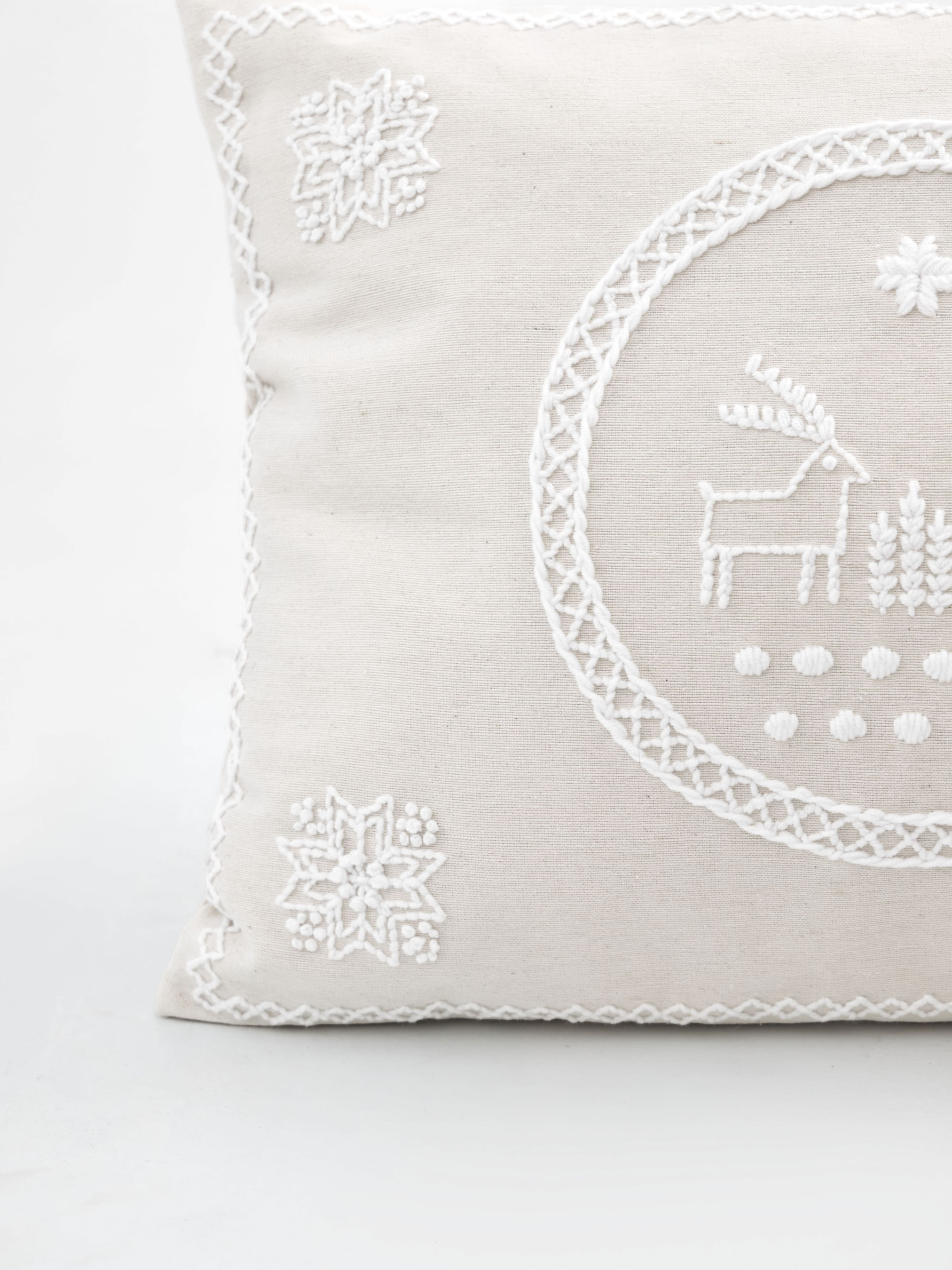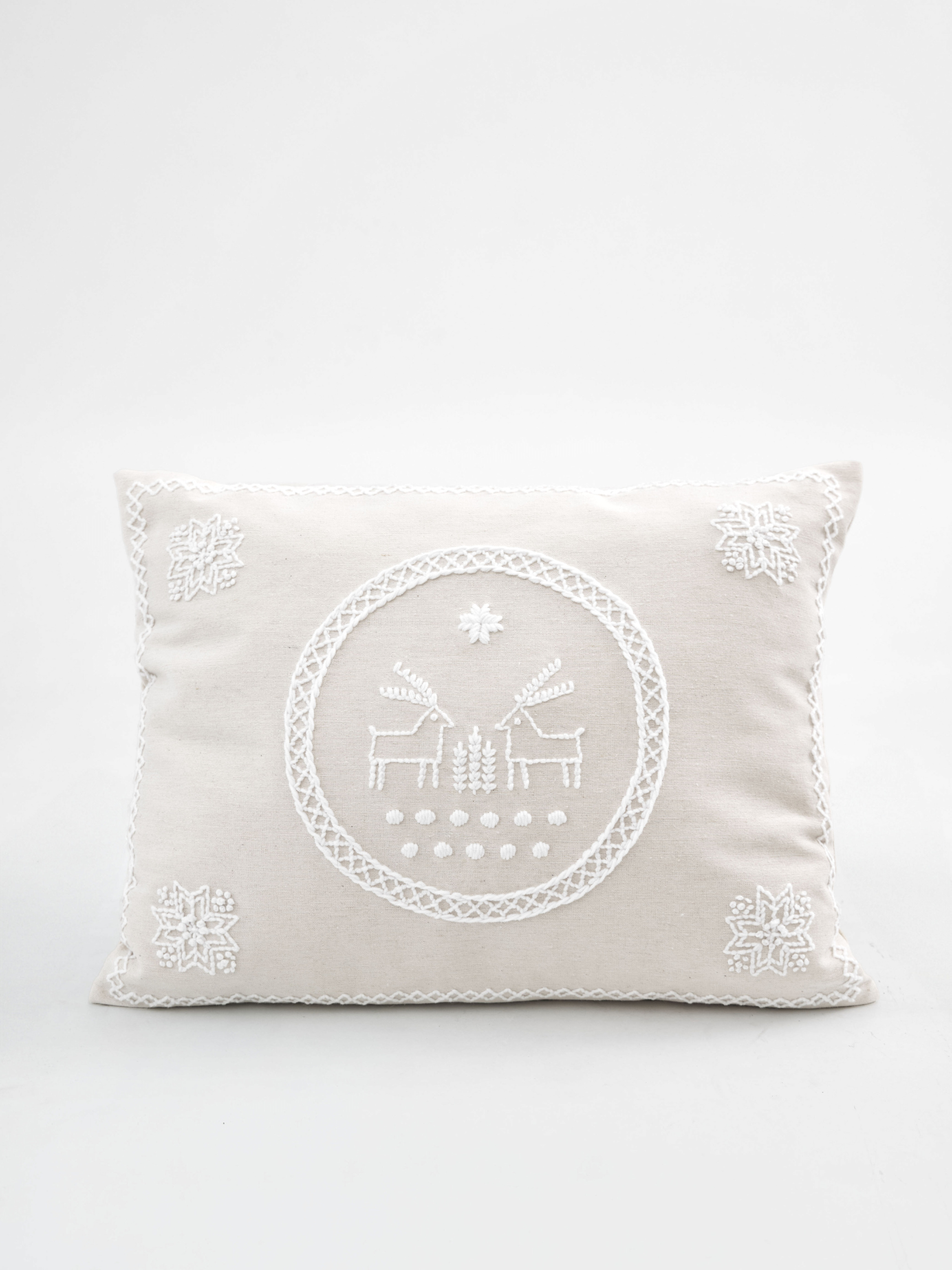 GNIZDOДекоративна подушка зі зйомною наволочкою з ручною вишивкою "Олені"