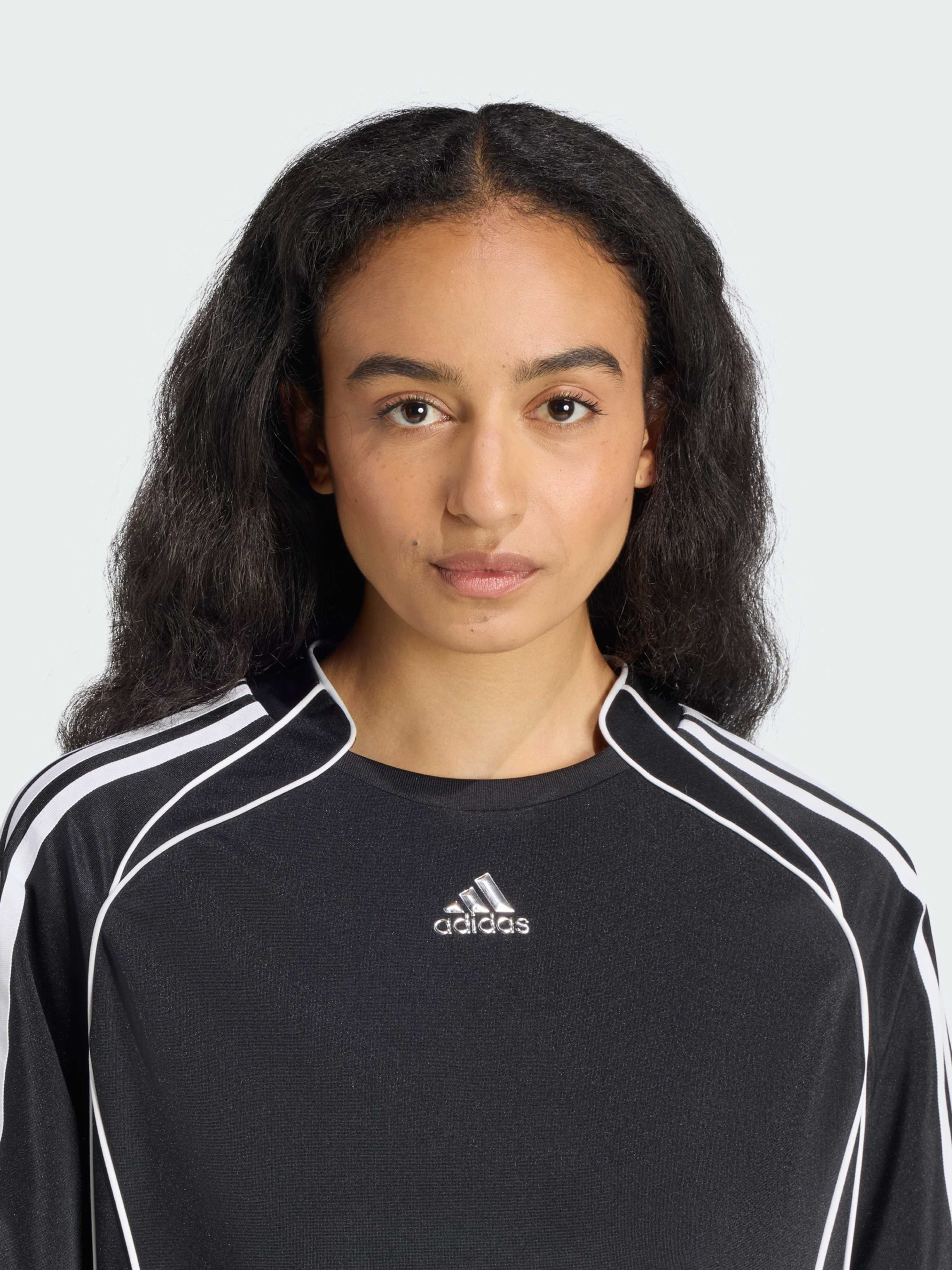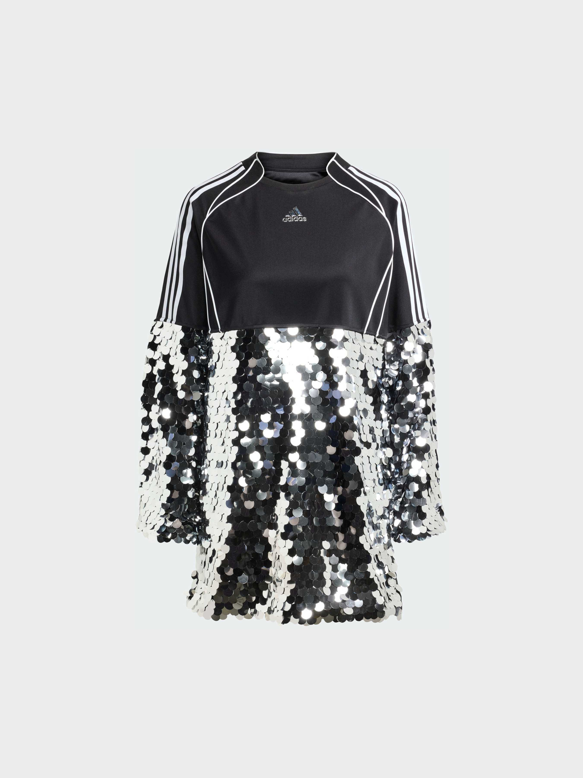 Характеристики 100% переработанный полиэстер Воротник в стиле футбольного джерси Затяжка на подоле Свободный крой Описание Это мини-платье от adidas сочетает в себе смелый дух футбольной эстетики и блестящий стиль моды. Свободный мини-силуэт в сочетании со спортивным воротником напоминает футболки, а знаменитые линии Teamgeist — это дань уважения архивным дизайнам, которые изменили мир футбола. Нижняя часть платья украшена крупными пайетками, которые добавляют яркий стиль каждому твоему движению. Не упусти возможность выделиться! Идет размер в размер. Мы рекомендуем заказать модель твоего обычного размера.