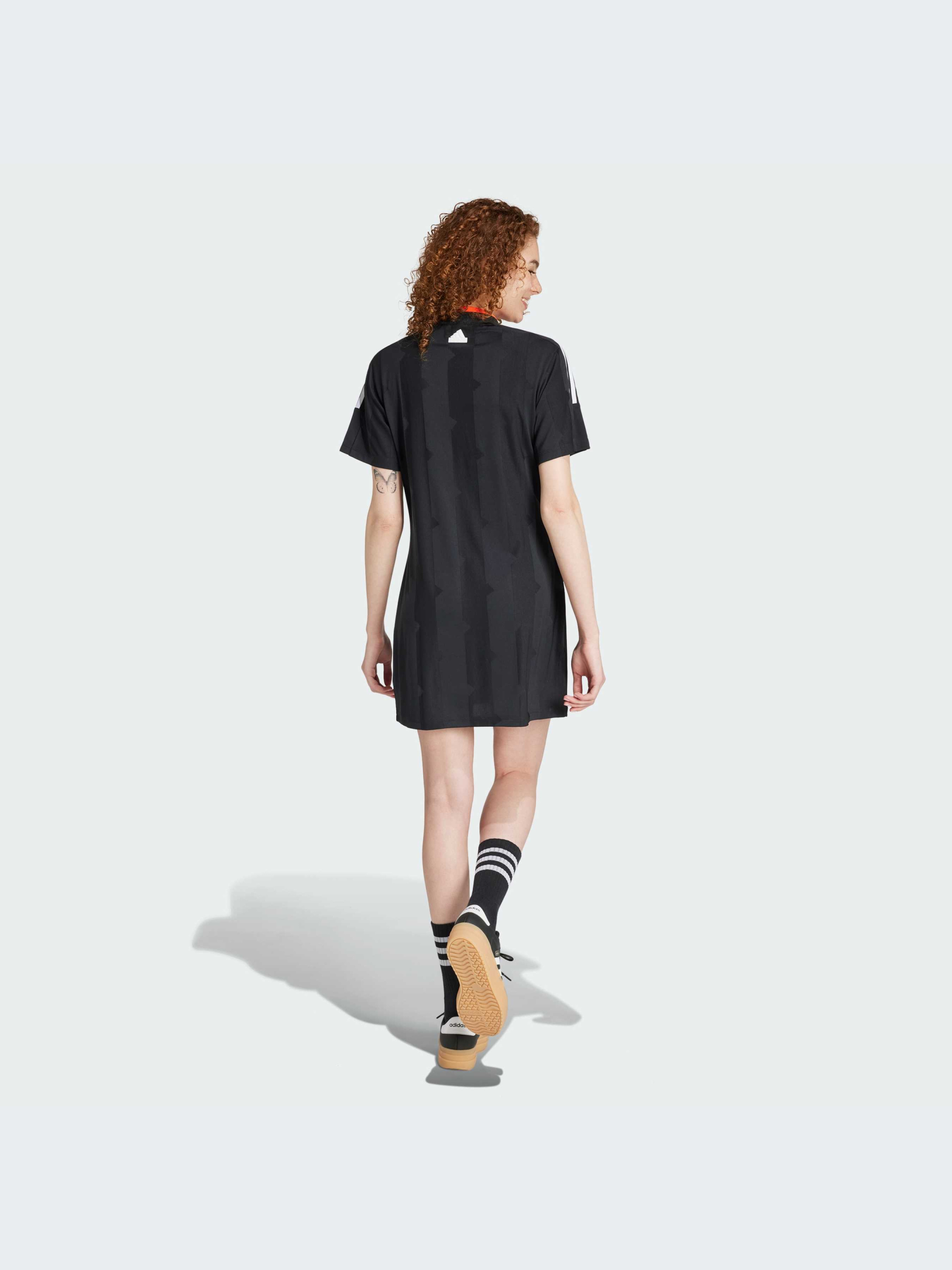 Отправляйся в путь в стиле Tiro. Это платье-футболка adidas придает непринужденному силуэту футбольный вид. Гуляешь ли ты по городу или собираешься на матч, мягкая жаккардовая ткань позволит тебе чувствовать себя комфортно. В сочетании с кроссовками это непринужденный вариант футбольного стиля. А надев каблуки - подойдет для вечернего выхода в свет. Как бы ты его ни носила, наслаждайся моментом со спортивной уверенностью. Этот продукт изготовлен из 100% переработанных материалов. Повторно используя уже созданные материалы, мы помогаем сократить количество отходов и нашу зависимость от ограниченных ресурсов, а также уменьшить негативное воздействие продуктов, которые мы производим. Идет размер в размер. Мы рекомендуем заказать модель твоего обычного размера.